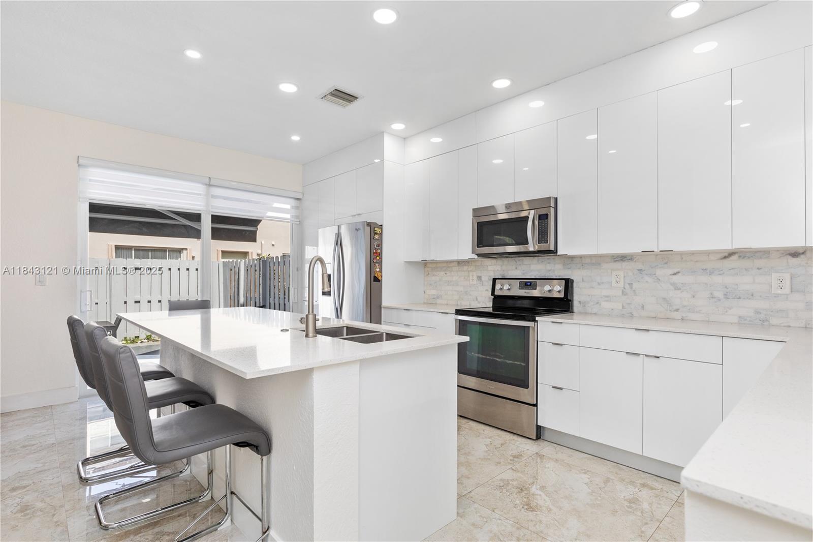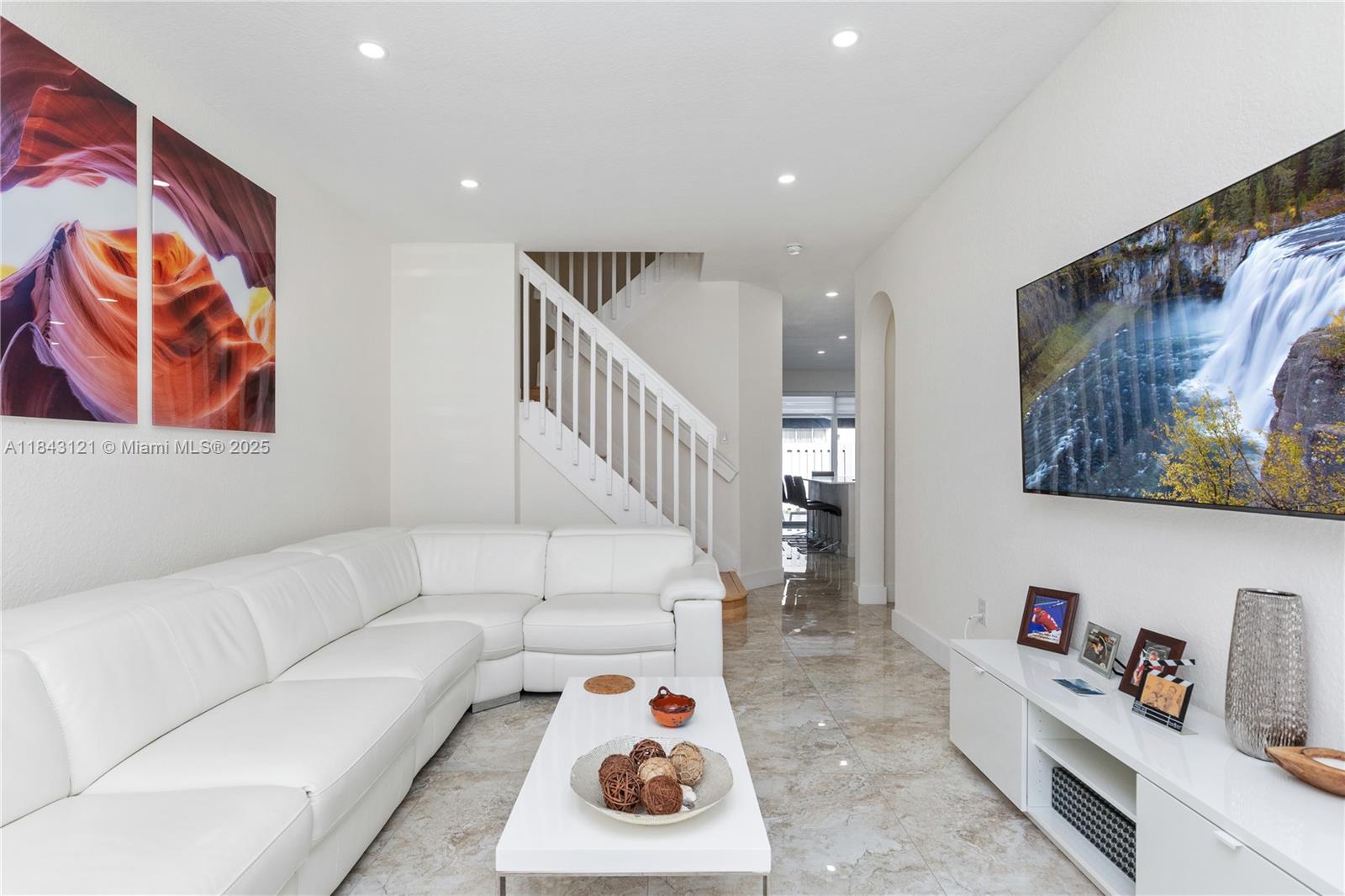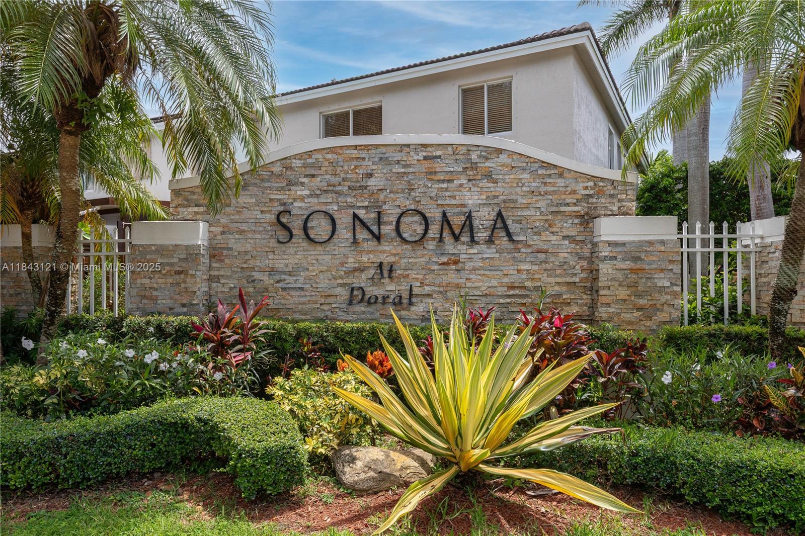 Experience refined living in the gated community of Sonoma at Doral! This beautifully remodeled townhome features tile floors on the first level, a modern Italian-style kitchen with an island, and laminate floors upstairs. Enjoy a custom office space, a generous main suite with a spa bath, shower, and double sinks, plus 3 full baths for ultimate convenience. The family room opens to a serene backyard, perfect for relaxation or entertaining. Ideally located near major expressways, top schools, fine dining, and more, with 24/7 security for peace of mind.