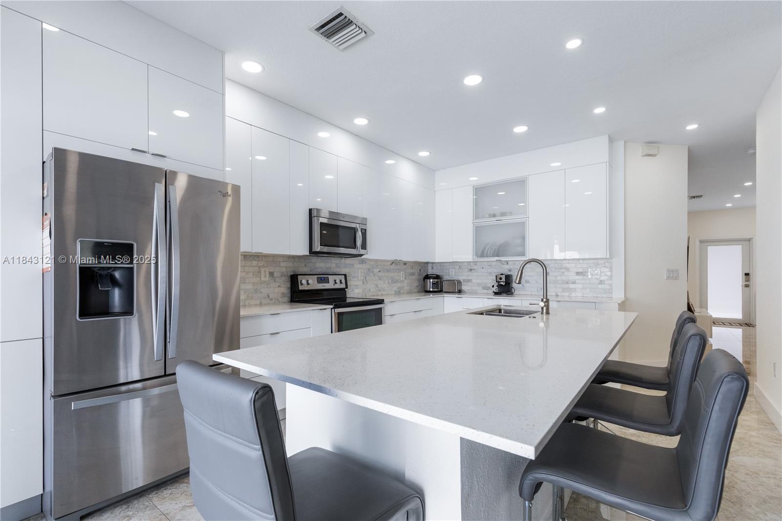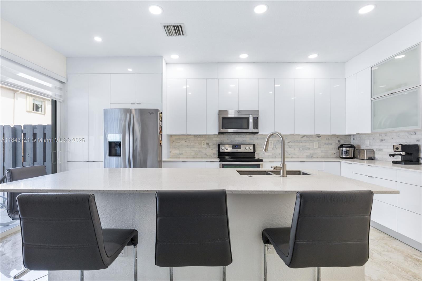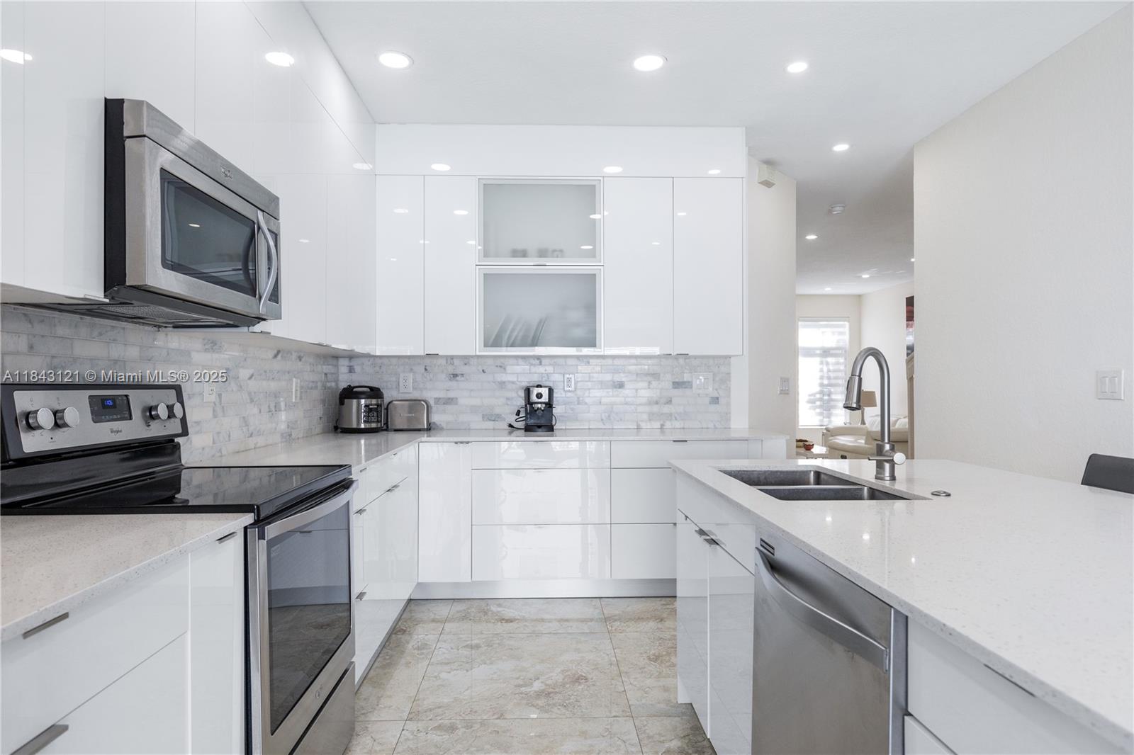 Experience refined living in the gated community of Sonoma at Doral! This beautifully remodeled townhome features tile floors on the first level, a modern Italian-style kitchen with an island, and laminate floors upstairs. Enjoy a custom office space, a generous main suite with a spa bath, shower, and double sinks, plus 3 full baths for ultimate convenience. The family room opens to a serene backyard, perfect for relaxation or entertaining. Ideally located near major expressways, top schools, fine dining, and more, with 24/7 security for peace of mind.
