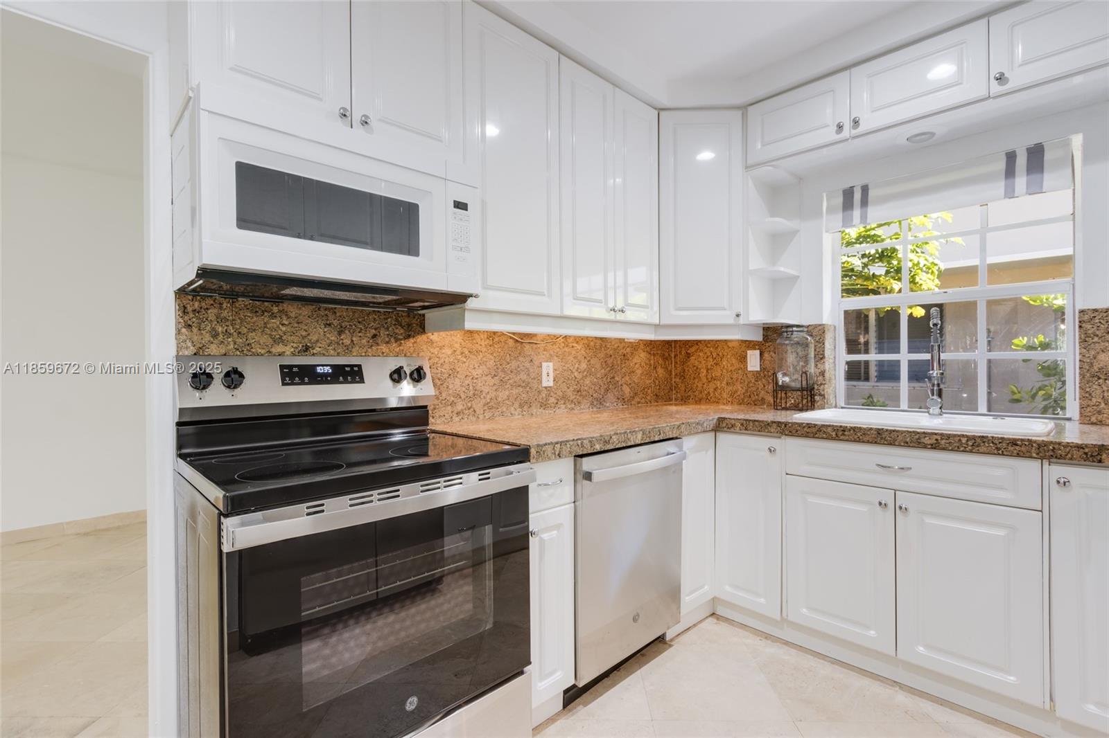 Charming Sunny Spacious Ground Floor 2/2 Garden Apartment with Private Terrace. Renovated with new appliances (refrigerator, dishwasher, oven/stovetop), pantry and eat-in countertop, separate full dining room, oversized living area with large bay windows overlooking the rose & herb garden, ceiling fans, white California Shutters, 4 closets in the primary bedroom suite. 1 Assigned parking space, unlimited street parking. Dogs allowed with security deposit. Across from Beach, walking distance to Bal Harbour Marina, Bal Harbour shops, Surf Club, Ritz Carlton, places of worship, Publix, CVS, Post Office, Banks, Ruth Broad Elementary School, Mater Academy, steps from residence only pedestrian gate, 24 hours Security & Gated Community. Only 6 apartments in the building. Also available seasonally.