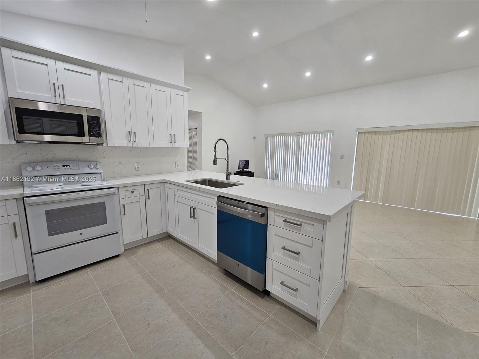 Welcome home! Beautifully remodeled single-family home in Deerwood Estates! This corner unit home features 4 bedrooms, 2 bathroom, split bedroom plan, a garage, a private fenced yard, and a large screened in patio. The kitchen is brand new and completely remodeled. Guest parking is conveniently located next to the home. It's close to restaurants, shops, the highway, public transportation, and attractions like Zoo Miami. Rent includes landscaping. Don't miss out! Available October 1, 2025.