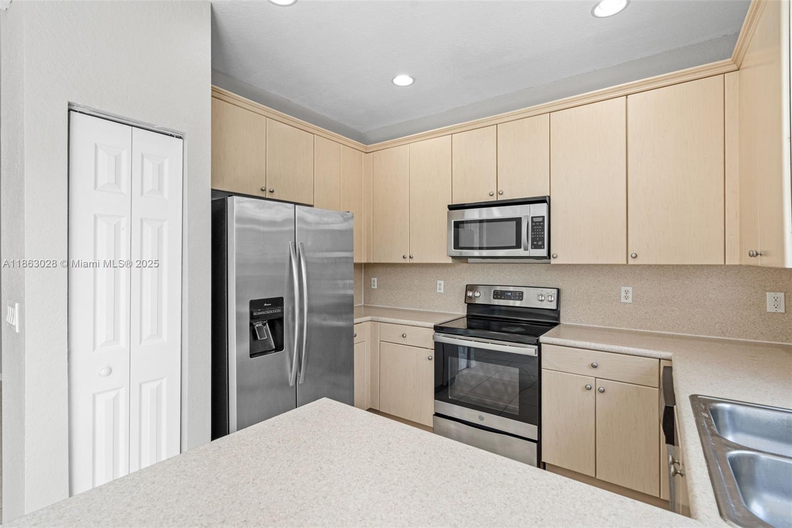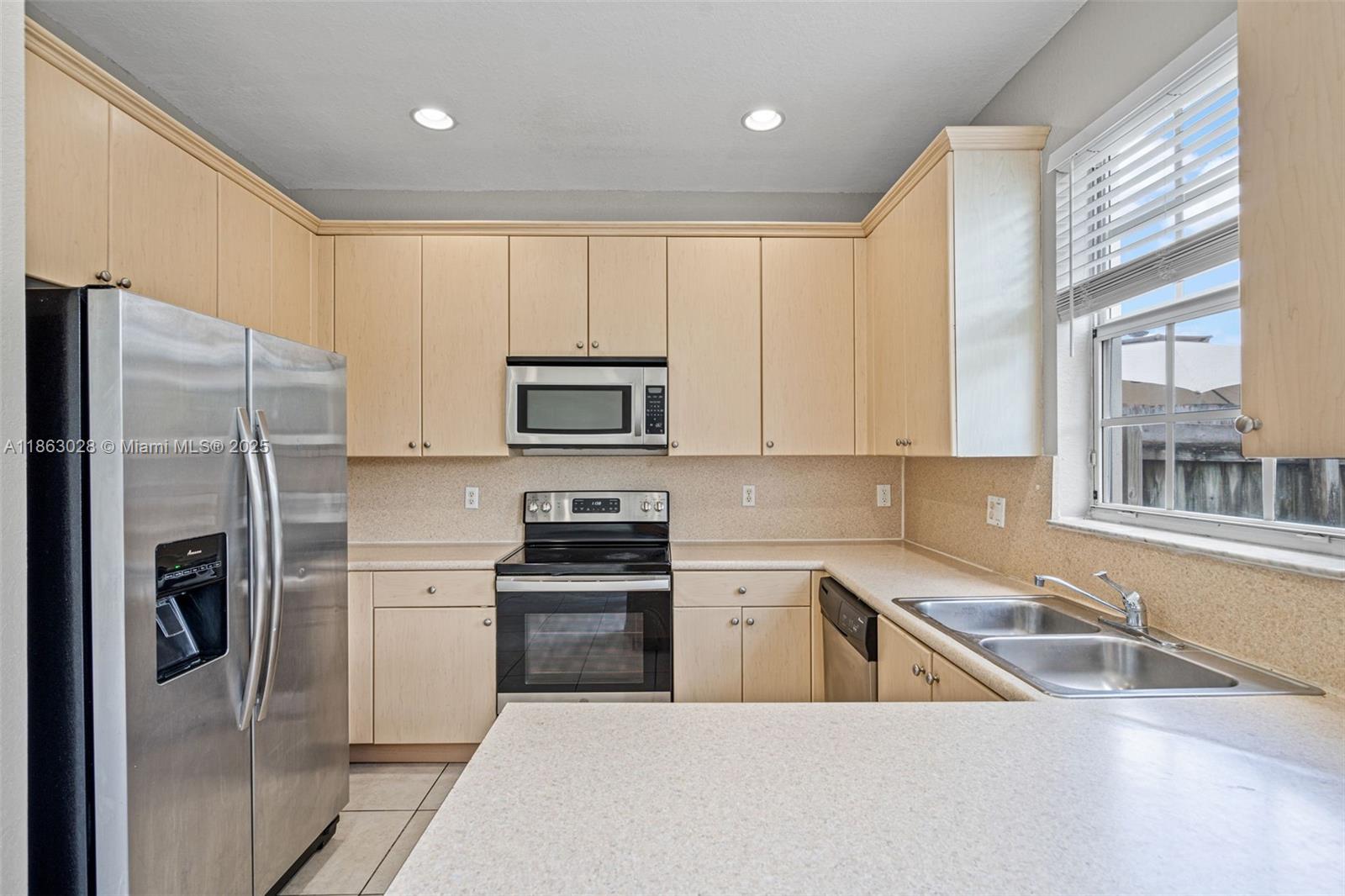 Step inside this inviting 3-bedroom, 2.5-bath townhome that offers both comfort and style. The first floor features easy-to-maintain tile flooring, while the upstairs boasts warm laminate wood throughout. The kitchen is designed for both function and charm, showcasing stainless steel appliances, newly painted cabinetry, and generous counter space perfect for everyday meals or entertaining. All three bedrooms are located upstairs, filled with natural light, including a spacious primary suite with its own private bath. The backyard is fully fenced, providing a great spot to unwind or gather with family and friends. A one-car garage and additional storage add to the convenience. Ideally situated near schools, shopping, and major roadways, this home is move-in ready.