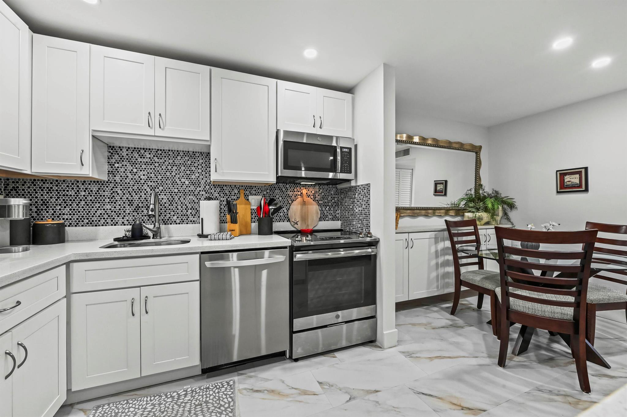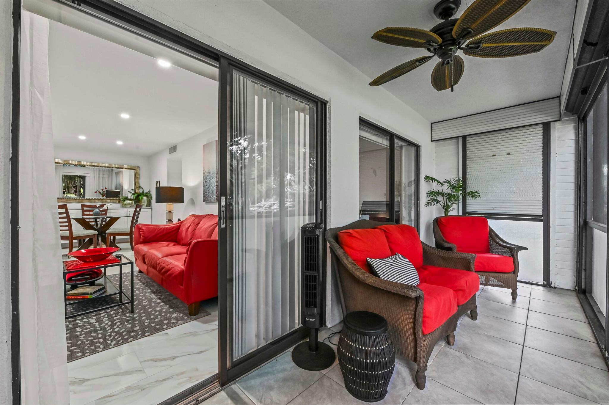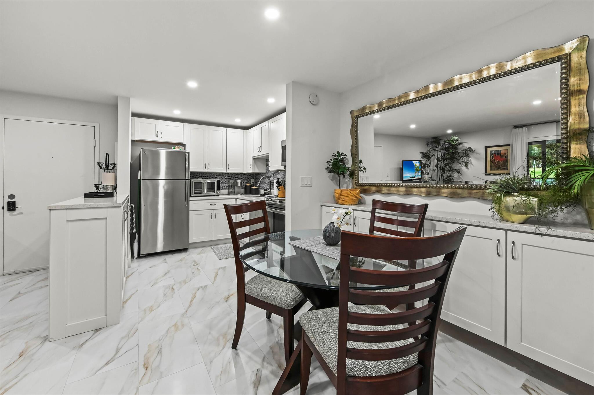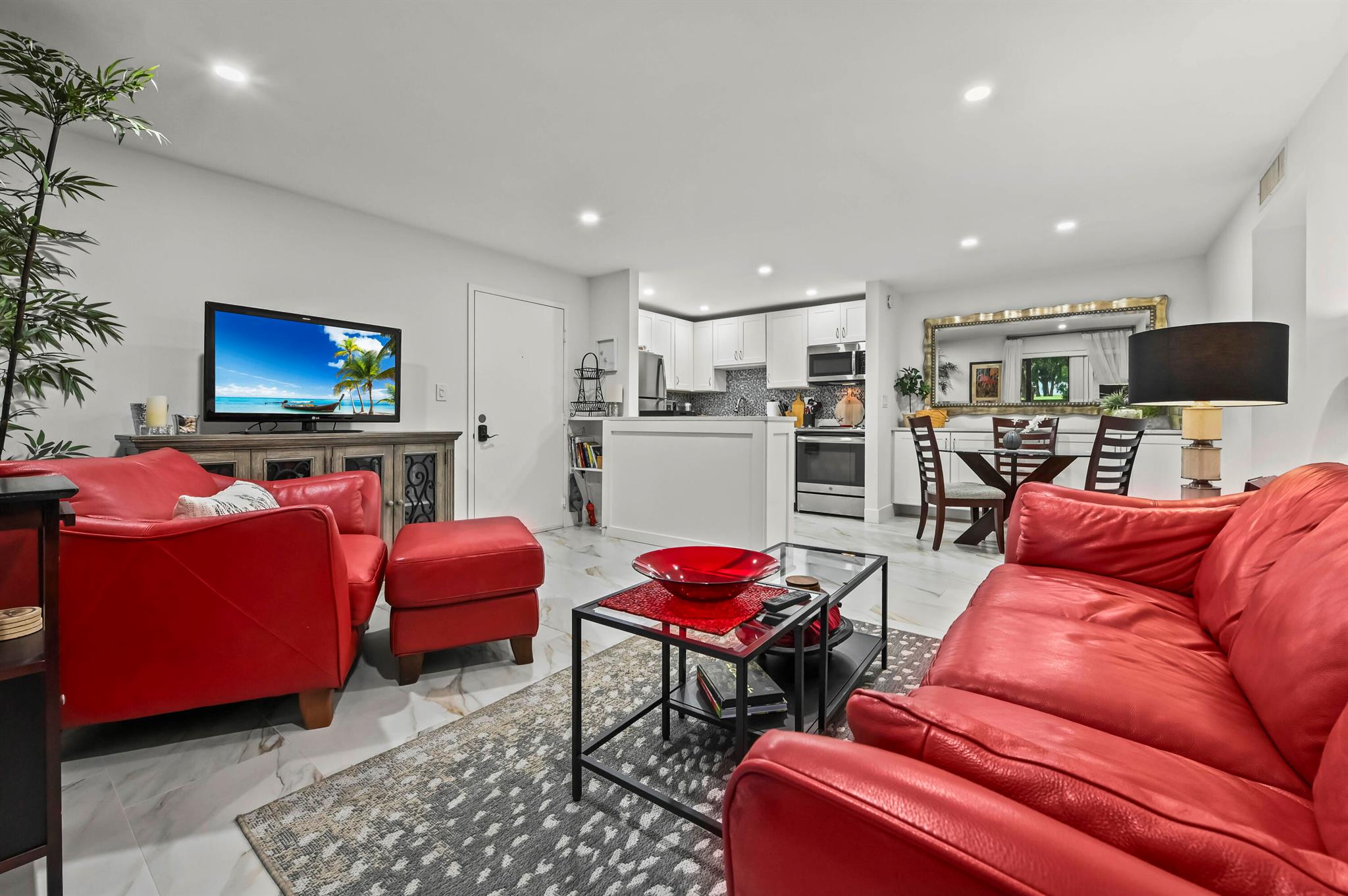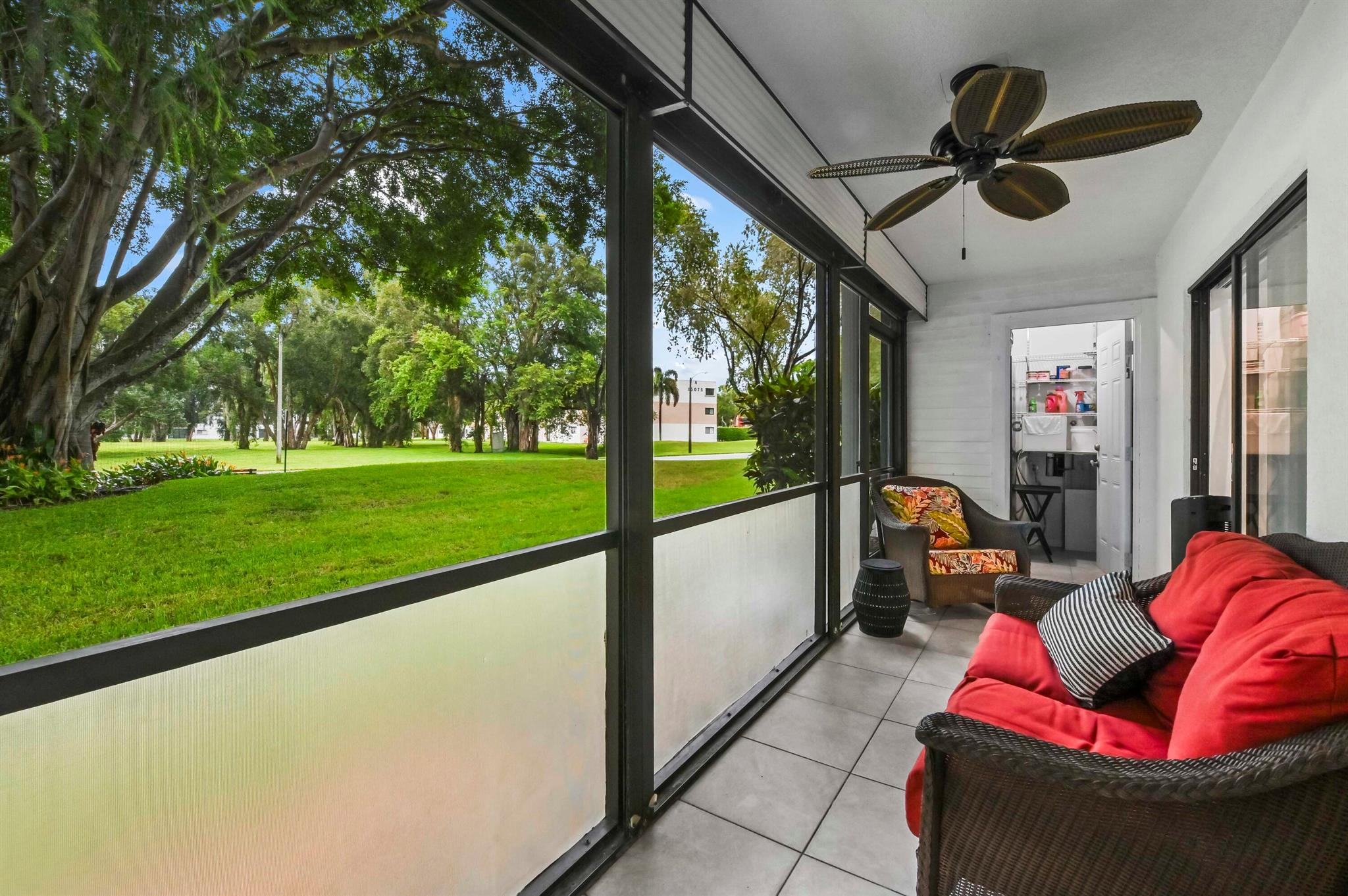 55+ gated community located in the heart of Delray Beach! This 2 bedroom/2 bath first floor condo is the best winter getaway! Fully renovated, fully furnished, every detail of comfort has been considered for your comfort. The kitchen has custom cabinetry w/stainless appliances. Washer/dryer located on lanai, w/ extra storage. Enjoy the garden view from the screened lanai.