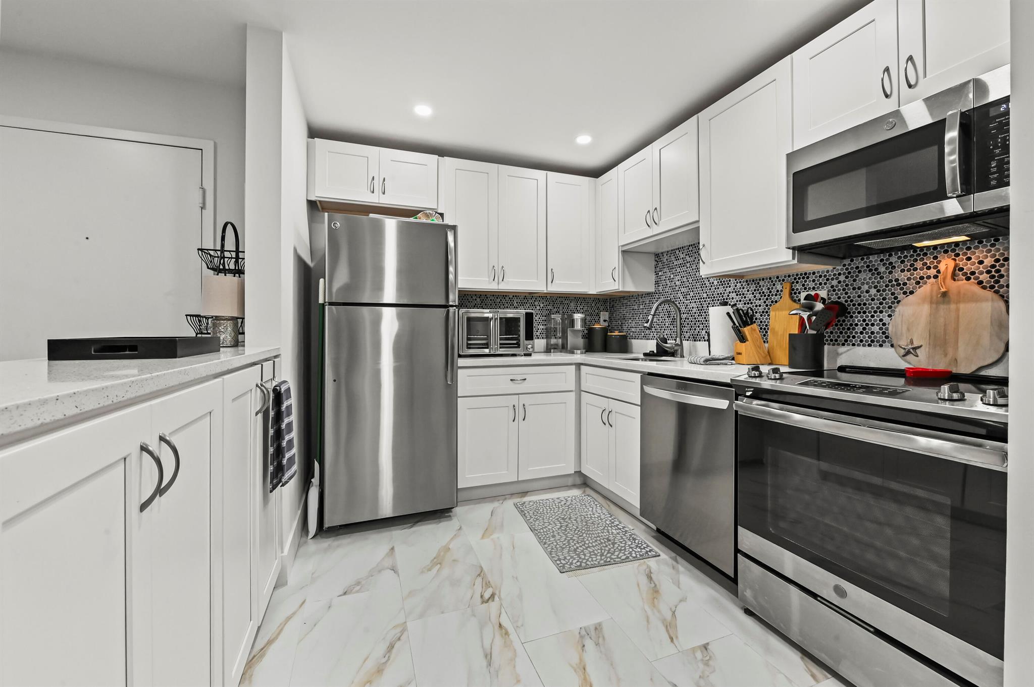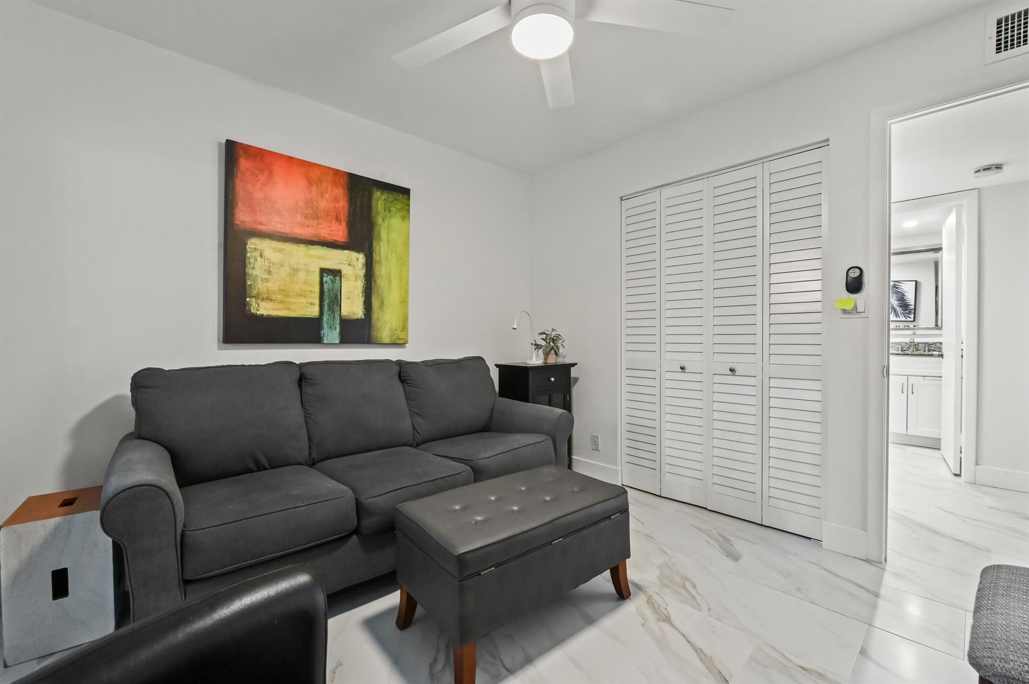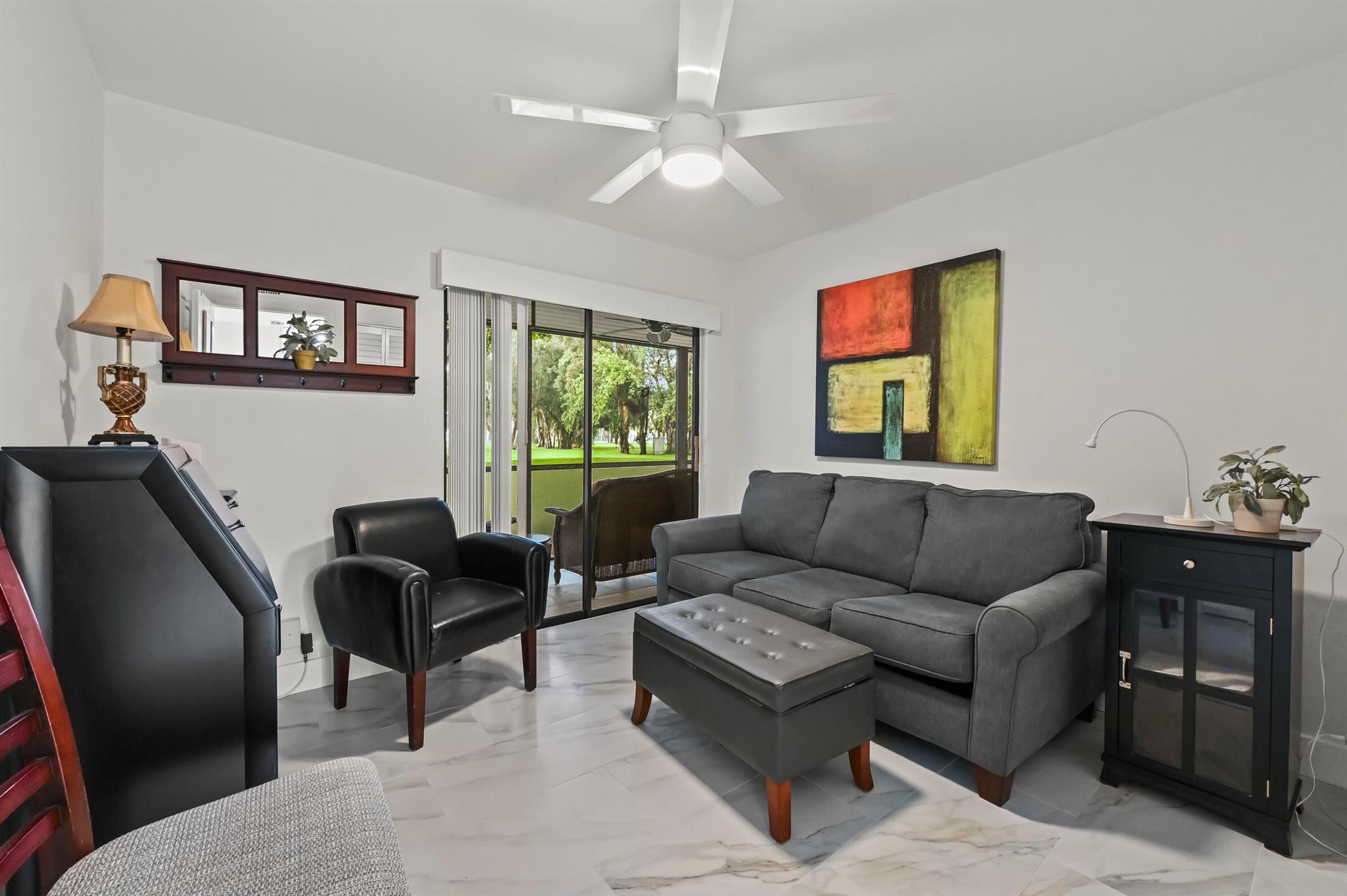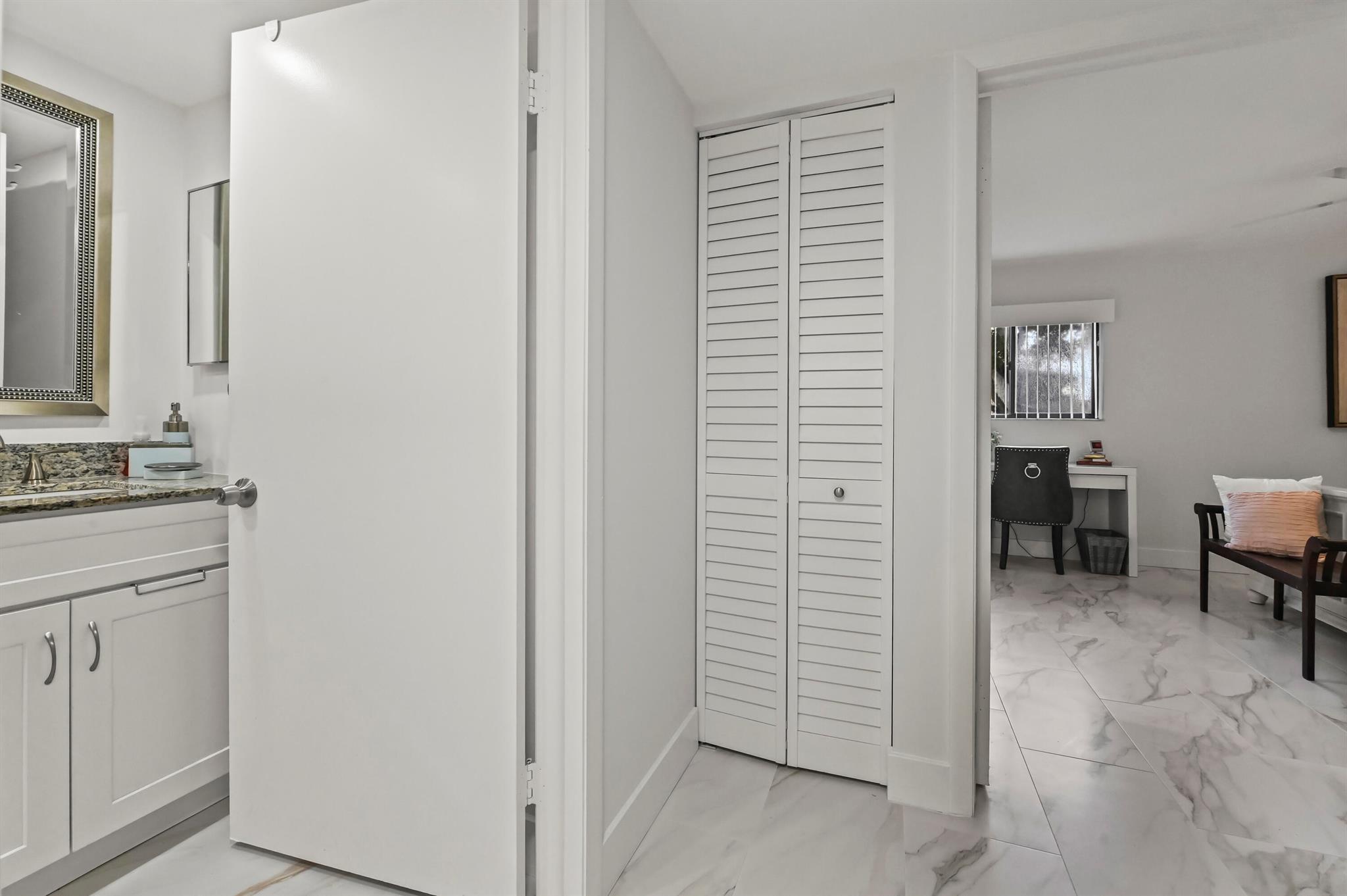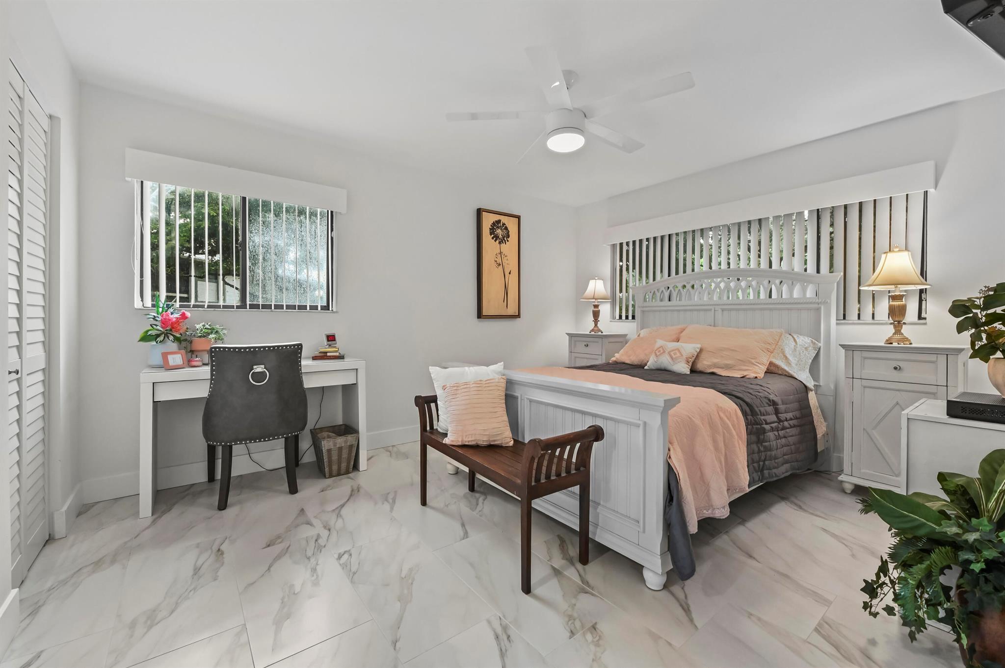 55+ gated community located in the heart of Delray Beach! This 2 bedroom/2 bath first floor condo is the best winter getaway! Fully renovated, fully furnished, every detail of comfort has been considered for your comfort. The kitchen has custom cabinetry w/stainless appliances. Washer/dryer located on lanai, w/ extra storage. Enjoy the garden view from the screened lanai.