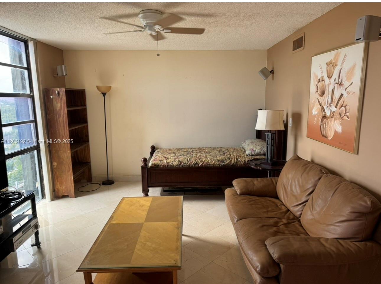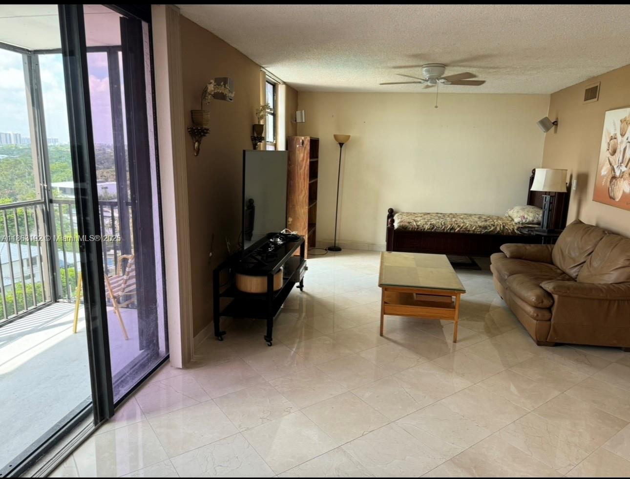 Enjoy stunning panoramic views of Biscayne Bay and Miami Skyline from this spacious 1 Bed convertible/2 full Bath unit that is partially furnished, perfectly positioned on a scenic cul-de-sac east of Biscayne Blvd, between Bal Harbour and Aventura. Bright and airy with abundant natural light, marble floors throughout, open kitchen layout with granite counters, Stainless Steel Appliances, an oversized balcony to watch the boats rolling by and see unforgettable sunsets. One assigned parking space and ample guest parking. Located steps from Arch Creek Nature Park Reserve, with easy access to bike paths, dog walking trails, and just minutes from the beach, top rated shopping, dining and FIU University. Furniture can be removed. Pet max 20 pounds.