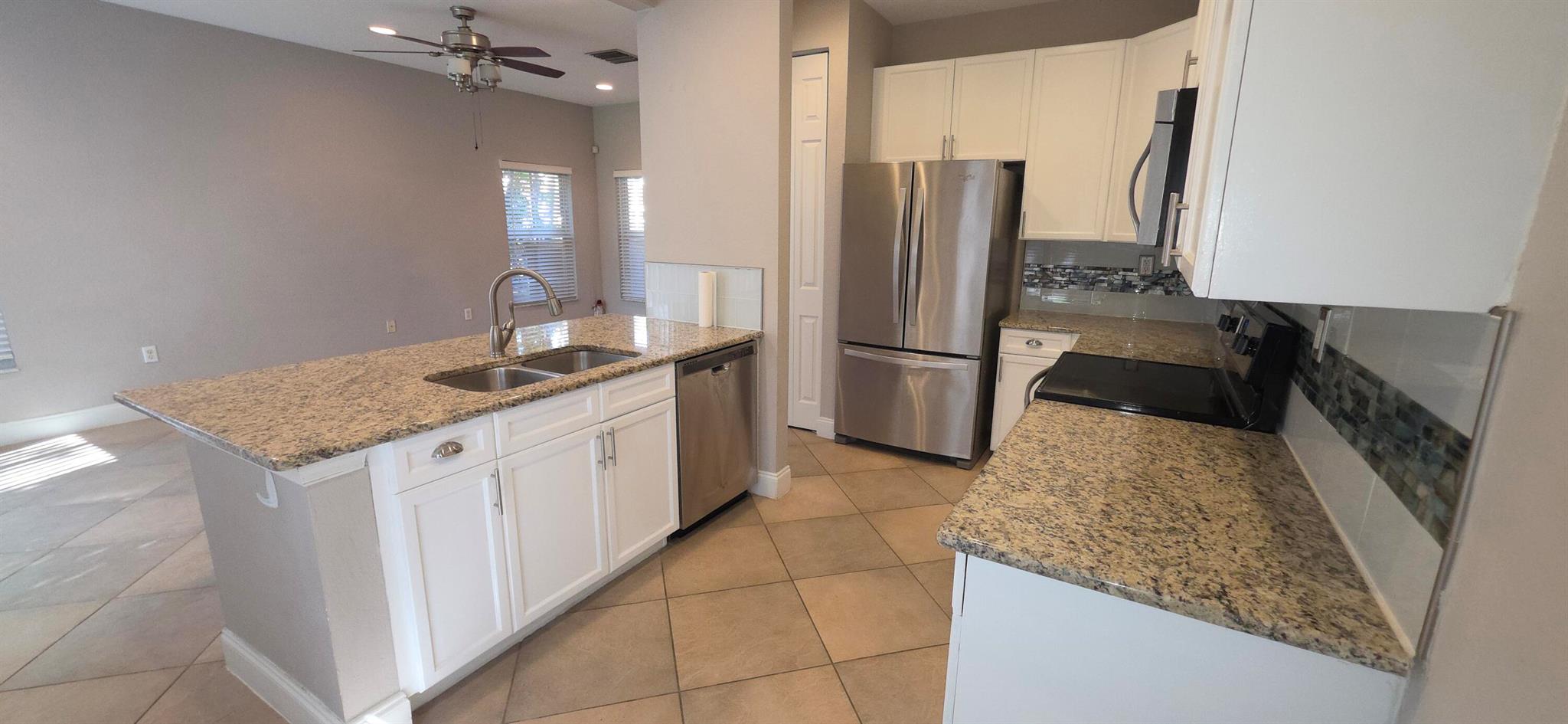 Beautifully updated 3-bedroom, 3-bath corner townhome in Monterey Bay with lake views. Features include a remodeled kitchen with white cabinets, granite countertops, stainless steel appliances, and backsplash; porcelain tile downstairs and wood floors upstairs; impact windows upstairs; and an oversized back patio. The spacious master suite also overlooks the lake. Located minutes from the beach and downtown Delray Beach, with easy access to highways, airports, and more. Enjoy the best of Florida living in this bright, open, and well-appointed home.