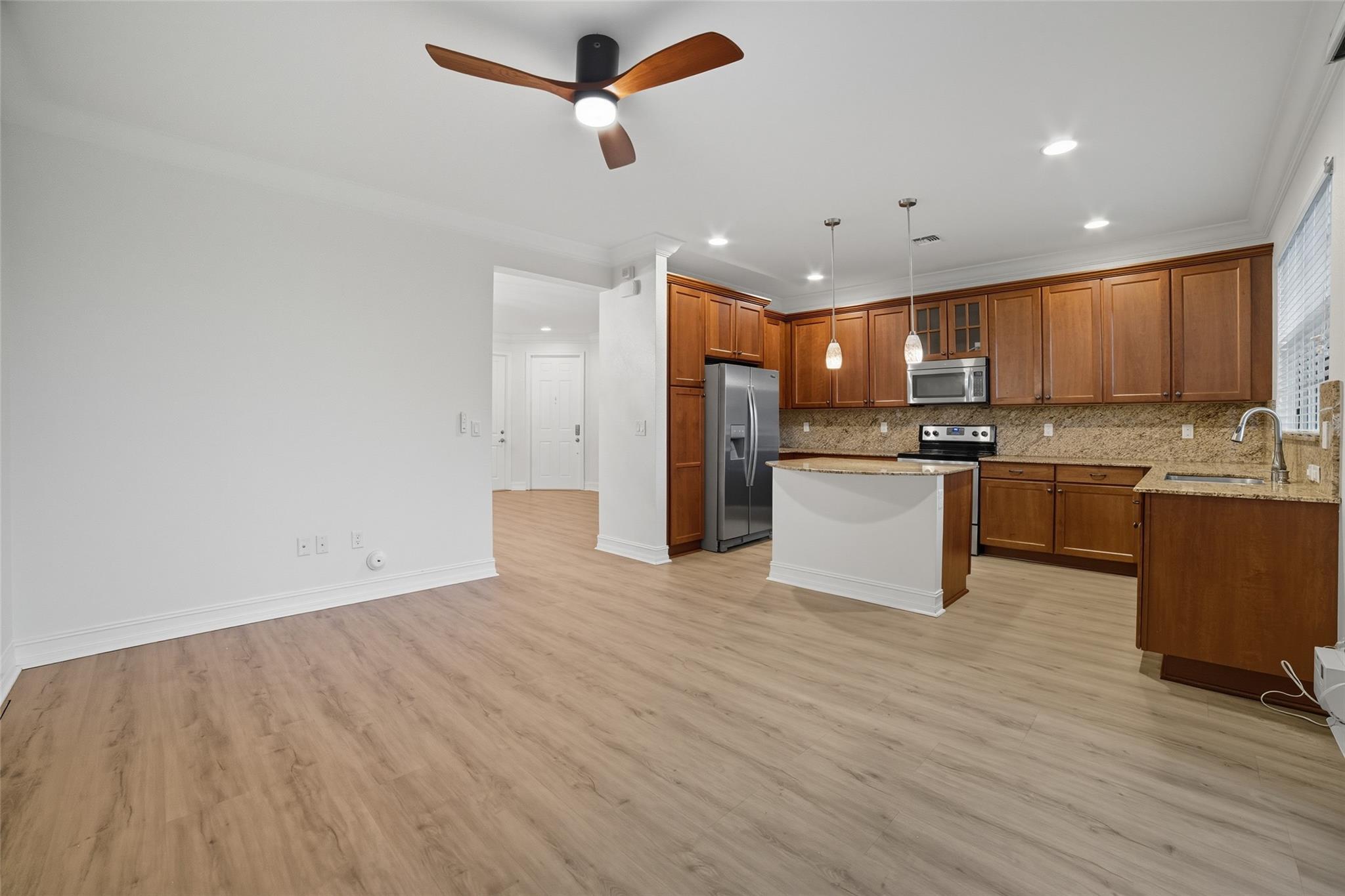 Elegant 3BR/2.5BA end-unit townhome in a gated Plantation community offering nearly 2,000 sq. ft. of refined living. A chef’s kitchen with granite counters, stainless appliances, pendant lighting, and custom cabinetry opens to spacious living areas with 9’ ceilings and abundant natural light. The owner’s suite features a Roman tub, glass shower, dual vanities, and a walk-in closet. Impact windows, epoxy-finished garage, covered patio, new A/C and upstairs laundry add convenience. Resort-style amenities include a pool, sundeck, and clubhouse, all surrounded by landscaped green spaces and walking paths. Ideally located near premier dining, shopping, and city parks with quick access to I-595, I-75, Sawgrass, and the Turnpike, offering the perfect blend of elegance and everyday ease.