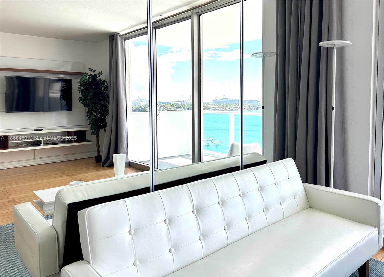 Fully furnished studio. Spectacular breathtaking direct waterviews from this tastefully decorated, very clean unit overlooking the bay, islands, Port of Miami and downtown skyline. Mirador 1200 amenities include a state-of-the-art gym, business center, onsite amazon lockers. Enjoy a spectacular outdoor pool, hot tub and BBQ areas overlooking the bay. Centrally located in the heart of West Avenue residential corridor in South Beach. High-speed Internet and cable TV Included. Generous walk-in closet and plenty of storage space within. Unlimited in-out valet parking available for only $90/mo. One year lease. Available now.