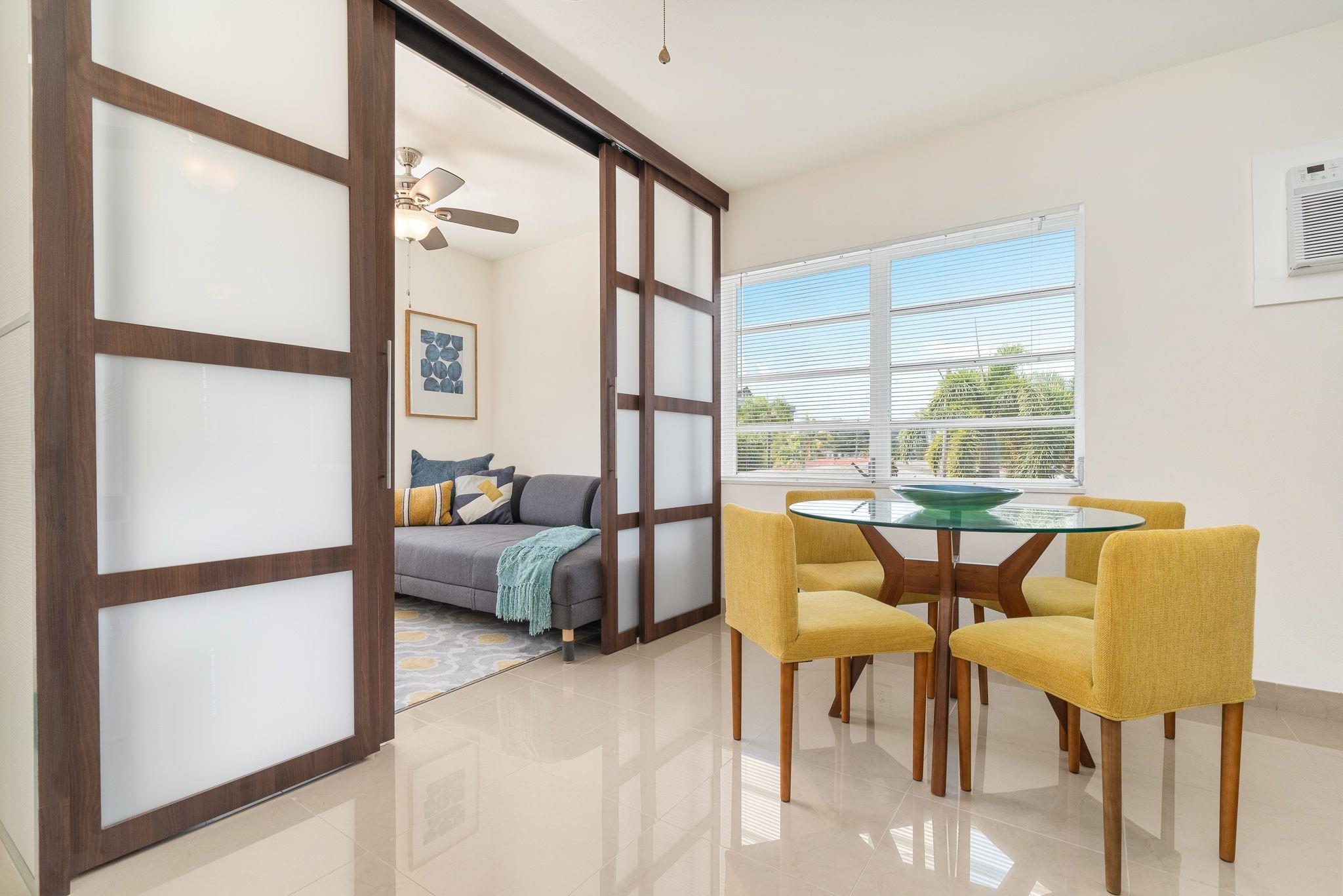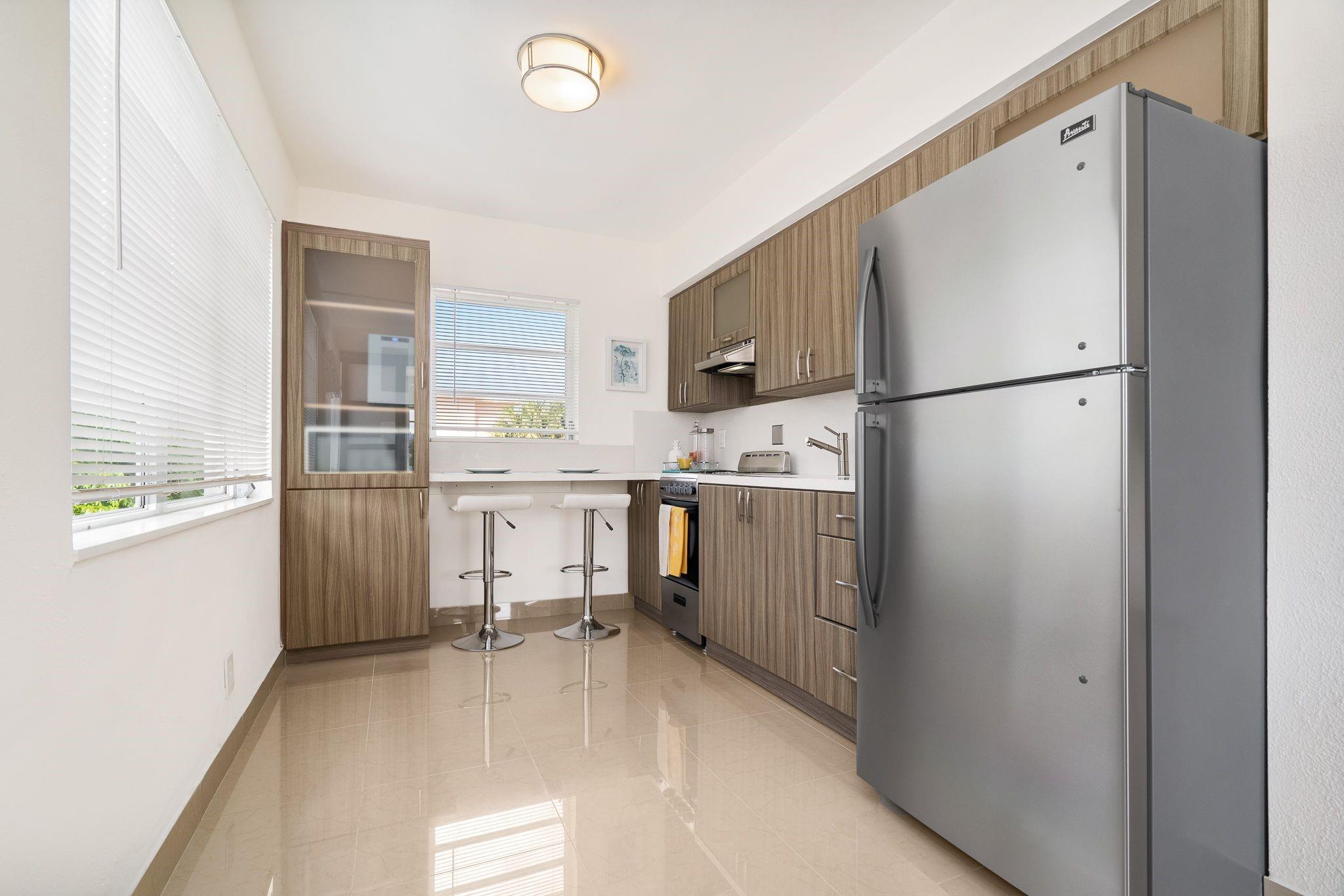 Amazing renovated large apartment offered furnished or unfurnished. One huge master bedroom with one smaller convertible bedroom/den plus 2 full baths. Gleaming Italian porcelain flooring throughout. Brand new kitchen cabinets, stainless steel appliances and bathrooms. Laundry room on site. Very quiet street, very private and secluded grounds with beautiful social areas to enjoy your coffee in the mornings and your cocktails in the evenings. Great Location. Close to beaches, walking distance to the restaurants and stores of Gulfstream and minutes to all major stores & restaurants of Aventura. Price offered is for unfurnished. Price with furniture is $2,200 per month.
