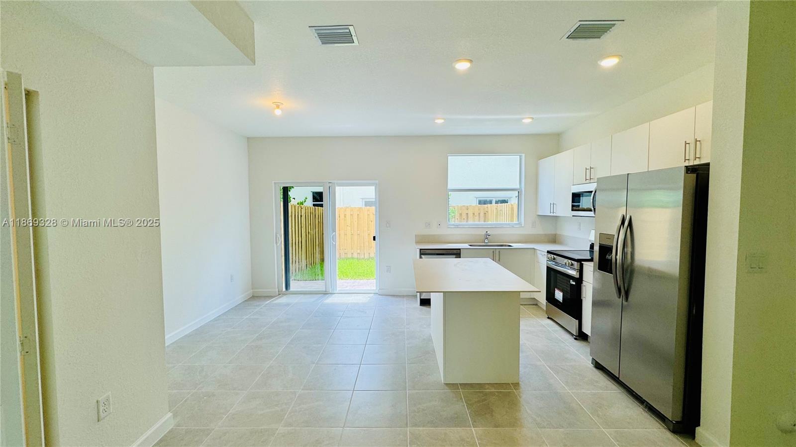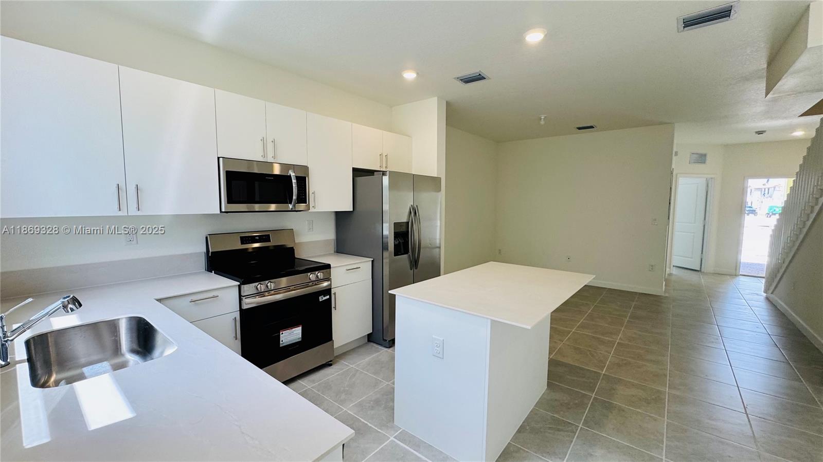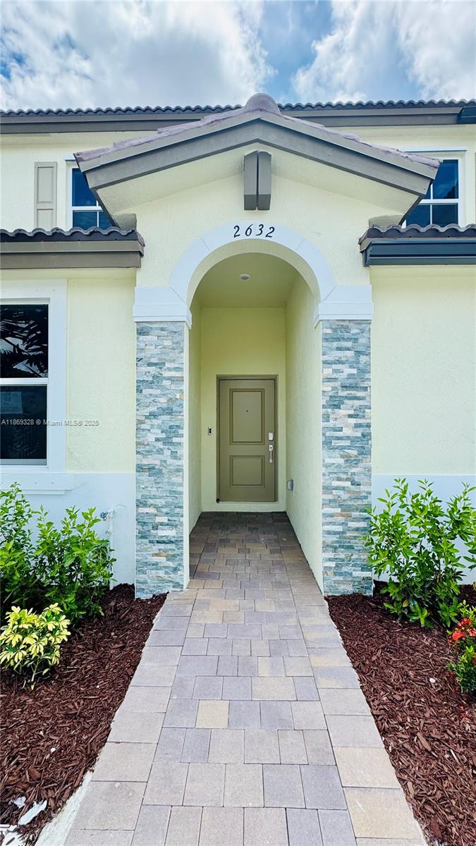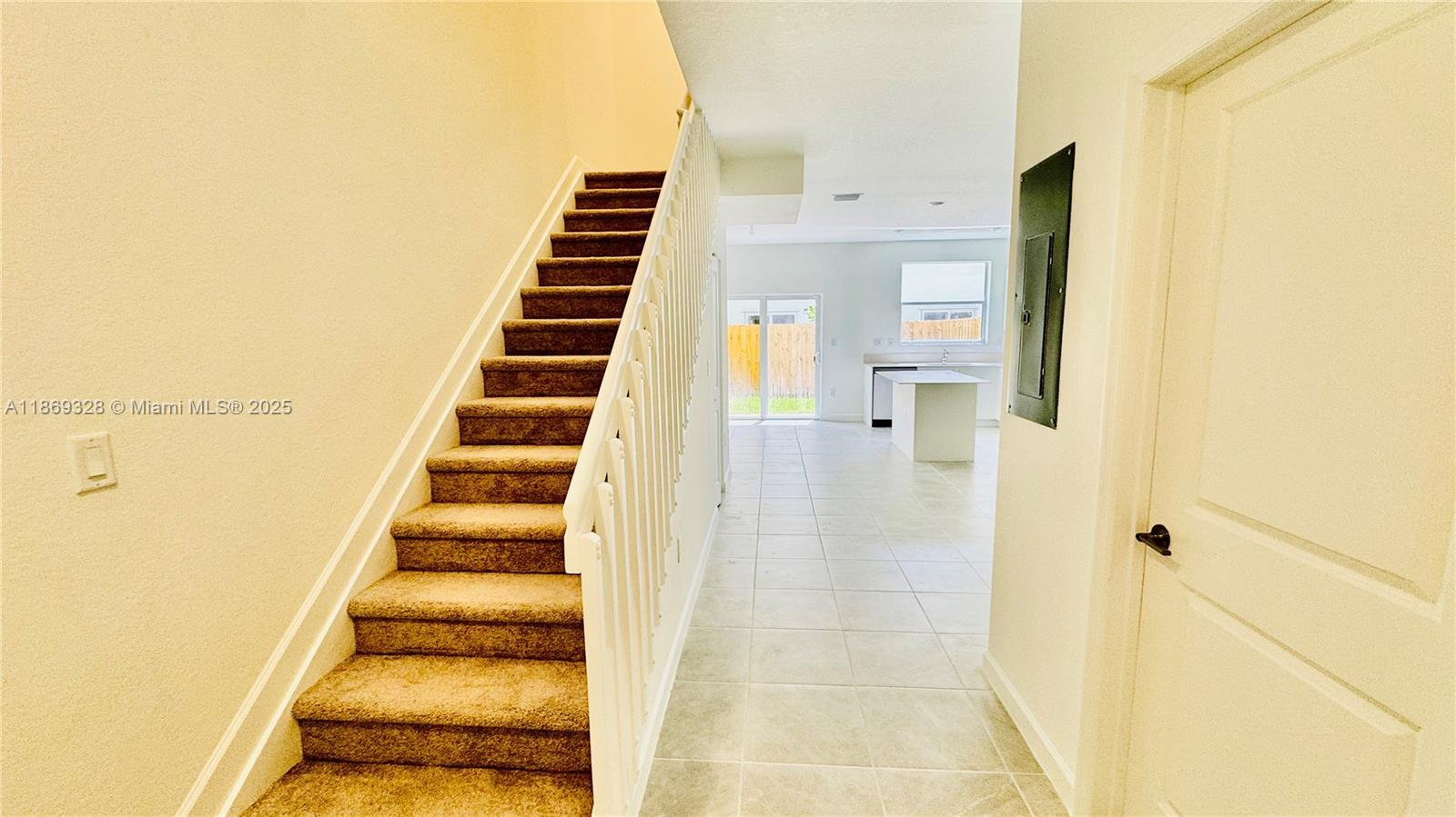 Altamira – Andalucía Collection (Bandol model): 2-story 3BR/3BA ~1,334 SF. The first floor blends family, dining, and kitchen in an open plan, plus a convenient bedroom with full bath for guests or an office; two more bedrooms sit upstairs. Ready with stainless-steel appliances in kitchen, solid-surface counters, tile in main areas, and smart features like Ring Doorbell, Honeywell smart thermostat, and Schlage Wi-Fi deadbolt. Enjoy future resort-style amenities: expansive clubhouse with fitness center, restaurant & bar, ballroom, business center, swimming pool, tennis, BBQ areas, parks, and a golf course—close to Homestead shopping, dining, and entertainment.