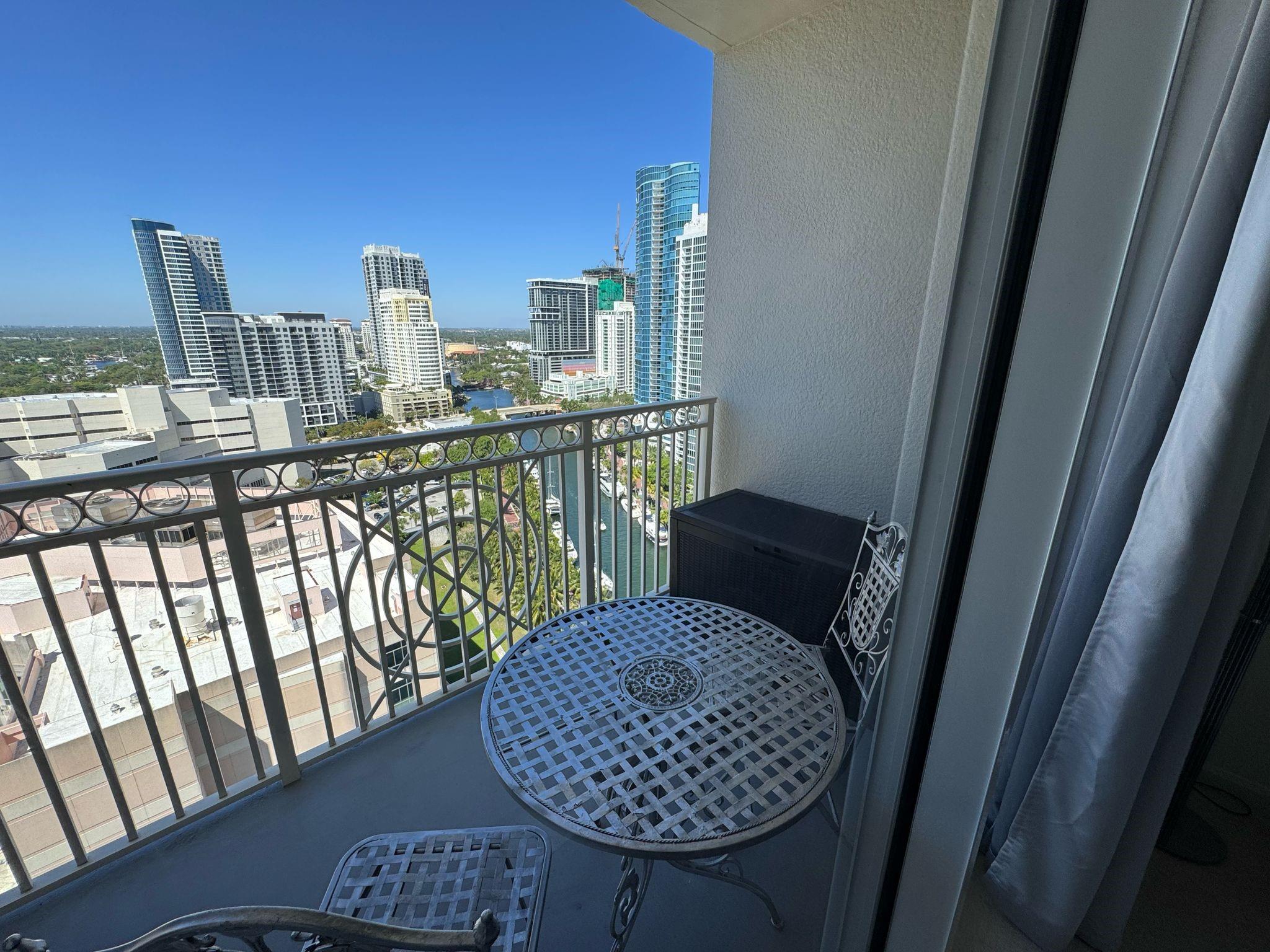 High Floor Furnished One Bedroom One Bath Residence located in the heart of downtown! A perfect Las Olas Location right on the River! Sunset river views from your private terrace overlooking the boating activity along the water. This one bedroom unit features granite kitchen countertops, stainless appliances, furnished living room and primary suite with spacious walk in closet. Washer and Dryer in the unit. NuRiver Landing offers 24 hr front desk, valet and security. State of the art fitness center, indoor basket ball court, roof top pool, hot tub, sauna and steam, bbq grills, meditation garden and business center. Close to fine dining, night life, museums, grocery stores and shopping. Hop on the Brightline, and high speed rail over to Miami, Aventura, Palm Beach or Orlando!