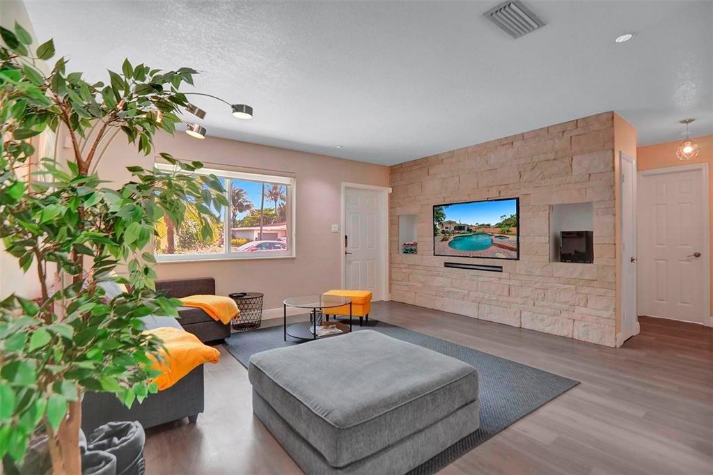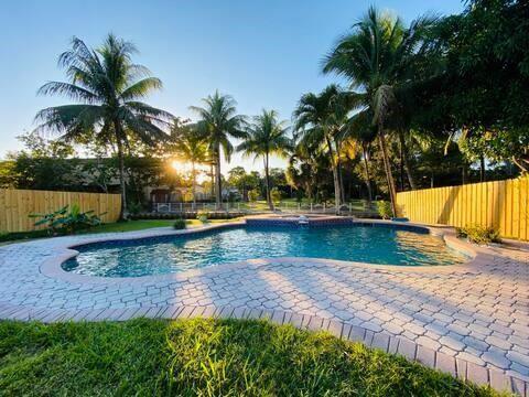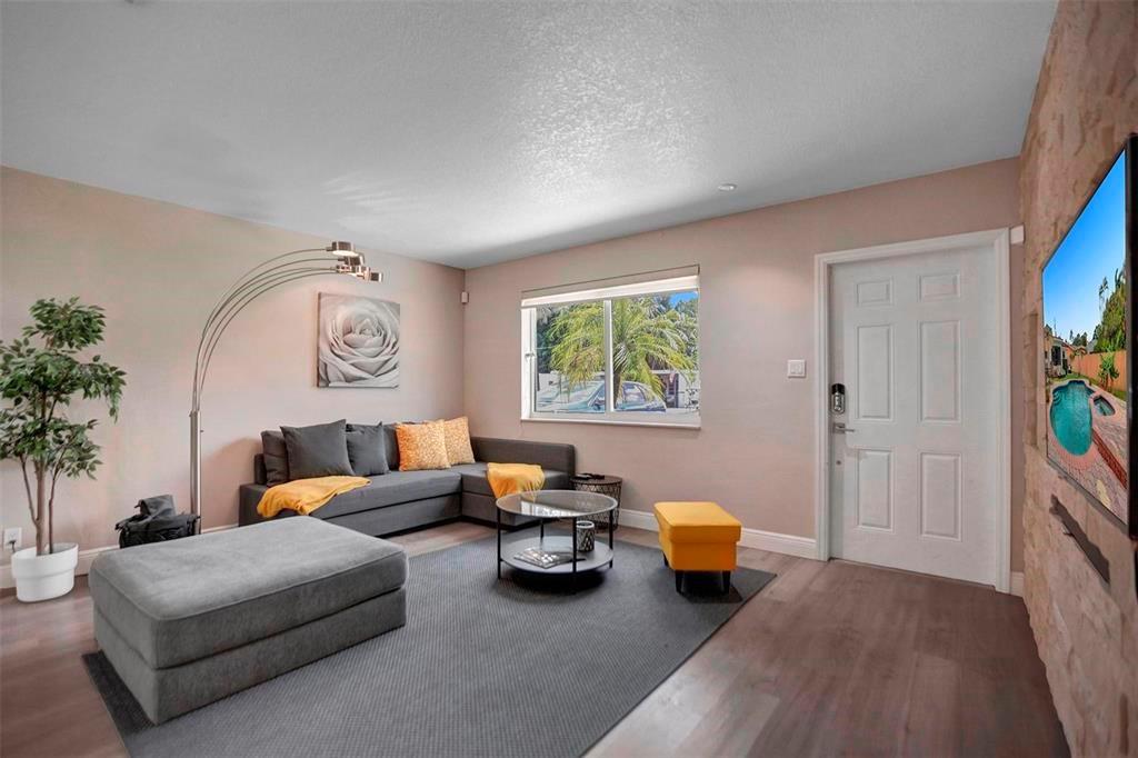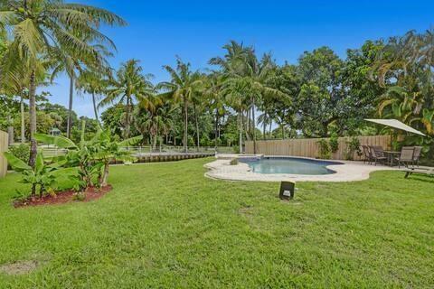 Beautifully updated, UNFURNISHED, 3-bedroom, 2 bath pool home nestled on a quiet canal in the charming Chula Vista/Riverland neighborhood of Fort Lauderdale. Open concept kitchen features sleek quartz countertops, SS appliances, dedicated dining/family & separate living room includes a built in tv screen- a spacious layout perfect for entertaining. The durable laminate flooring runs throughout the home large pantry/laundry room, hurricane impact windows & doors, split bedroom floor plan & the primary suite boasts its own entrance to lush tropical backyard, Step outside to your private fully fenced oasis, large free form pool, paver decking, storage shed, & irrigation. The home sits directly across from the peaceful & secluded Ann Herman Park, offering a tranquil backdrop & added privacy.