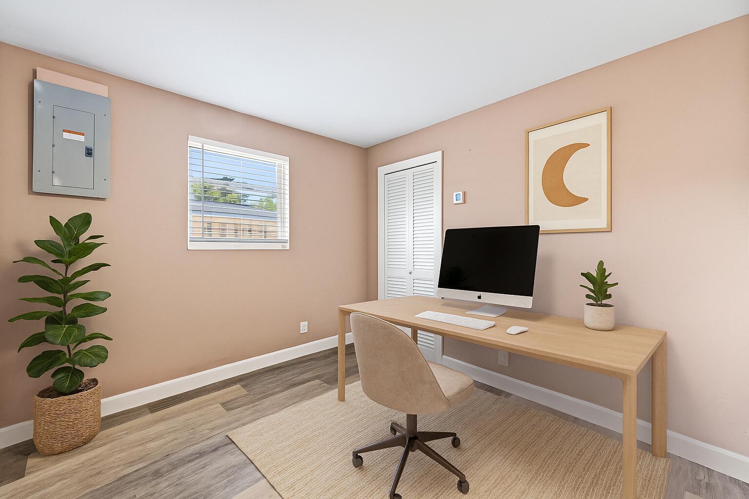 Come see this cozy 3-bedroom/1-bath home with a 1-bed/1-bath detached studio nestled in the tranquil Pinewood Park neighborhood of West Palm Beach. This inviting residence boasts a spacious 1,000 sq ft layout in the main house, featuring a fenced yard perfect for pets and outdoor gatherings. Enjoy the convenience of an in-unit washer and dryer, central air conditioning, and a covered carport offering additional storage options. Situated just minutes from the airport, downtown, brightline, and local amenities, this home provides both comfort and accessibility. Pet-friendly policies ensure your furry companions are welcome.