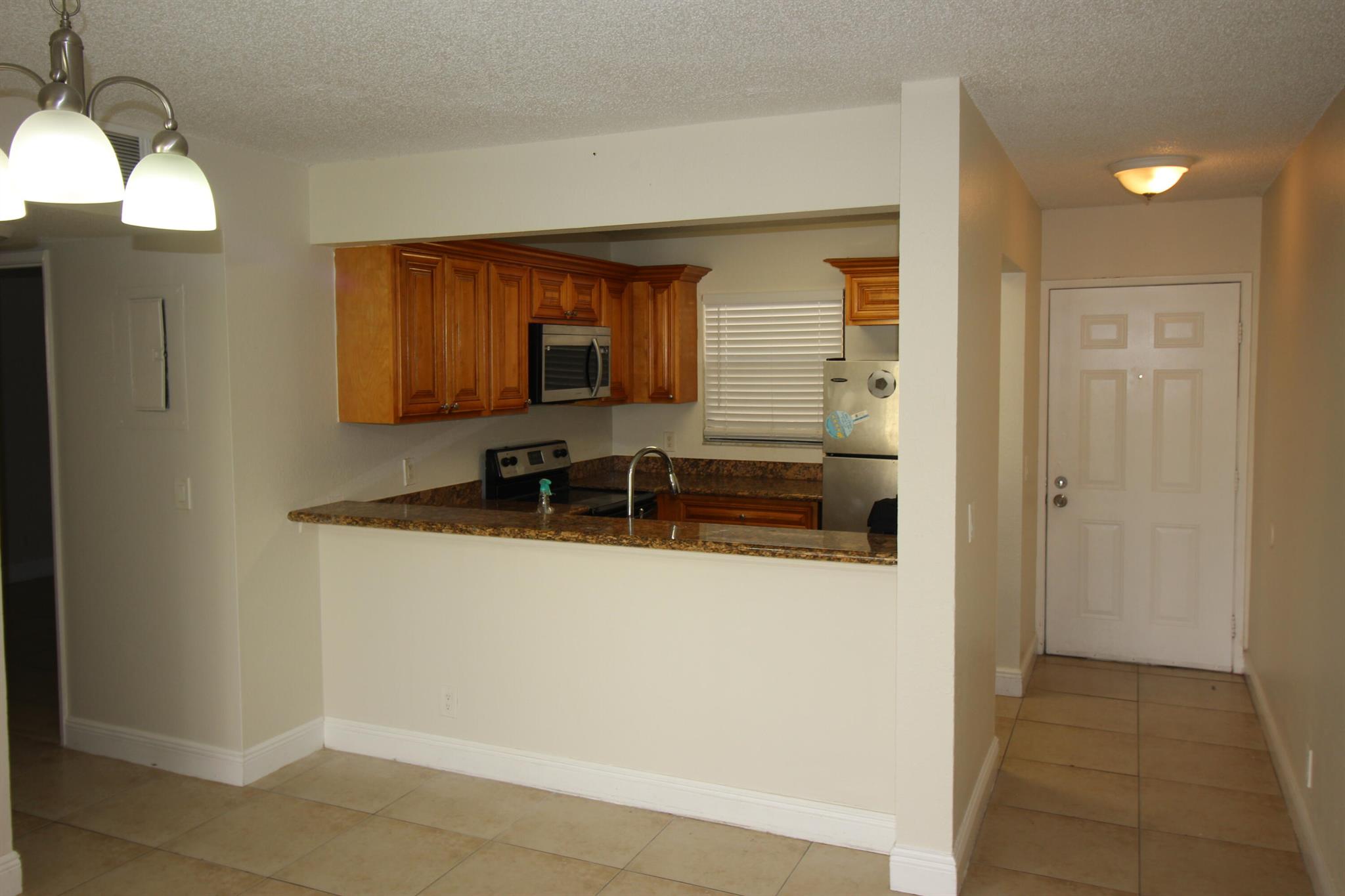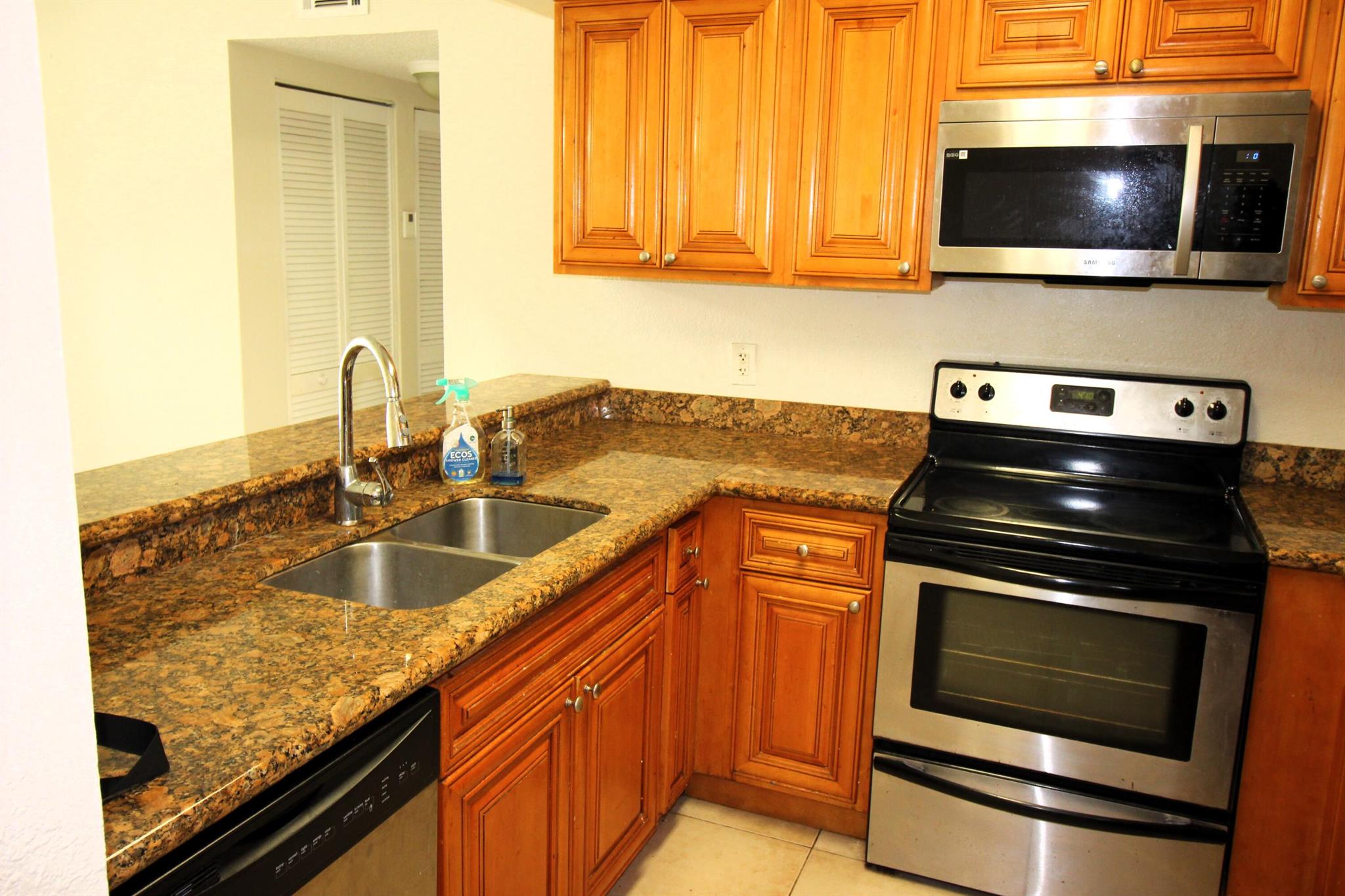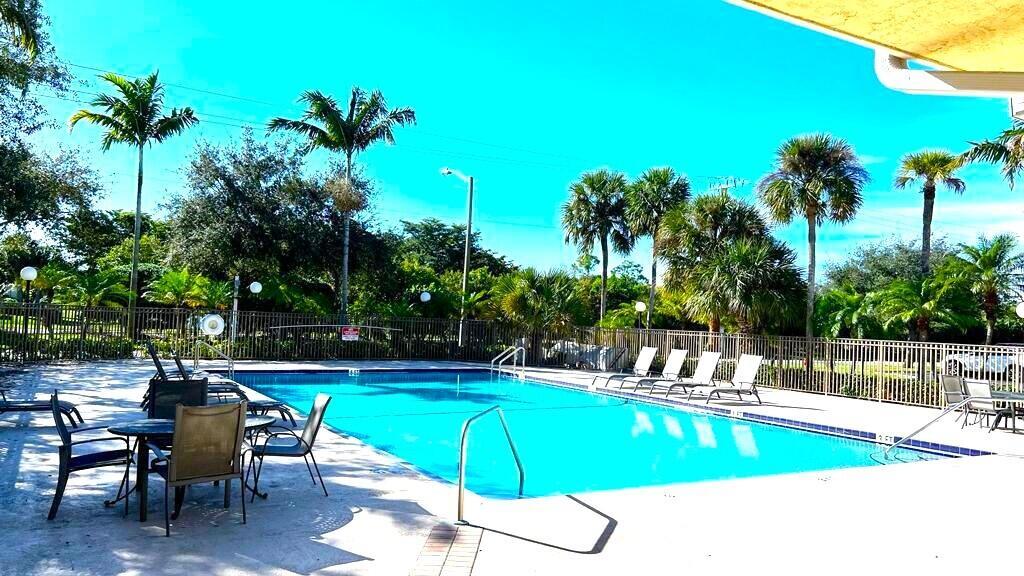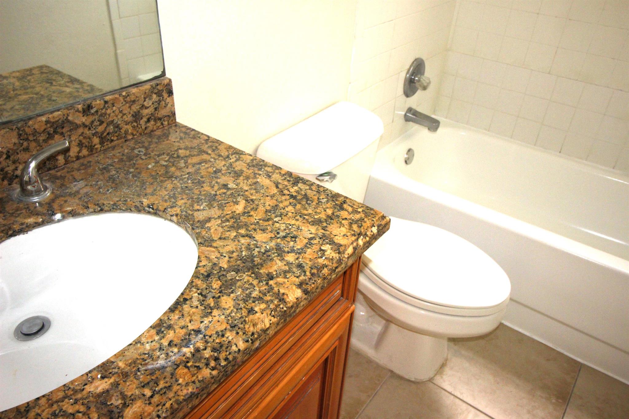 Peaceful beautiful community. The back faces the pond. Two bedrooms and two full bathrooms Clean and painted first floor. Includes full size washer & dryer in the unit. Granite counter tops in the kitchen and the bathrooms. Tile flooring throughout. The community offers swimming pool and tennis courts.