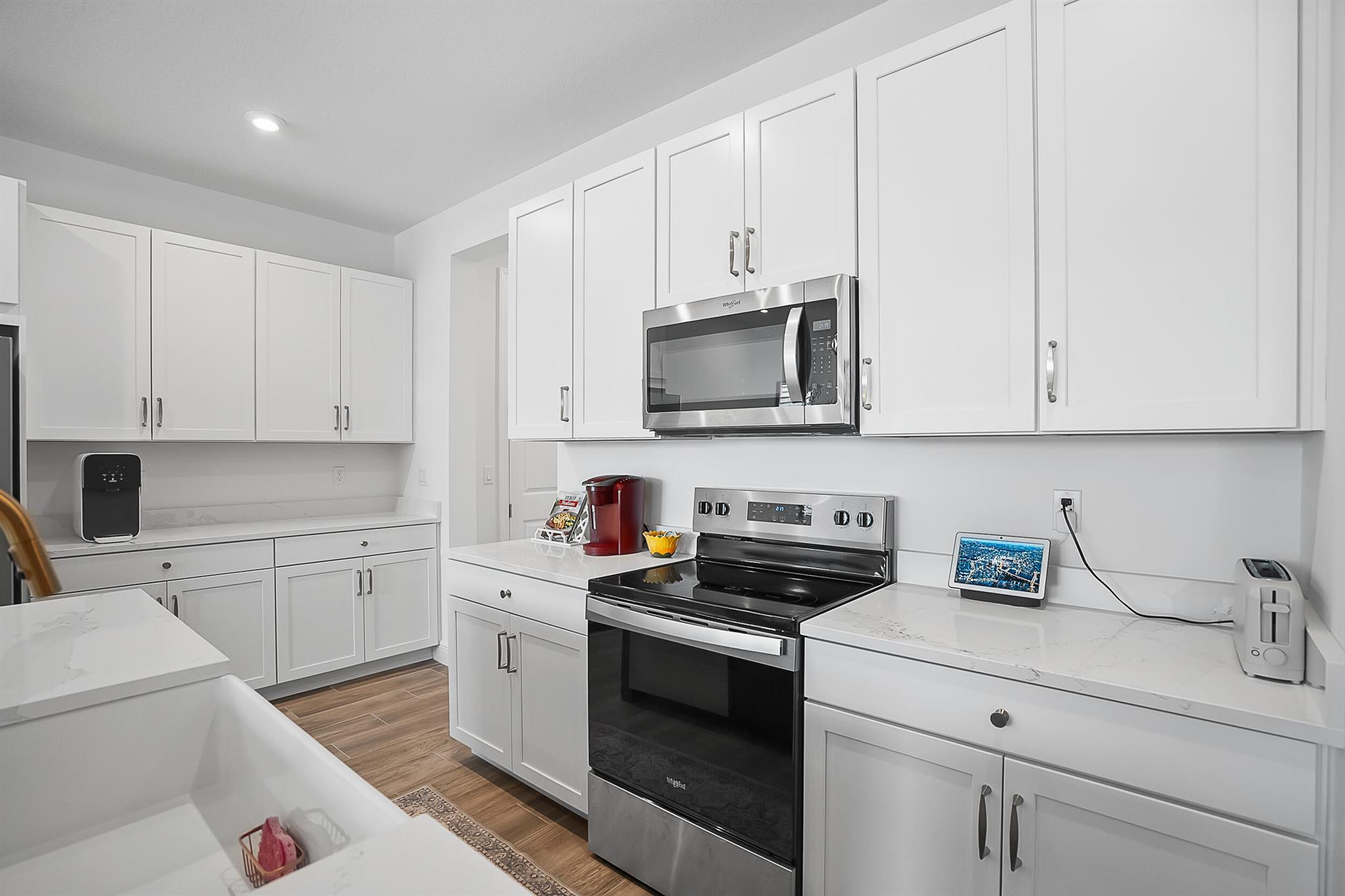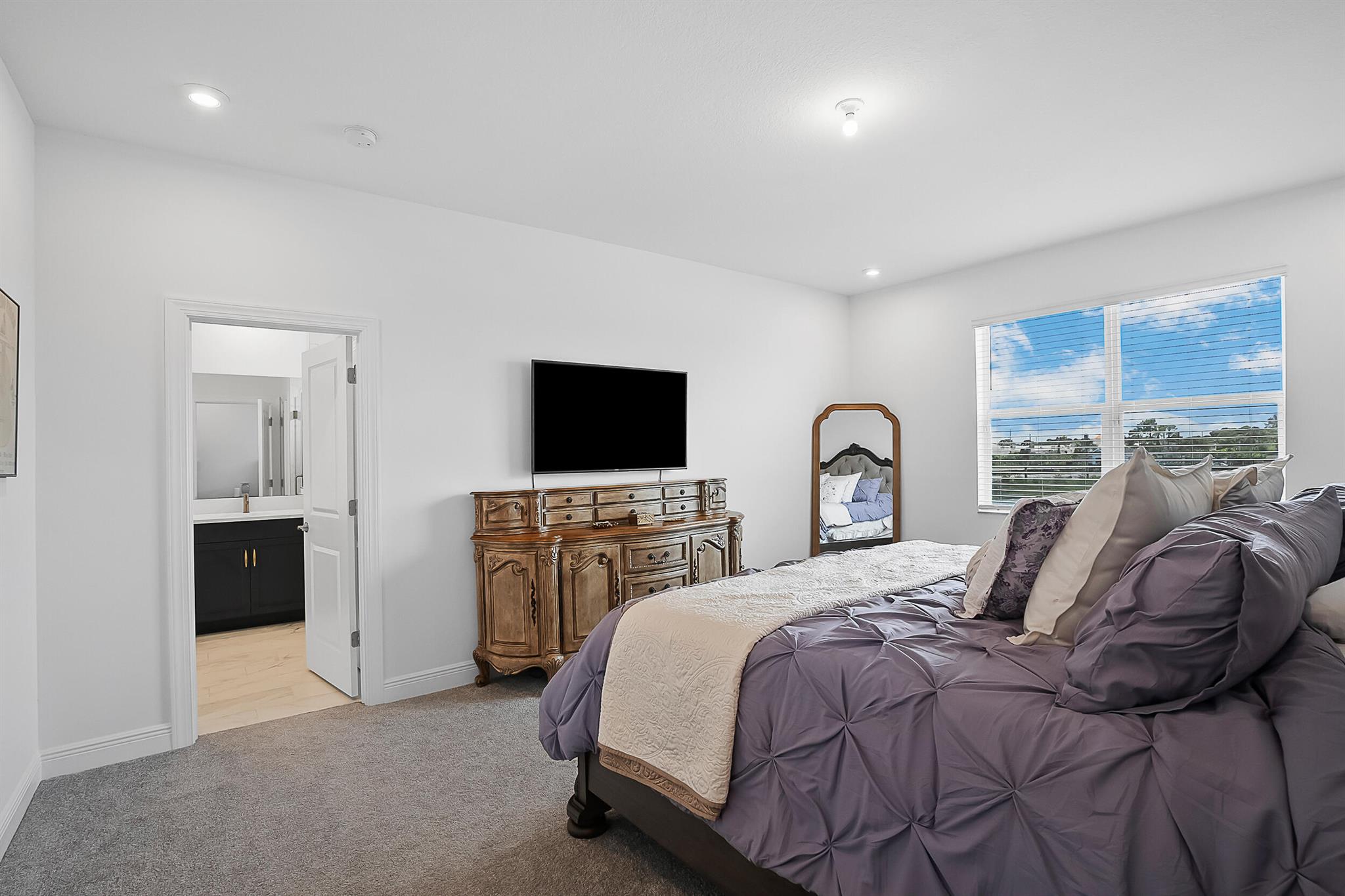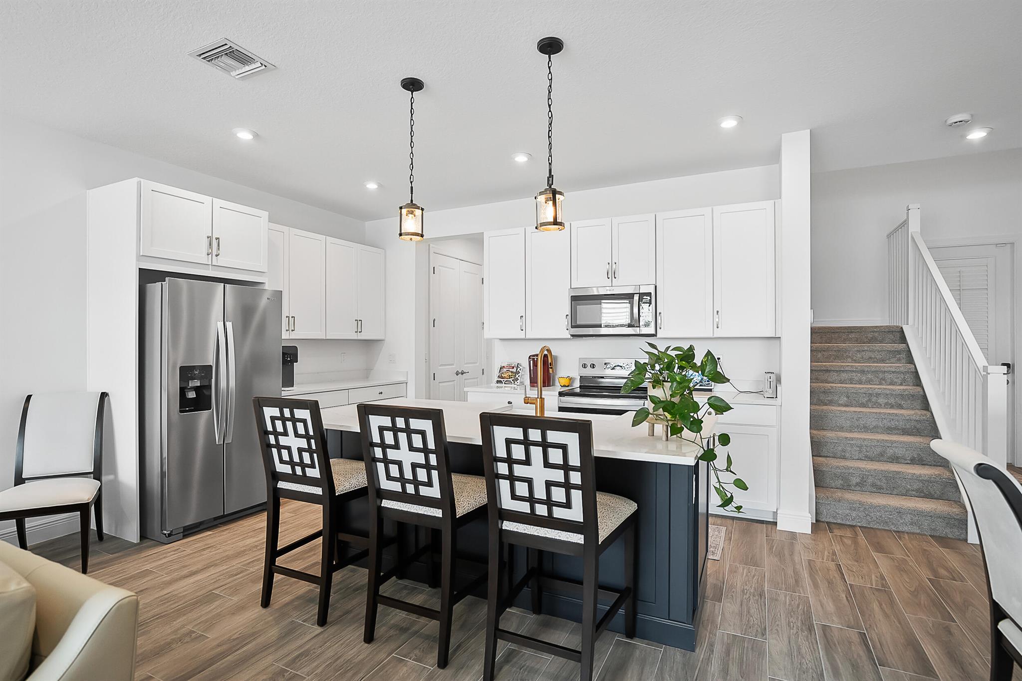 Brand new Dylan floor plan townhome in the heart of Jensen Beach! This 3 bedroom, 2.5 bath, 2-car garage home showcases luxury designer finishes throughout. Enjoy peace of mind with full impact windows, a stylish glass entry door, and elegant stone exterior accents. The gourmet kitchen features 42'' cabinets, quartz countertops, and stainless-steel appliances, while the spacious living area flows seamlessly with luxury tile flooring. Upstairs you'll find a loft and a primary suite with his & her quartz vanities, plus a quartz double vanity in the guest bath. Additional highlights include two-panel interior doors, ceiling fans, and a paver driveway and porch. Relax on your back porch overlooking the serene lake. Ideally located just 10 minutes from Hutchinson Island Beaches.