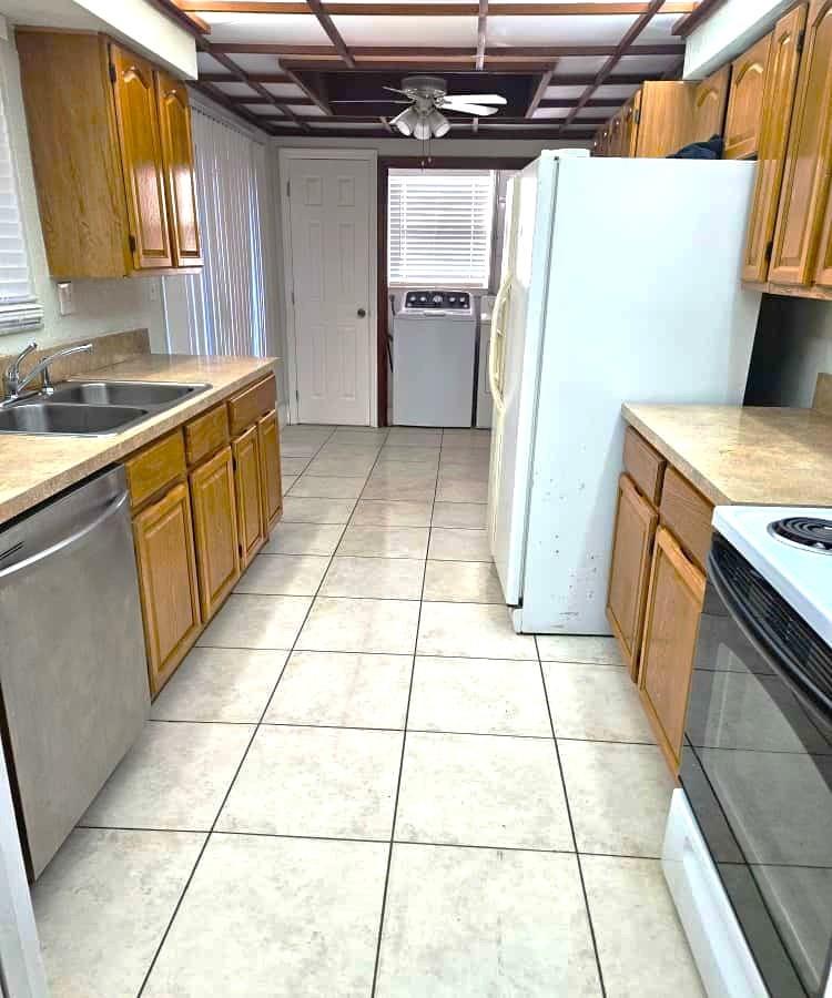 Welcome to this move-in-ready 3-bedroom, 2-bathroom home, featuring a new roof and a new, energy-efficient tankless water heater. Recent updates also include a central AC unit under 6 months old, designed for lower electric bills. The interior offers modern convenience with a dishwasher and included washer & dryer. Step outside to enjoy a private backyard with fruit trees and sprinkler system. Additional features include a garage with an automatic opener and ceiling fans throughout. Circular driveway for convenient parking.
