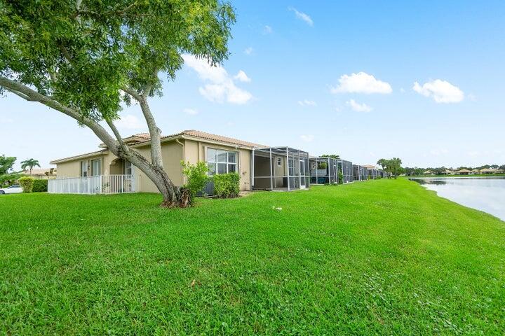 Rent includes HOA fee, gate guard, basic cable TV, internet, and lawn care. Bright, fully remodeled 3BR/2BA lakefront home with upgraded flooring throughout, no carpet. Two laundry areas: one near bedrooms with new cabinetry, another in garage. Spacious primary suite with stunning lake views, patio access, two walk-in closets, dual vanities, and walk-in shower. Kitchen features new stainless steel appliances and two eat-in areas. Open living space with sliding doors to patio and backyard. 2-car garage plus extended driveway. Rent includes landscaping, basic cable, WiFi, 24/7 gated security, heated pool, spa, sauna, fitness center, tennis, billiards & more! Convenient to I-95, Turnpike, PBI Airport, shopping, dining ,more. Yes HOA application and no HOA approval required!