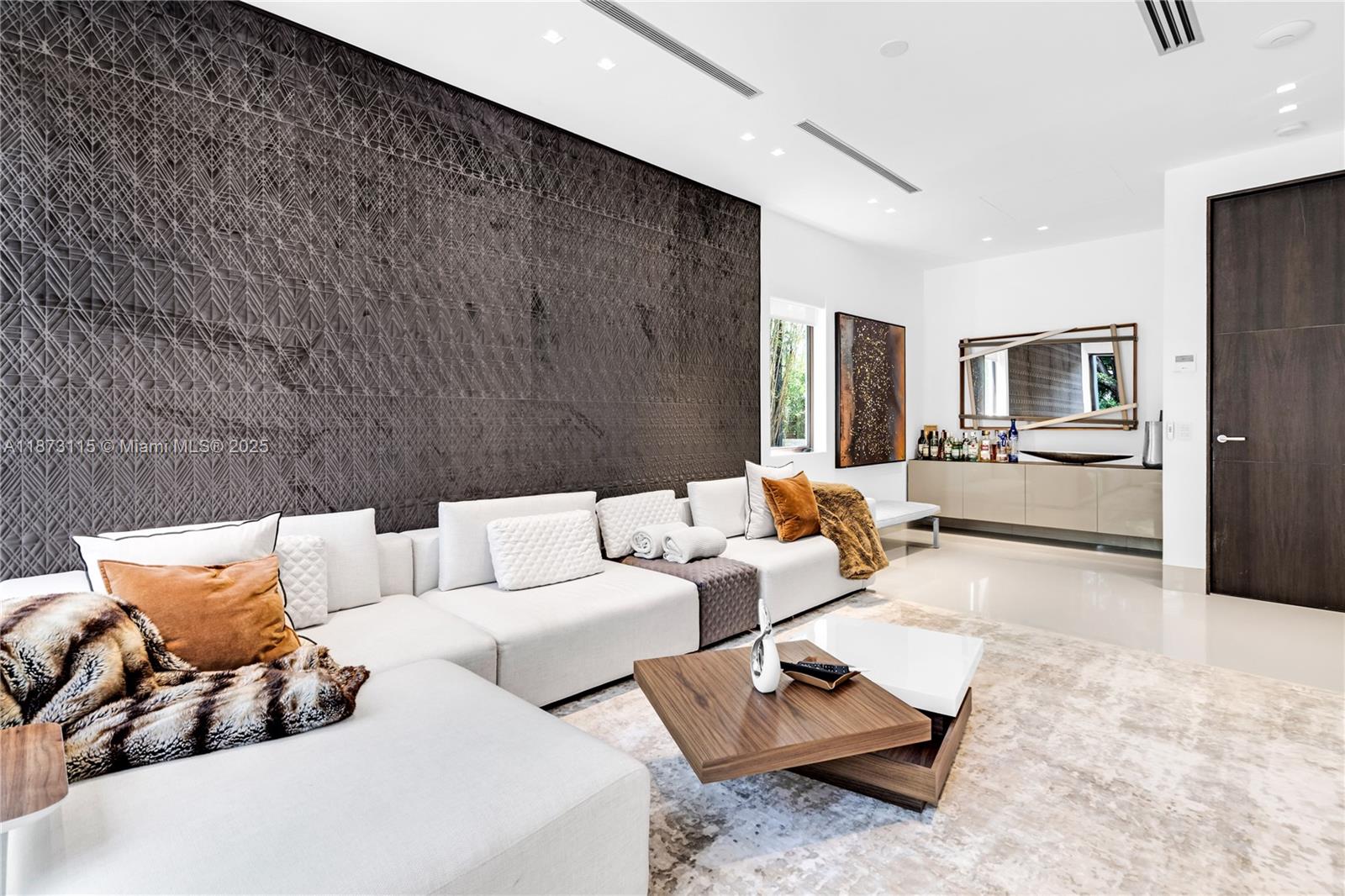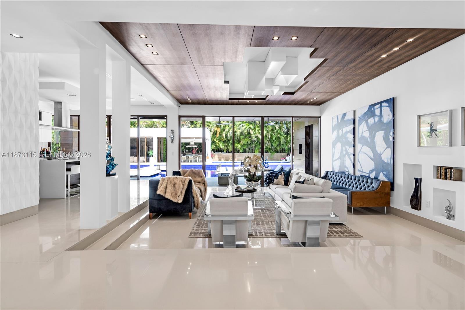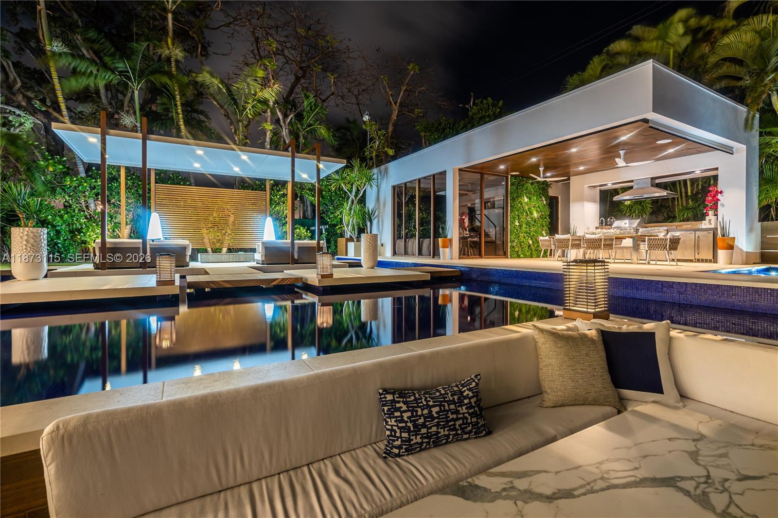 Exquisite modern residence is a stunning expression of contemporary luxury in one of Miami Beach's most exclusive neighborhoods. Spanning 5,119 SF + 14,300 SF lot, home features 4 beds/4.5 baths & open, light-filled design w/ bespoke detail throughout. Great room is framed by floor-to-ceiling glass, seamlessly connecting to lush landscaping by Lewis Aqui. Marble & quartz flooring on the 1st level transition to warm oak upstairs, complemented by elegant Delta lighting. Snaidero kitchen w/ Miele appliances, double ovens + sleek cabinetry. Spaces include office, den, pool house + gym. Outdoors, shimmering pool, summer kitchen & dining areas provide the perfect setting for entertaining. The home's refined aesthetic is enhanced by Prodema cladding, while a full-house generator adds convenience.