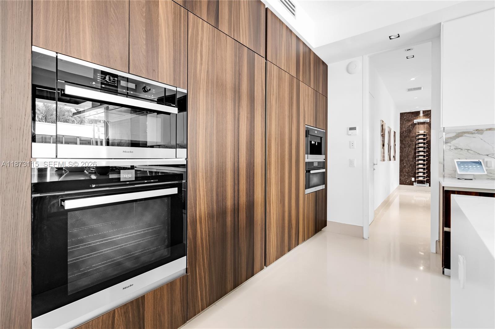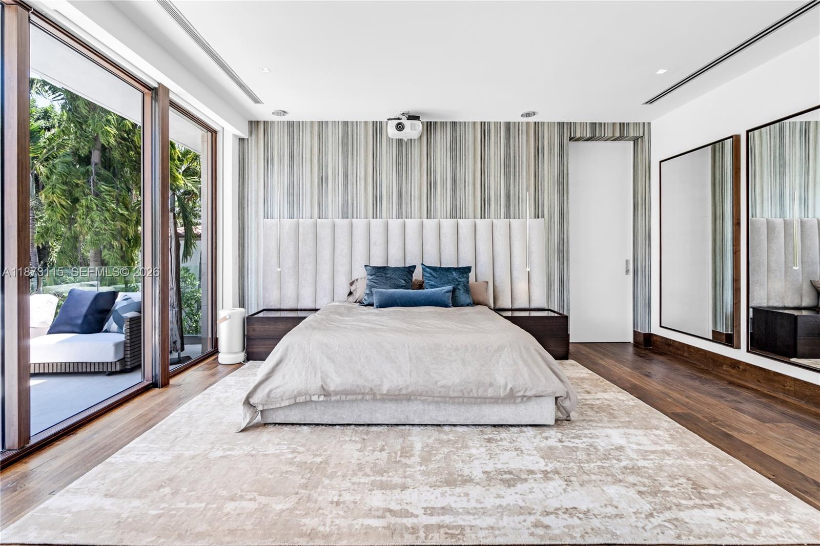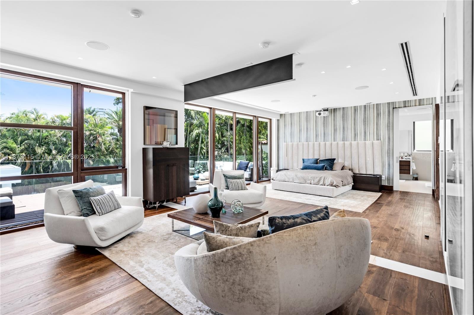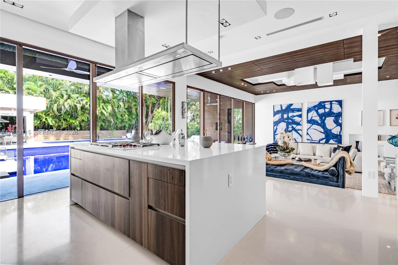 Exquisite modern residence is a stunning expression of contemporary luxury in one of Miami Beach's most exclusive neighborhoods. Spanning 5,119 SF + 14,300 SF lot, home features 4 beds/4.5 baths & open, light-filled design w/ bespoke detail throughout. Great room is framed by floor-to-ceiling glass, seamlessly connecting to lush landscaping by Lewis Aqui. Marble & quartz flooring on the 1st level transition to warm oak upstairs, complemented by elegant Delta lighting. Snaidero kitchen w/ Miele appliances, double ovens + sleek cabinetry. Spaces include office, den, pool house + gym. Outdoors, shimmering pool, summer kitchen & dining areas provide the perfect setting for entertaining. The home's refined aesthetic is enhanced by Prodema cladding, while a full-house generator adds convenience.