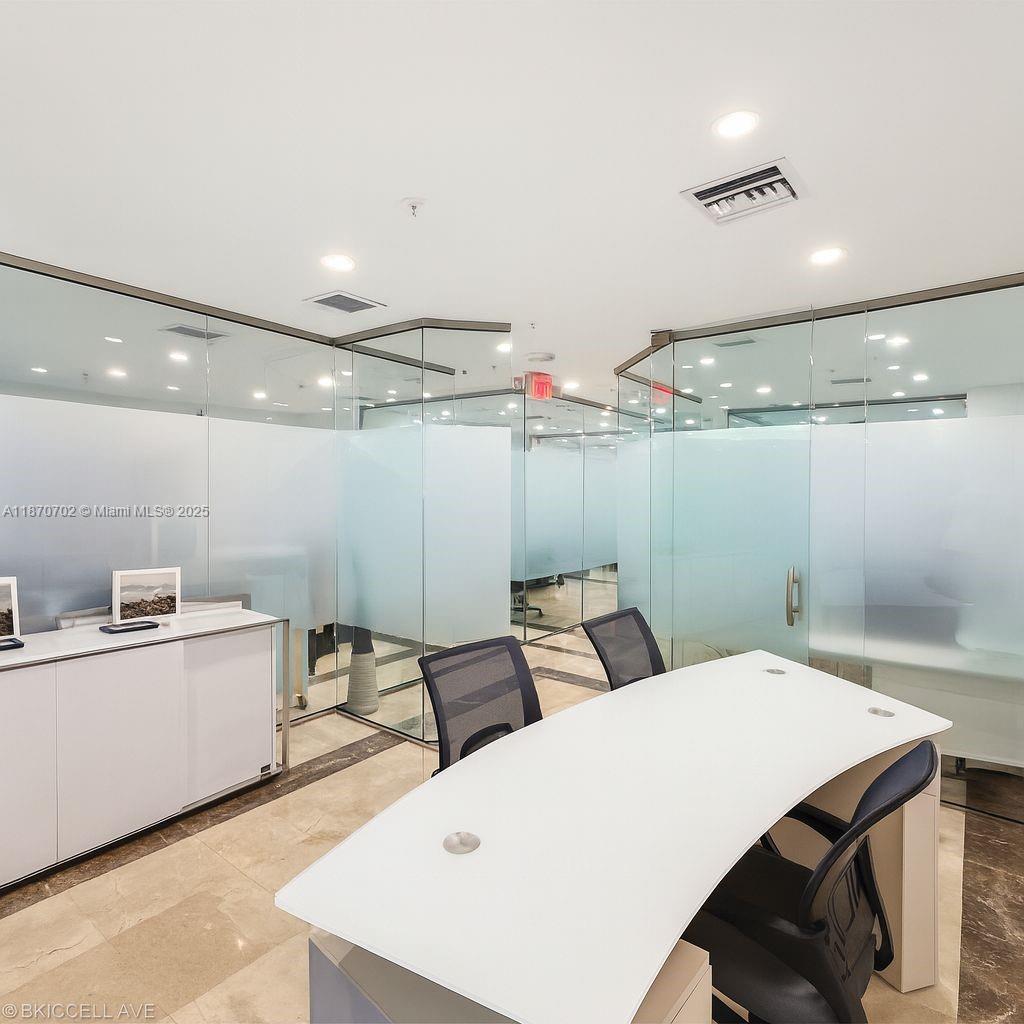 Discover a modern and elegant office space in the heart of Brickell at 1110 Brickell Ave, Units 607A & 607B. Featuring 5 private offices, a glass conference room, kitchen area fully equipped (coffee machine, microwave, mini-fridge, utensils), and modern furnishings, this workspace is truly move-in ready. Bright glass partitions, marble floors, and sleek design make it ideal for law firms, financial groups, or creative agencies. Offered fully furnished with parking included, this is the perfect opportunity to elevate your business presence in Miami’s premier financial district.