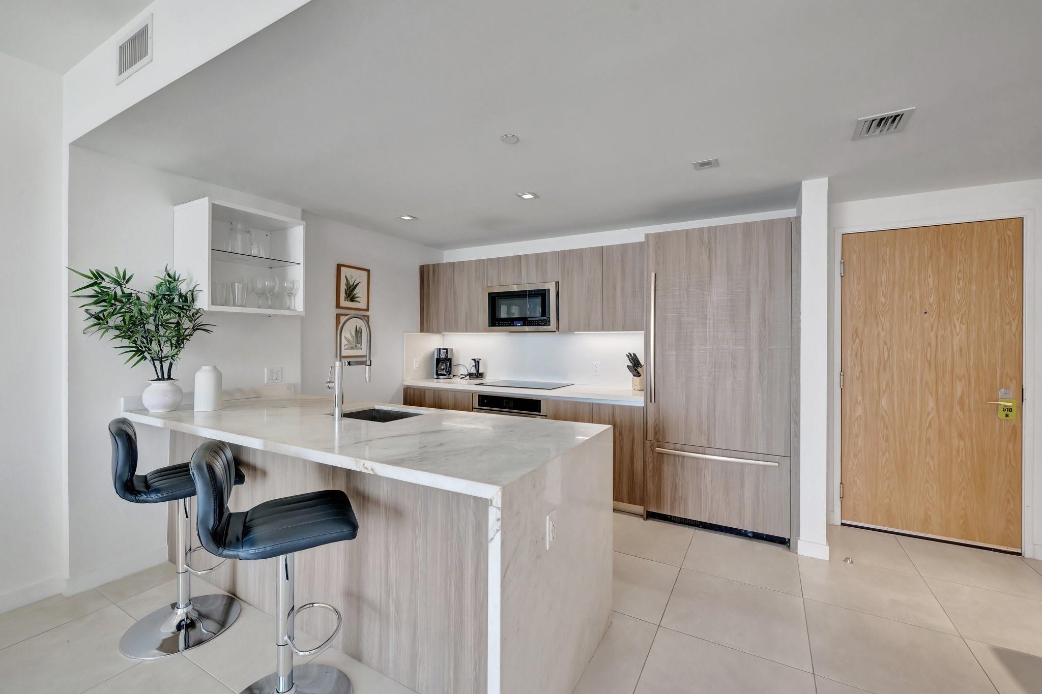Luxury living on Fort Lauderdale Beach, a modern 1 Bed+ Den condo in the heart of Fort Lauderdale Beach. Fully furnished and available for SHORT or LONG-term stays. Elegant residence features a chef’s kitchen with designer finishes and high-end appliances. Open floor plan with floor to ceiling impact windows and doors through out, spacious balcony overlooking Fort Lauderdale Beach community. Boutique building with world-class amenities, including beach service chair and umbrella service, a rooftop pool overlooking the intracoastal, BBQ area, onsite restaurant/bar, valet parking, a theater room, gym with sauna, club room, and billiard lounge. Pets are case by case, inquire for details and rates.