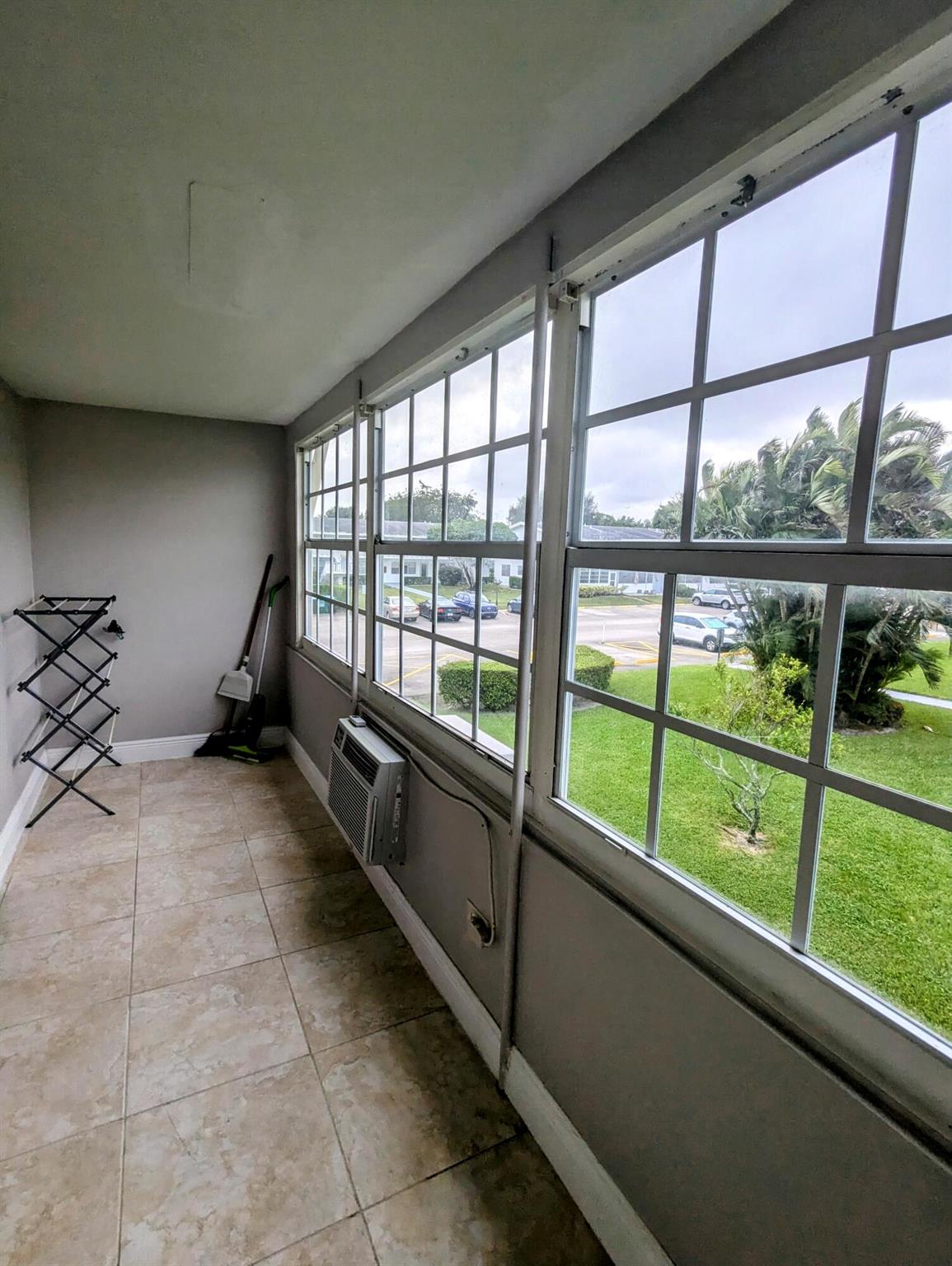 2nd Floor with a Lift! FURNISHED OR UNFURNISHED. Gorgeous, Renovated 1 Bedroom with Impact Windows, Open Kitchen, Crown Molding and Tile Floors throughout. Renovated Tiled Bathroom. Furniture is High Quality and like new. (3 years,seasonal use). The enclosed Balcony offers additional living space with a new AC unit. This is a Friendly Community, conveniently located near the Somerset Pool, and short distance to either entrance Gate and the Clubhouse. Century Village is a 55+ Gated Community with pools, tennis, pickleball, shuffleboard, clubs to join, as well as a Theater with Entertainment. Courtesy transportation to local shops also provided. Come live your best life! Located close to shops, restaurants, beaches & PBI Airport minutes away.