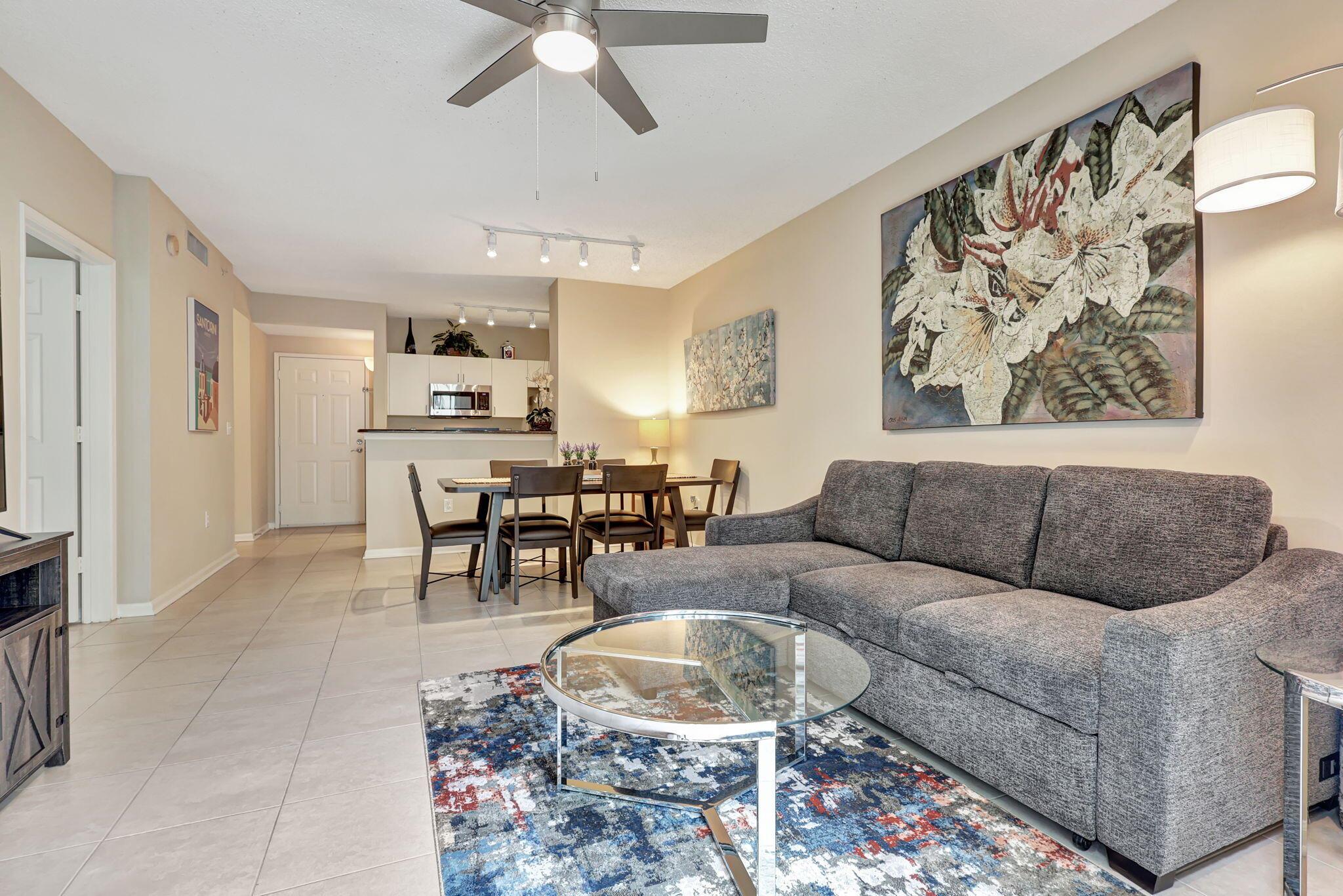 Available seasonally or annually. Seaonally ($3,200) Annually ($2,800). Welcome to urban sophistication in the heart of Downtown West Palm Beach at City Place. This fully furnished, turnkey one-bedroom, one-bathroom oasis offers the ideal blend of comfort and convenience. Located just 1.5 miles from the pristine beaches on Palm Beach. Enjoy the convenience to City Place from the covered pathway and all conveniences, including renowned cultural venues like the Kravis Center, eclectic dining experiences, shopping grocers and the Convention Center and Circuit transportation to Palm Beach and most local attractions and in close proximity to Brightline trains.Inside, the apartment boasts a modern aesthetic with carefully curated furnishings and decor, ensuring a stylish yet cozy atmosphere.