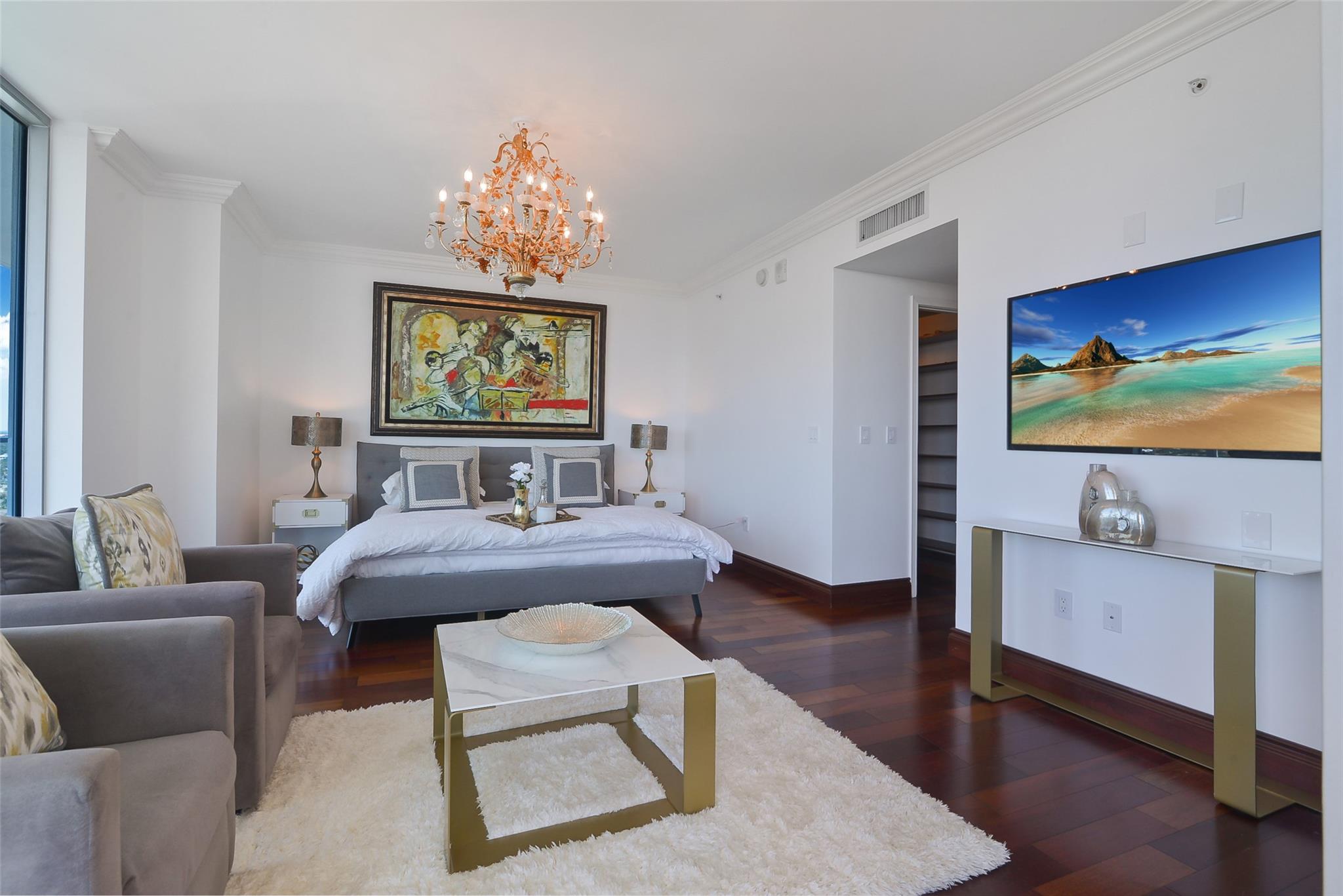 BEST IN CLASS SEASONAL RENTAL FULLY FURNISHED. ENJOY OCEAN AND INTRACOASTAL VIEWS IN THIS THREE-BEDROOM THREE-BATH LUXURY CONDO BOASTING MARBLE AND WOOD FLOORS THROUGHOUT. TASTEFULLY DESIGNED. GOURMET KITCHEN FULLY STOCKED WITH CUTLERY, POTS, PANS AND ALL OF YOUR NEEDS. PRIMARY SUITE FEATURES KING SIZE BED WITH BEAUTIFUL BRAZILIAN HARDWOOD FLOORS. MARBLE PRIMARY BATHROOM HAS JACUZZI TUB & OVERSIZED SHOWER. BEDROOM 2 HAS AN ENSUITE BATHROOM AND ACCESS TO THE WEST BALCONY. THE DEN ,WHICH IS BED 3, HAS PULLOUT COUCH, BLACKOUT SHADES, ACCESS TO BATHROOM W/SHOWER. HAVE IT ALL FOR A WONDERFUL WINTER VACATION OR YEARLY RENTAL.