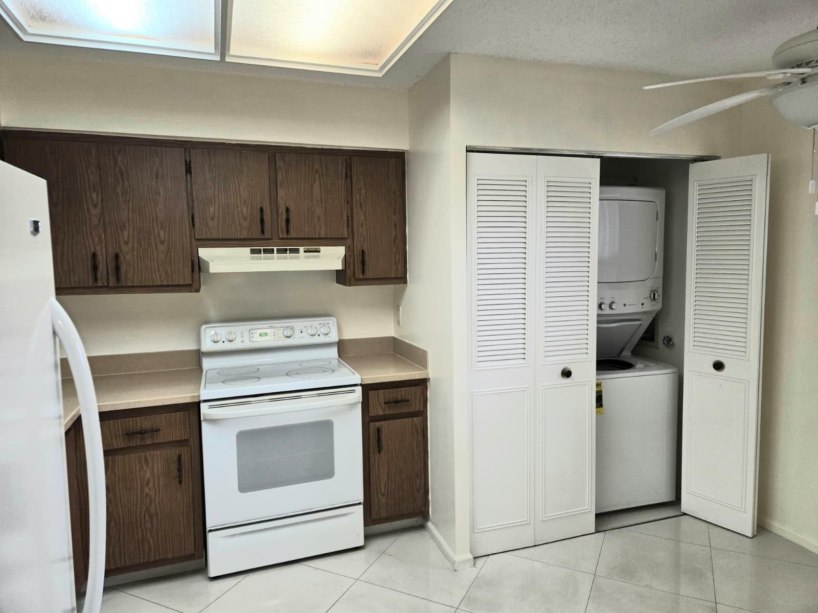 Retire in style in this TOP FLOOR, light and bright CORNER unit with PORCELAIN tile throughout, updated bathrooms, and large balcony overlooking garden with trees for privacy and lake in the distance. Use your own WASHER/DRYER IN your condo! Right next to the clubhouse with large party room, beautiful pool, spa and workout equipment. Remodeled Publix right next door in walking distance! Pompano Beach is a straight shot across Atlantic Blvd. to the east about 10 miles. Coral Square Mall is a short drive away. Association allows two small pets! 1 assigned parking spot with PLENTY of guest parking. Friendly community with clubs and activities.