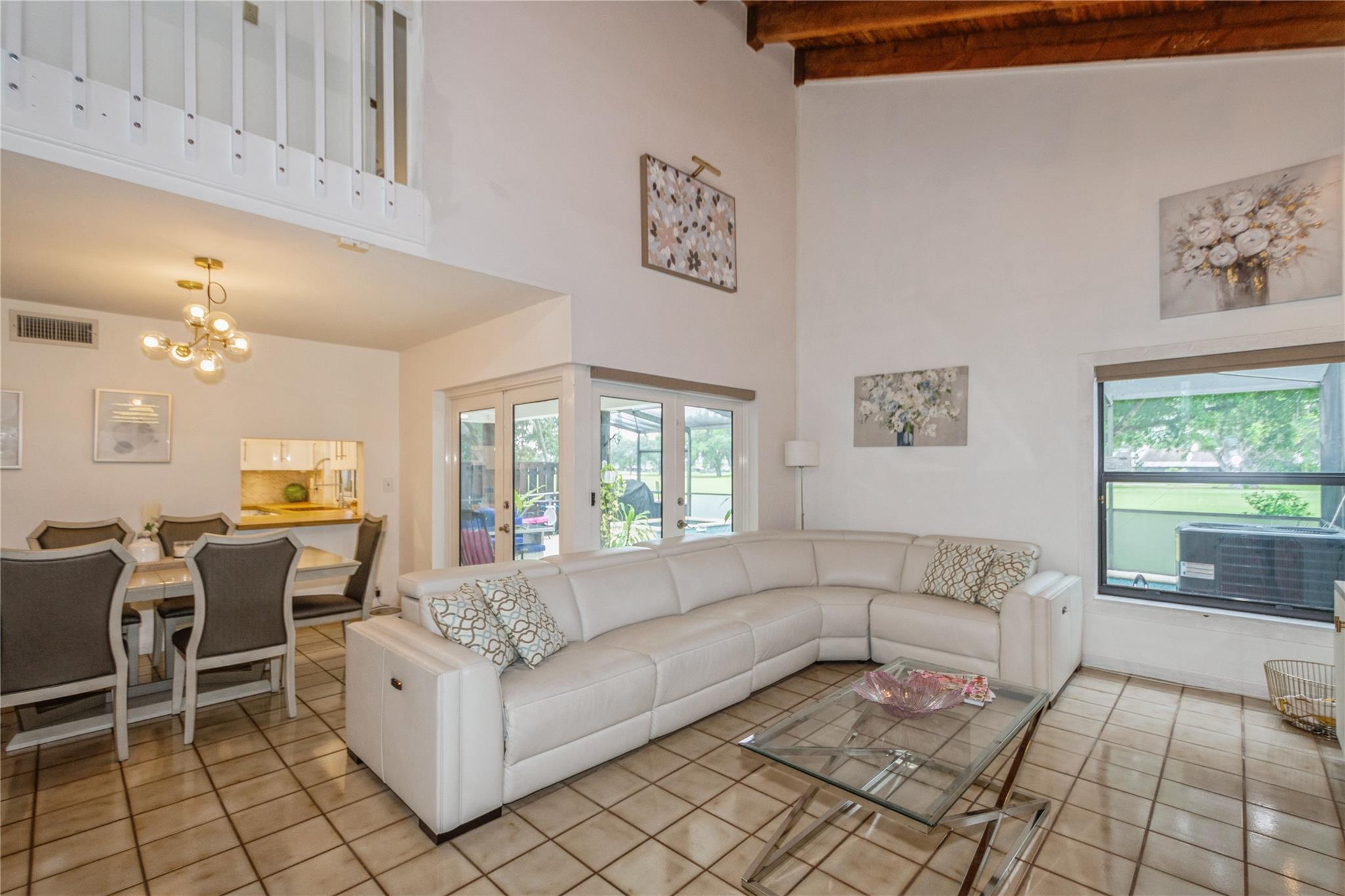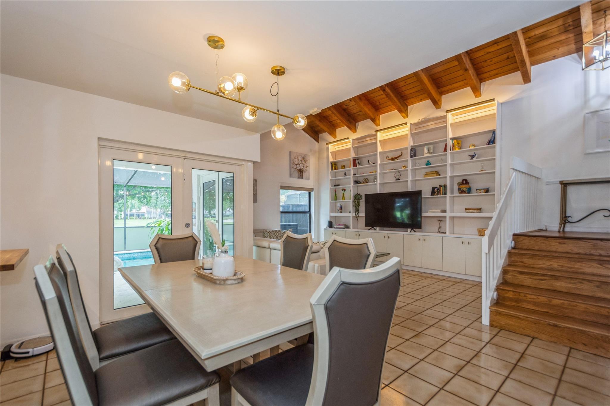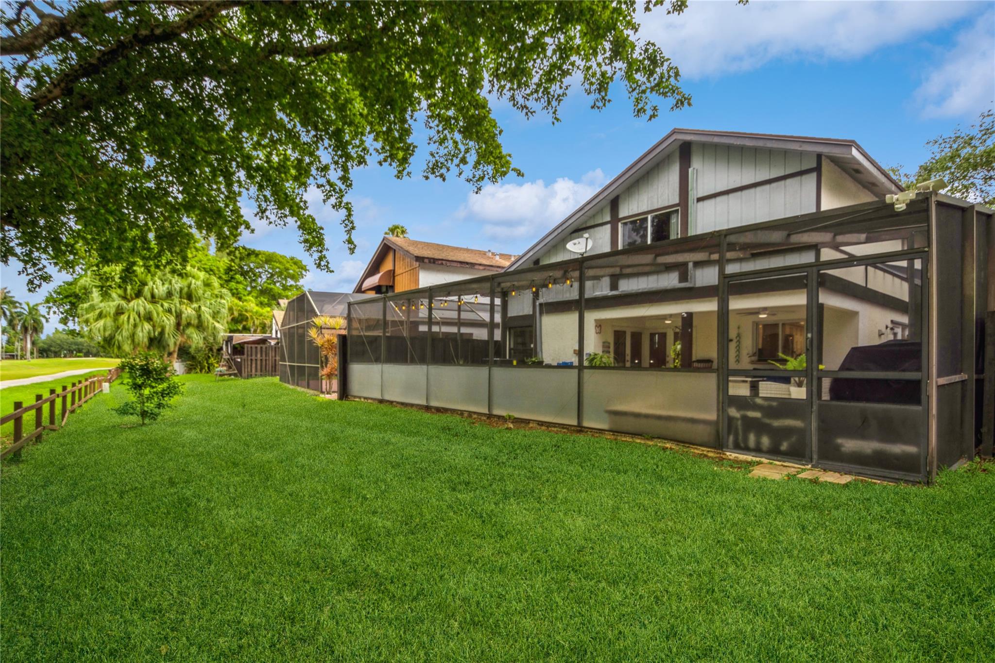 This beautiful pool home with breathtaking golf course views is now offered for rent as well as for sale. 3-bedroom, 2-1/2 baths, single family, 2-story home. Screened patio with heated, saltwater pool. New roof in June 2025. Impact glass windows and doors. 2024 air conditioner. 2024 washer and dryer. Spacious, updated kitchen with butcher block counters and stainless-steel appliances. Soaring, cedar beam ceiling adds rustic charm. A downstairs bonus room can be an office, den, or guest room. All bedrooms and the laundry are upstairs. Tenant pays for pool and lawn service in addition to rent.