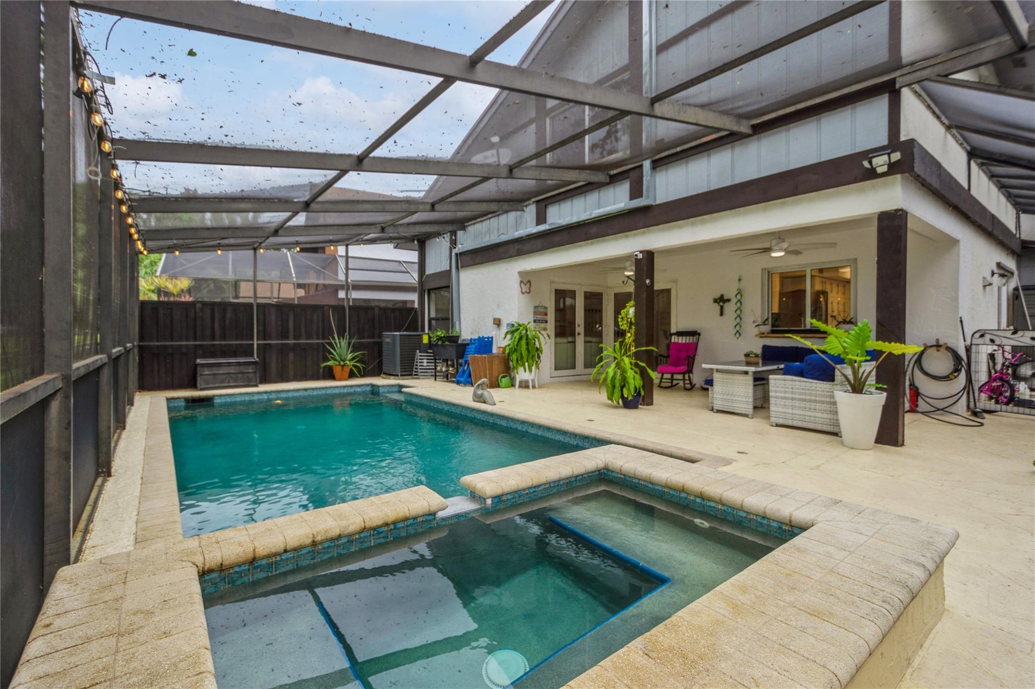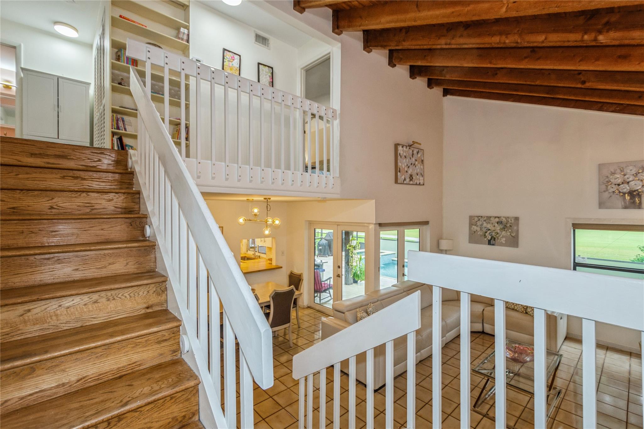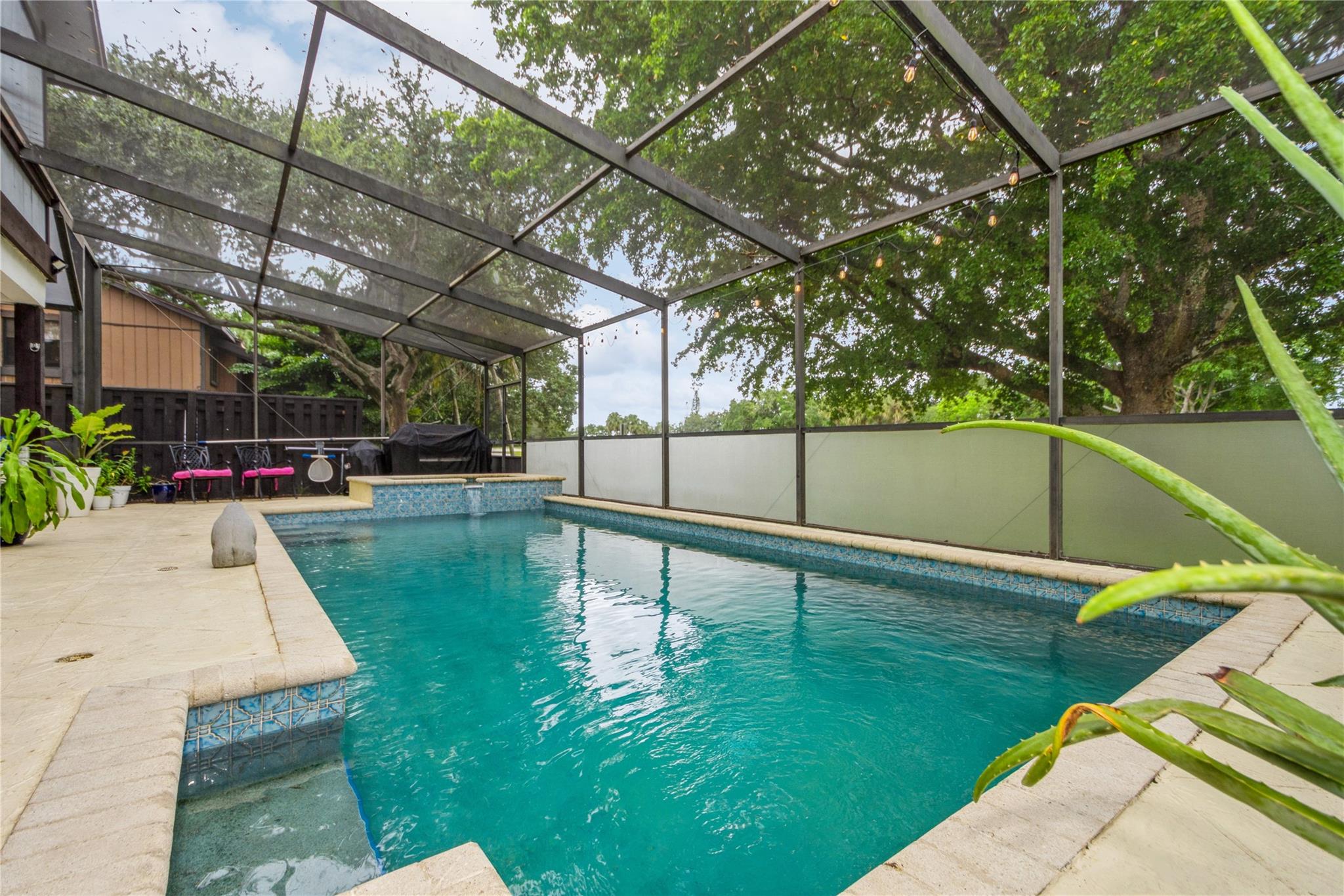 This beautiful pool home with breathtaking golf course views is now offered for rent as well as for sale. 3-bedroom, 2-1/2 baths, single family, 2-story home. Screened patio with heated, saltwater pool. New roof in June 2025. Impact glass windows and doors. 2024 air conditioner. 2024 washer and dryer. Spacious, updated kitchen with butcher block counters and stainless-steel appliances. Soaring, cedar beam ceiling adds rustic charm. A downstairs bonus room can be an office, den, or guest room. All bedrooms and the laundry are upstairs. Tenant pays for pool and lawn service in addition to rent.