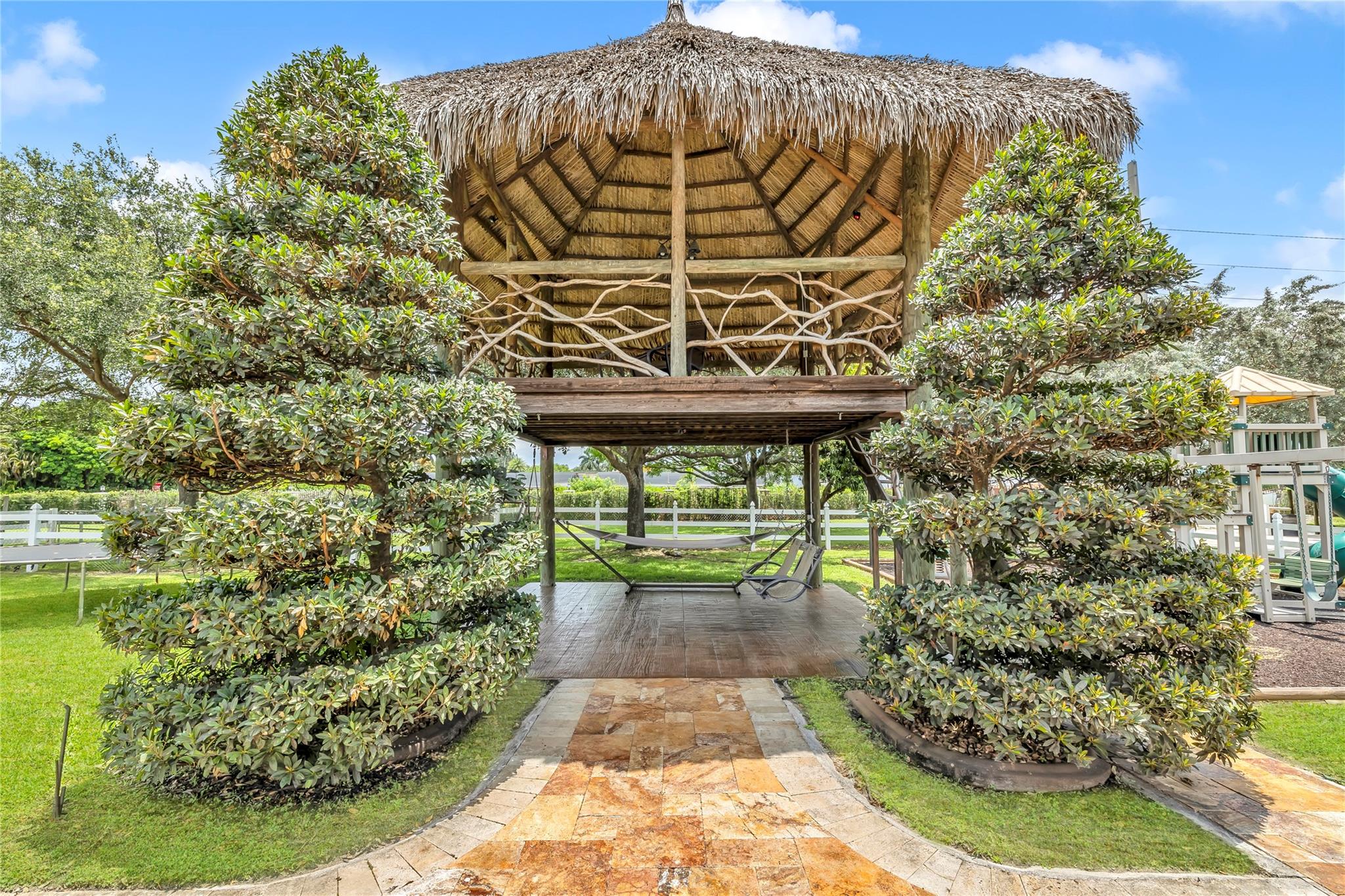 Welcome to this ultra-luxury estate in prestigious Southwest Ranches For Rent or For Sale, set on 2.03 meticulously maintained acres. Fully renovated, this exceptional property is a true masterpiece. The estate includes 8 horse stables & a separate 4,000 sqft garage featuring a private upstairs office with A/C, ideal for conversion into a guest house and another 1,000 sqft garage/storage area. The main residence spans 4,000 sq ft under air and showcases 5 bedrooms, 4 bathrooms, impact windows, a redesigned private gated driveway, and a laundry/utility/mudroom for added functionality. Step outside to your private resort-style oasis, complete with a large pool, Brazilian teak wood ceilings, a summer kitchen, a pool house, and a stunning two story tiki hut with electric and lighting.