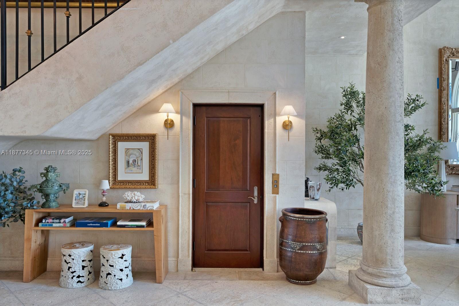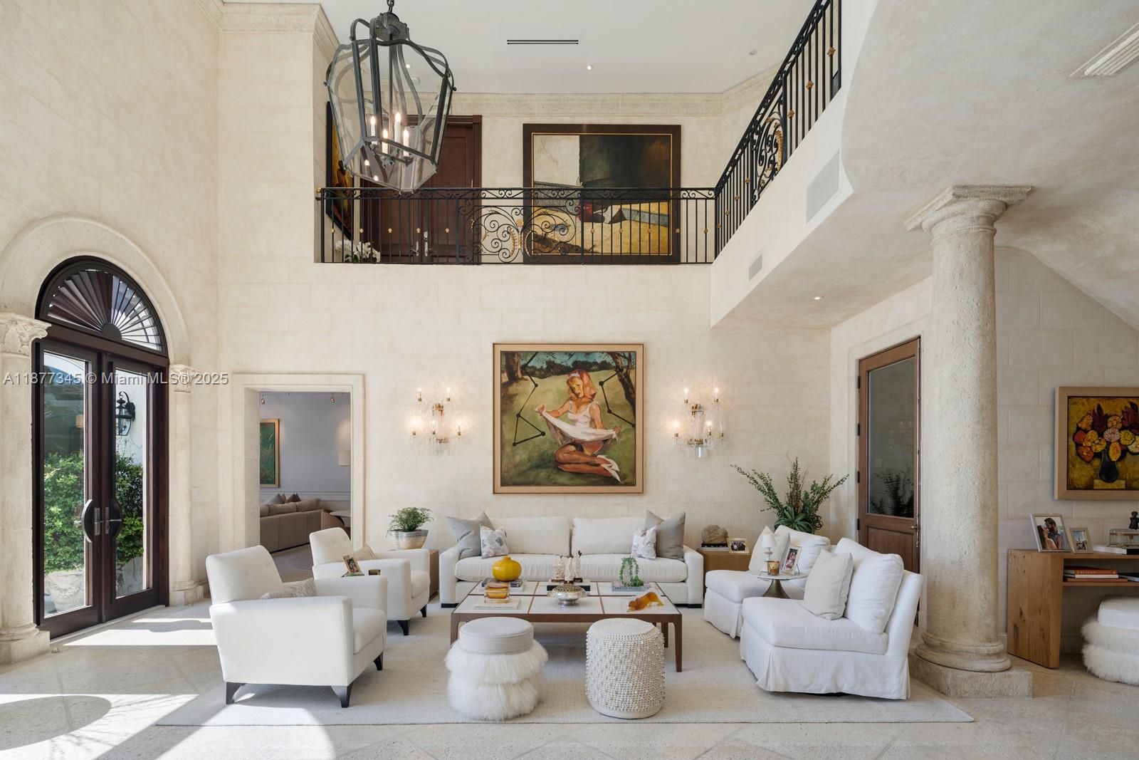 Step Inside With Me! This Mediterranean Revival showcases enchanting interiors, exceptional craftsmanship, and open bay views. The Main House underwent a 2025 renovation featuring double-height ceilings in social areas, sun-drenched living spaces with arched windows, a TV lounge, custom bar, wine cellar, elevator & private office. The contemporary kitchen offers custom millwork, generous island & a breakfast nook. The primary wing exudes elegance with dual dressing rooms, a spa-like bath and panoramic views. A stunning pool + spa, dual cabanas, grill, dock and 115' of water complete the outdoors. A separate ivy-draped guest house and idyllic courtyard entrance set the tone for timeless character with modern comfort. Set on over 17,500 SF of land with gated private driveway & ample carport.