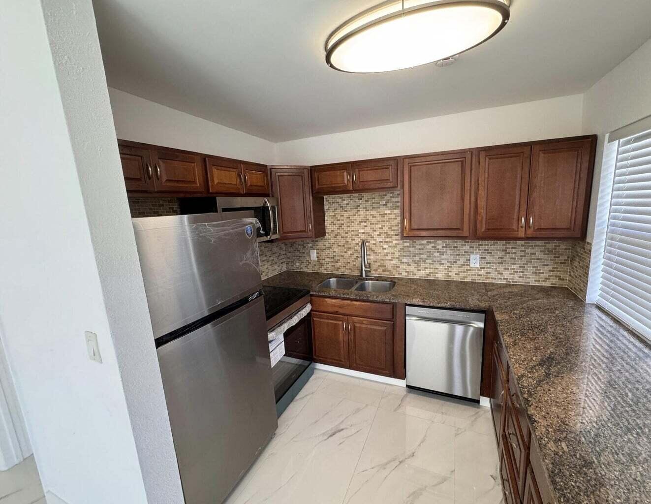 Beautiful totally Renovated 3 bedrooms 2 bathrooms single family house in a quiet, quality neighborhood Perfect for a family! New roof. Carport. Large backyard. ''Mobile home'' in the back used as a large shed. Great location!! close to schools, dining and shopping! New grass in front, new appliances, new washer and dryer.