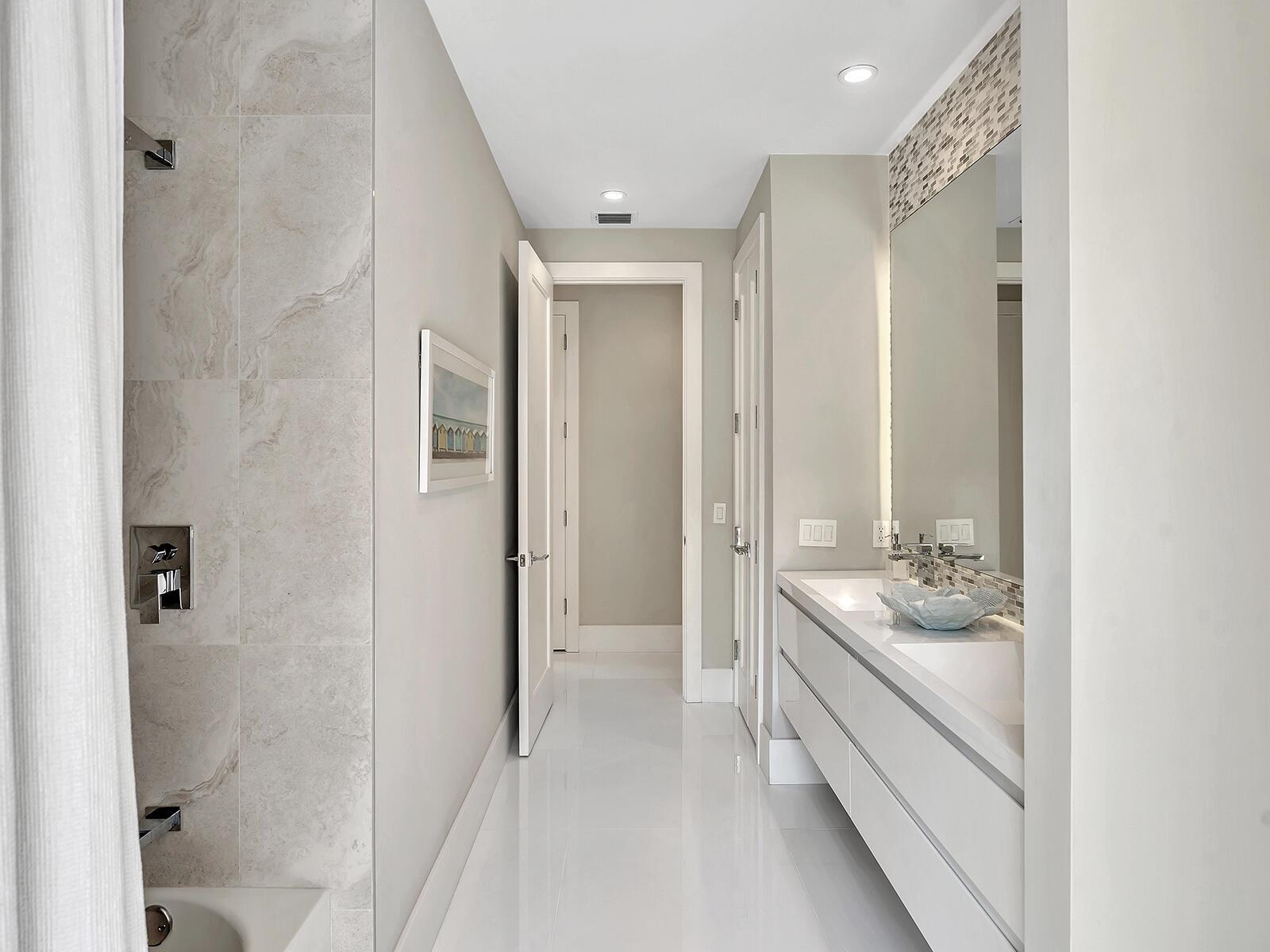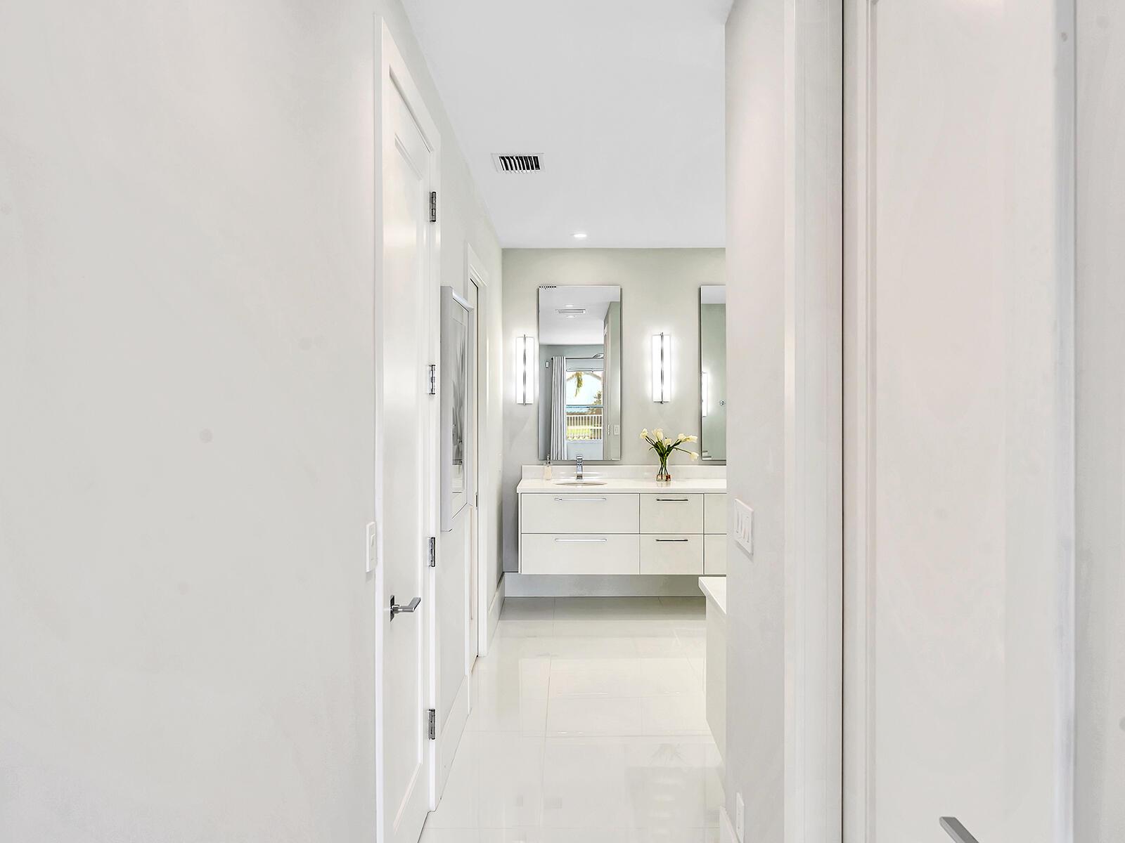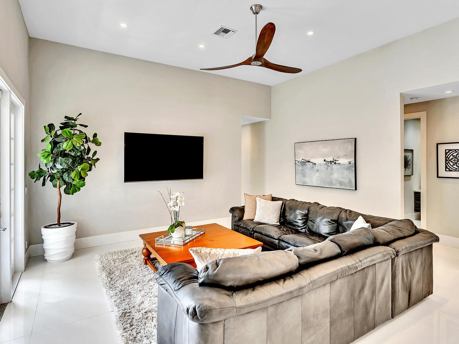 This stunning contemporary 4-bedroom home is located in the highly desirable Andover community. Set among palm trees and live oaks, the 2,754 sq ft residence offers serene lake views, a spacious screened lanai, and an open sports pool. The open-concept design, with soaring ceilings and oversized white glass tile floors, is ideal for entertaining. The custom gourmet kitchen features a 14-foot white quartz island and top-of-the-line stainless steel Jenn-Air appliances, including an induction cooktop and a wine fridge. The master suite boasts a luxurious spa-like ensuite, complete with a large soaking tub and a walk-in shower for ultimate relaxation. Andover is a charming, family-friendly gated community, located just minutes from downtown Delray Beach, residents enjoy convenient access