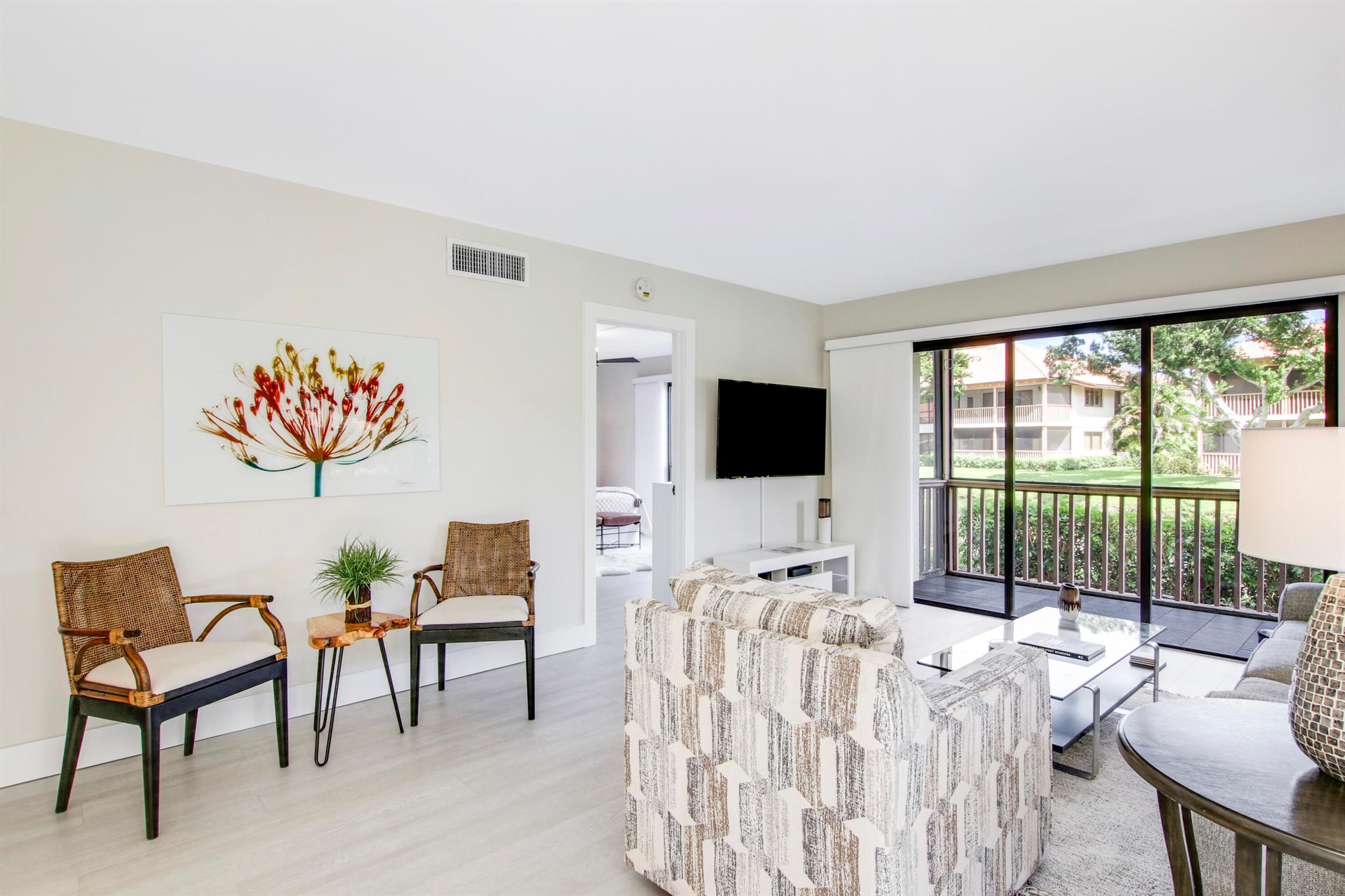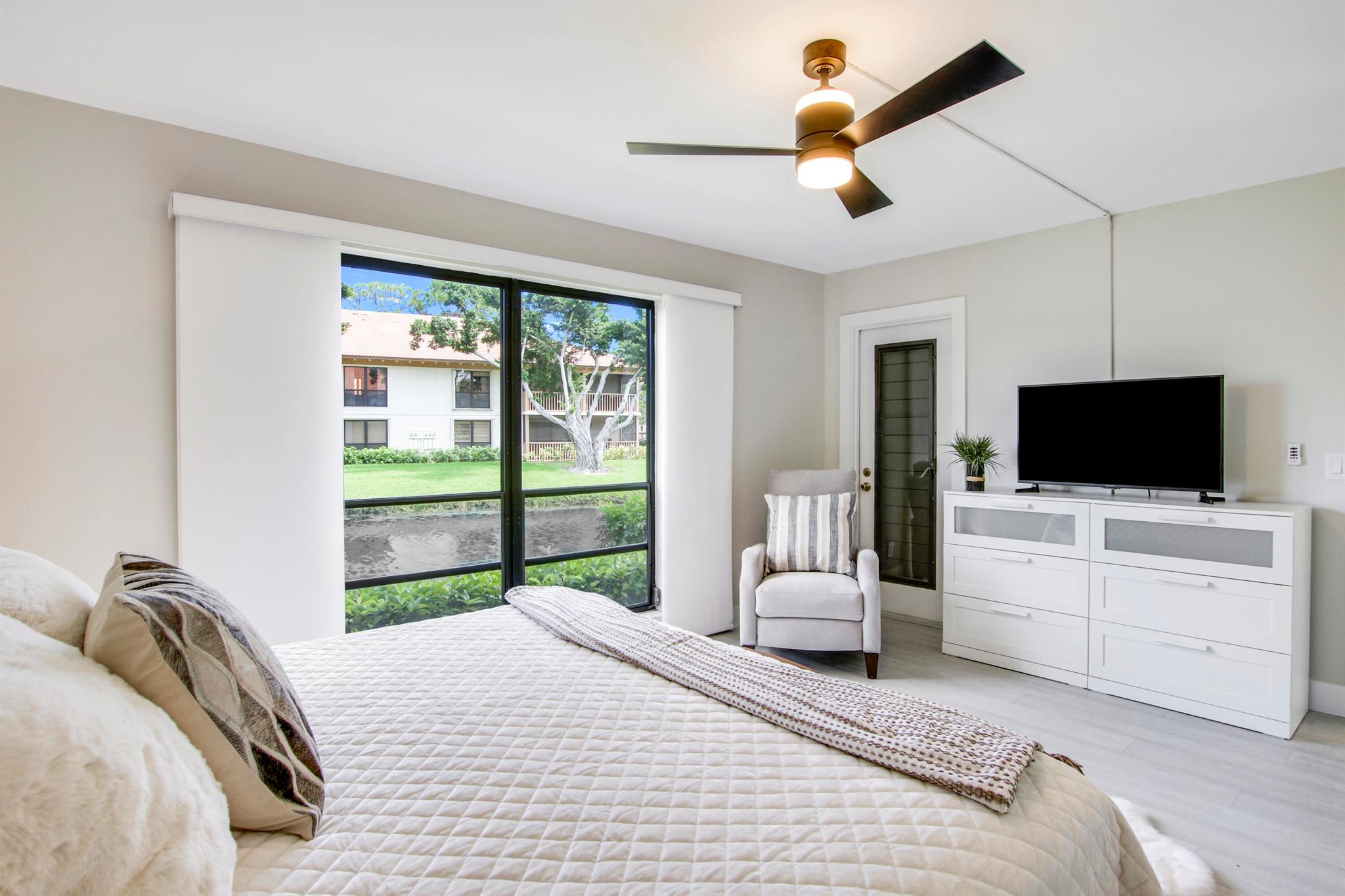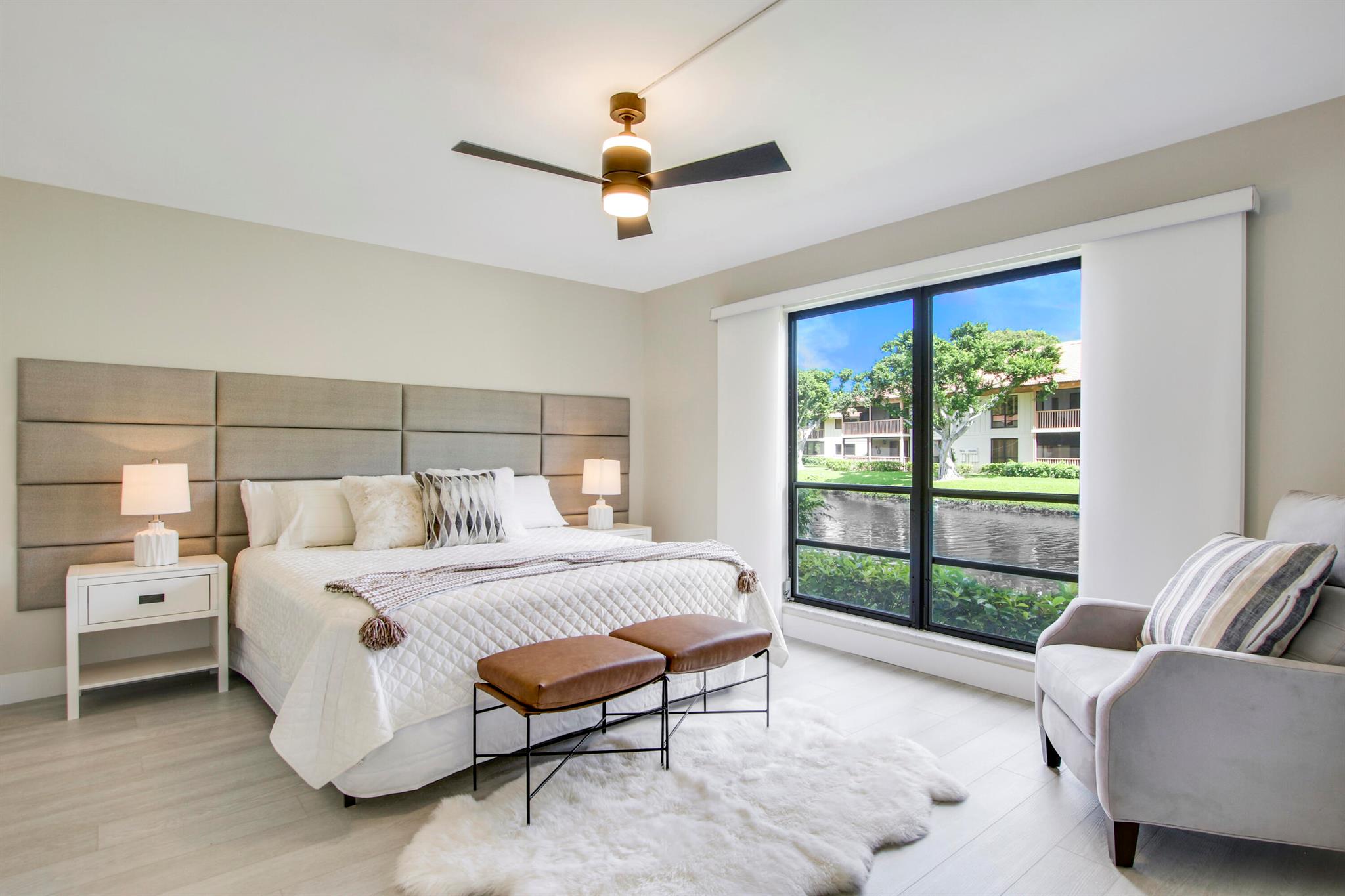 Available select weeks in December & January. Available March 2026. Rented in February 2026. Great care has been taken in ensuring that this beautiful condo is prepared for your ultimate comfort and enjoyment. Step into luxury wood-look flooring throughout. Stunning new quartz kitchen countertops with a stainless steel sink and faucet. The unit is elegantly decorated with a modern relaxing style and furnished to sleep 4 with a guest room that can be arranged with two twin beds or a single king sized bed. Sip your morning coffee from the fully screened lanai which overlooks tranquil water. Not available for subletting.