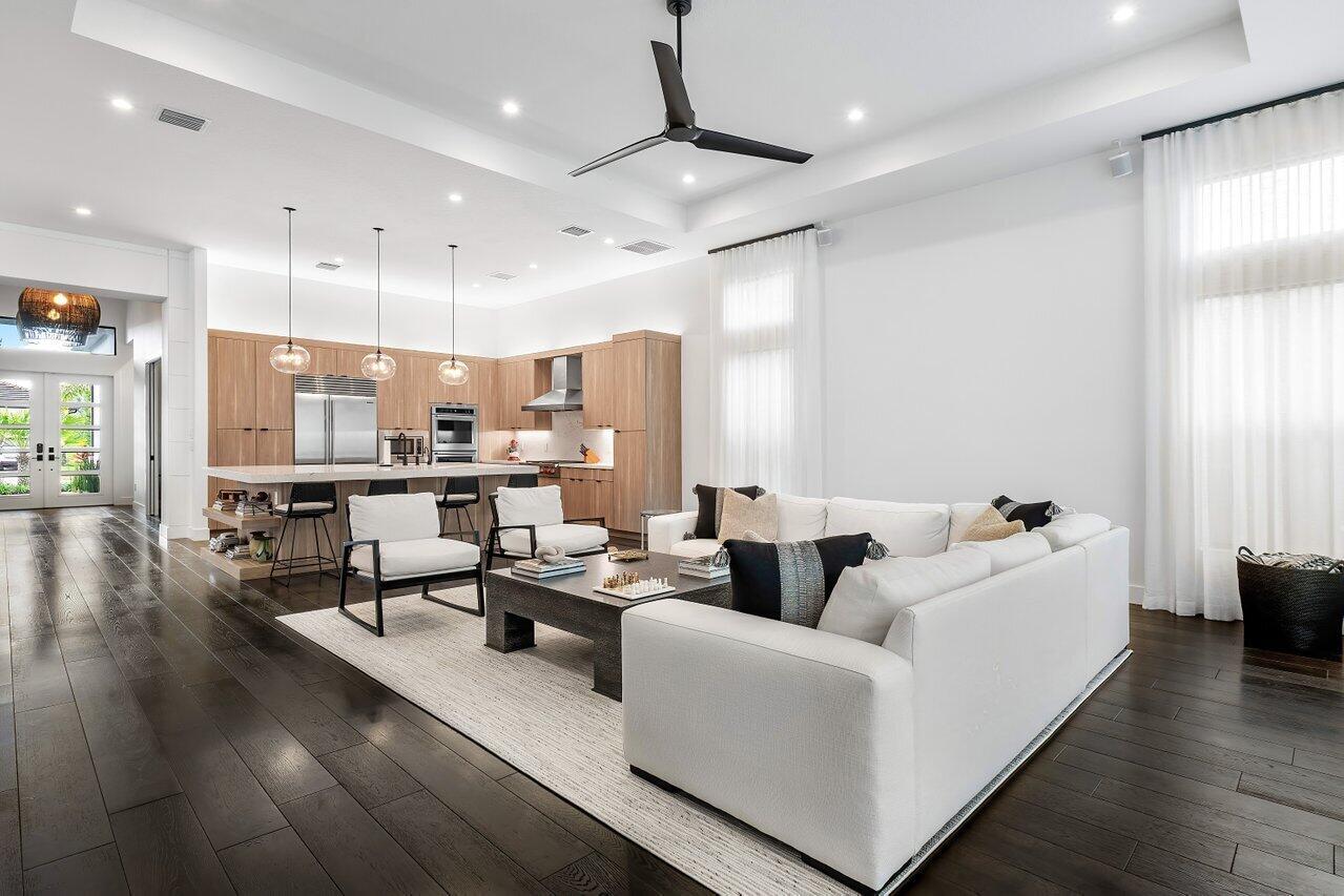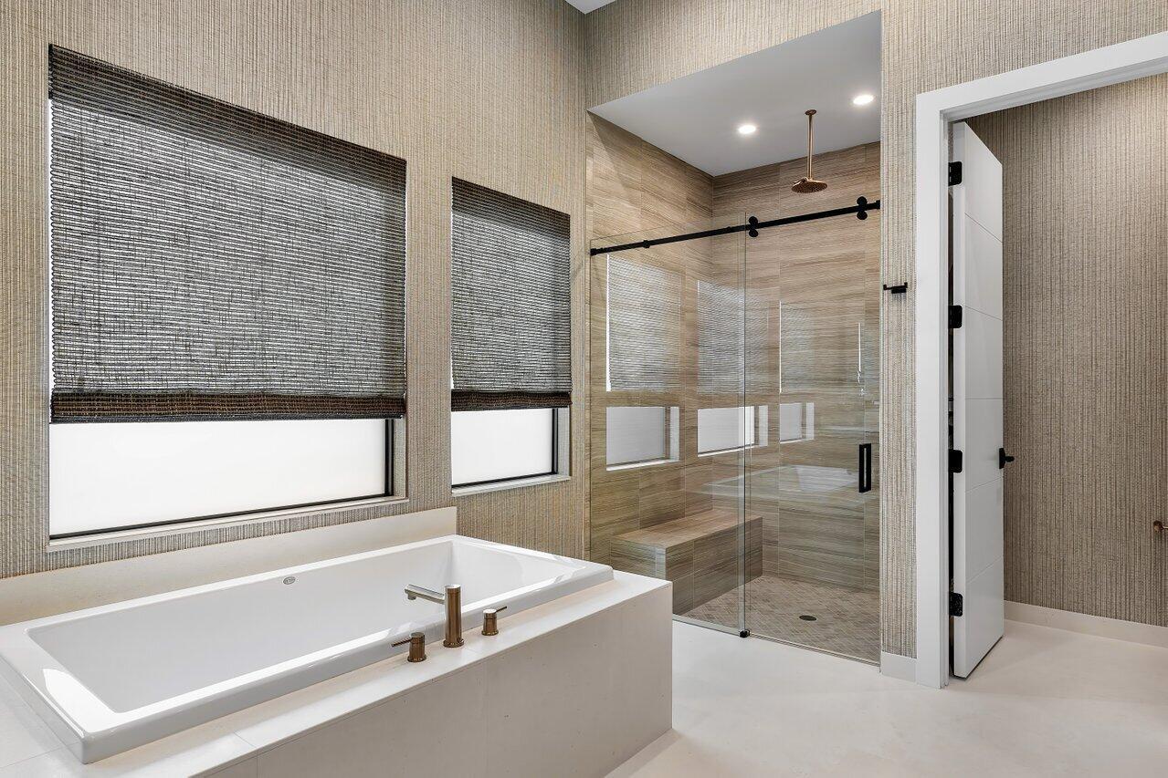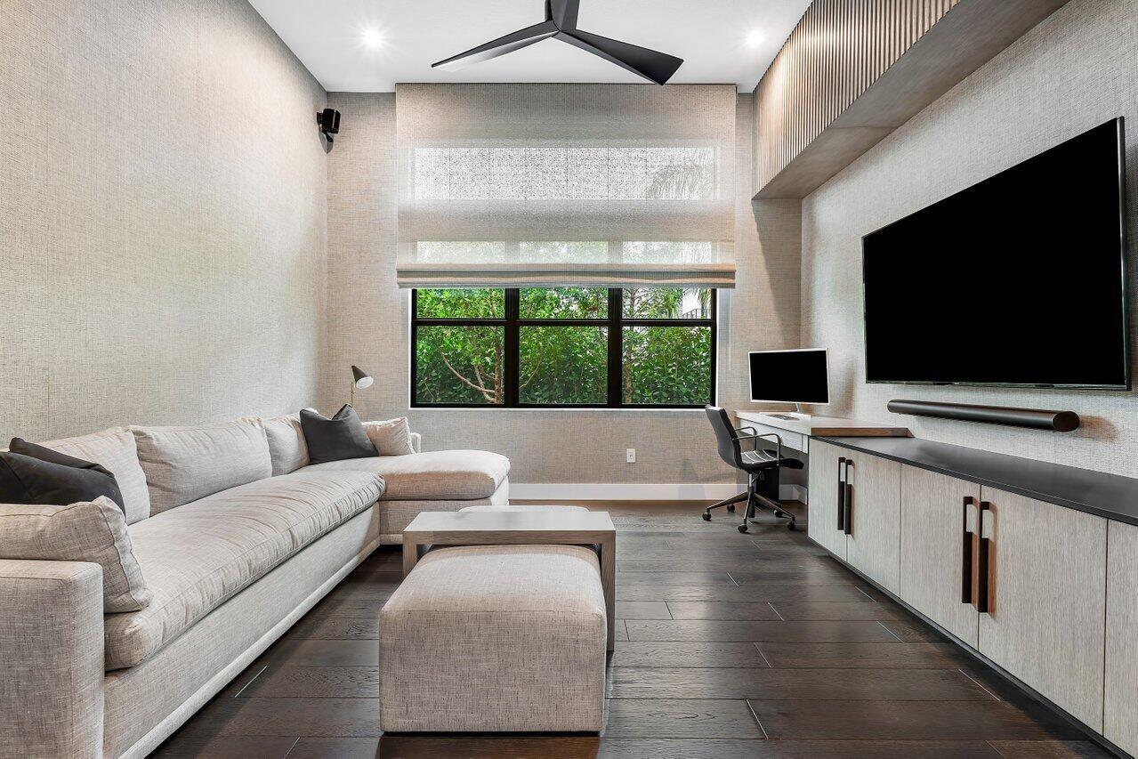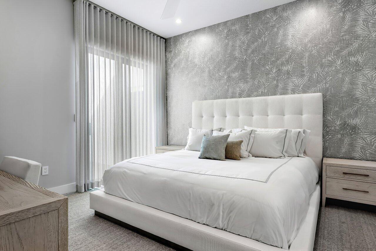 3BR/den home, Clean lines and minimalist design by New York designer Dana Wachs Designs extend outdoors to the impeccable backyard, featuring a heated pool and spa with LED colored lights, a cooling system, and two heating systems (electric & gas); a spacious patio perfect for al fresco dining; and lush grassy areas for recreation and relaxation. For the ultimate retreat, the primary suite boasts a private gym, offering convenience and luxury at your fingertips.Additional upgrades include: a fully finished garage; private gym in the primary suite; all-electric blackout shades; gorgeous draping; and custom closets throughout.