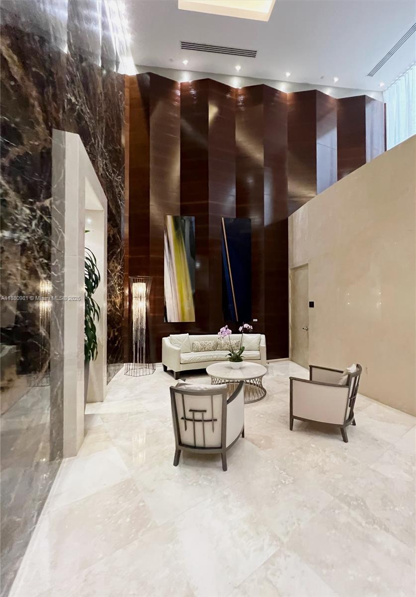 Beautifully furnished 2-Bedroom + Den, 3-Bath residence at Trump Tower III, Sunny Isles Beach. Private elevator opens to a spacious, open layout with floor-to-ceiling windows and stunning ocean and Intracoastal views. Elegant white tile flooring, gourmet kitchen with premium appliances, and high ceilings create a bright, modern atmosphere. Resort-style amenities include oceanfront pool, spa, jacuzzi, gym with ocean views, on-site restaurant, valet, 24/7 concierge, and security. Move-in ready for luxury coastal living.