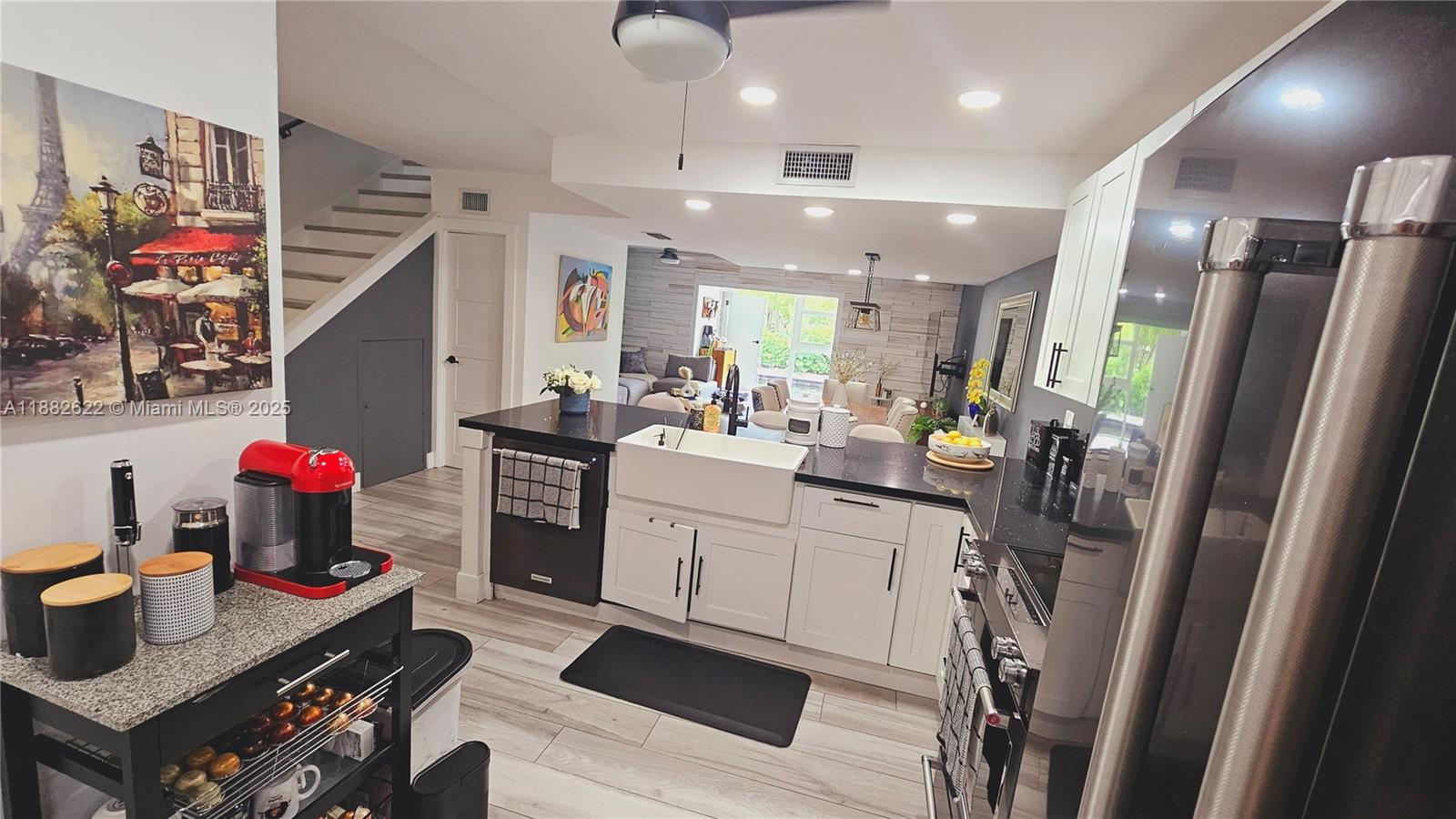 Rare waterfront townhome featuring two primary upstairs bedrooms with en-suite bathrooms and 1/2 bath on main level for guests. COMPLETELY UPDATED!! Updated kitchen, stainless steel appliances, floors completely redone. On the lower level relax on the 115 sq ft covered balcony where you can eat every meal enjoying water views. As an added extra on the upper level you'll enjoy a separate 91 sq ft terrace to view the sunsets. You'll see mega yachts pass by the canal with direct access to the ocean. The home includes a full-size washer/dryer in its laundry/utility room. All windows were upgraded to impact. This home is in Eastern Shores. Ready for move in 11/1/25.