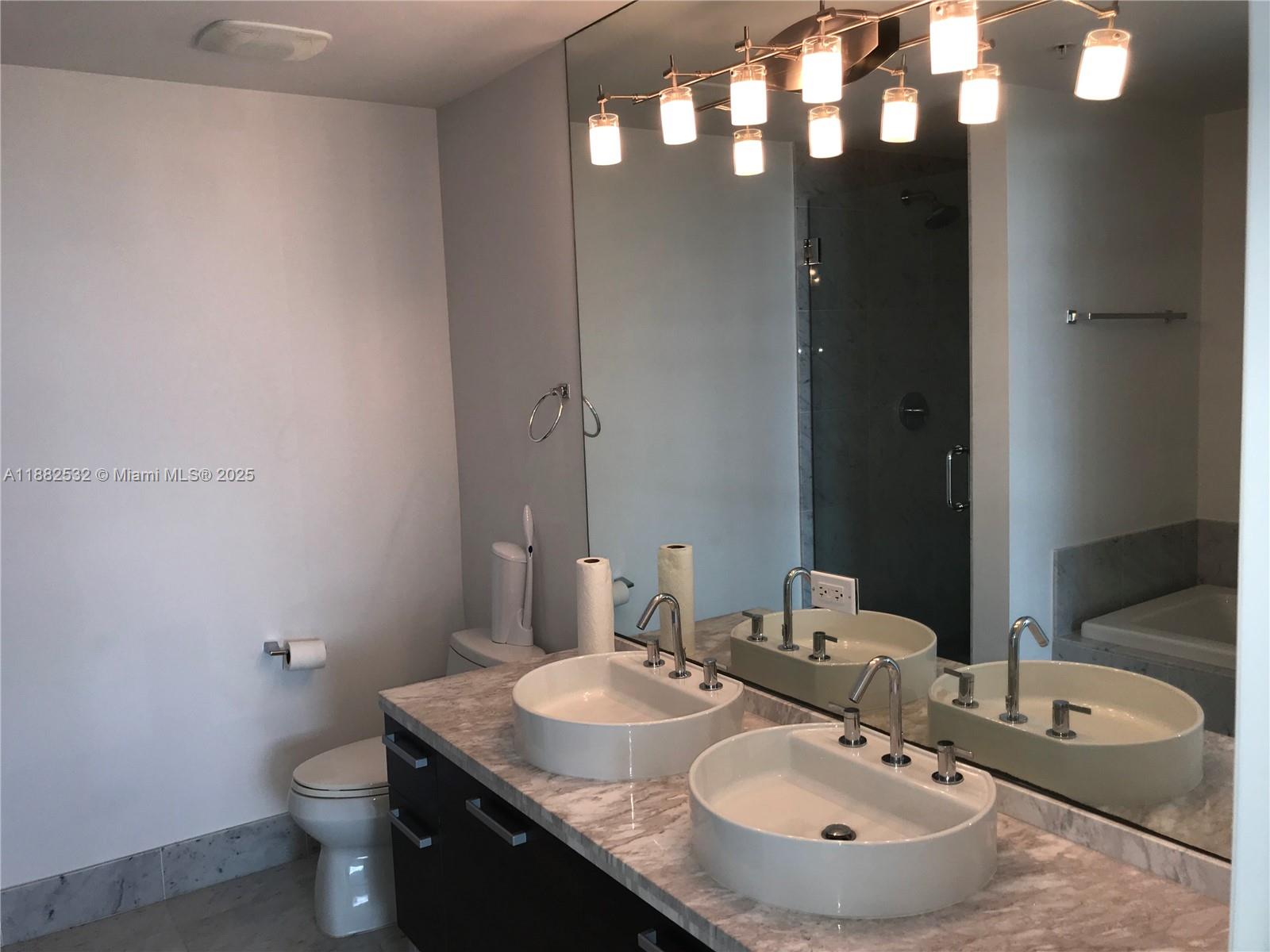 2 bed plus den, 2 full bath unit facing North East with water and city views in Downtown area steps to Kayesa Arena, Bayfront park, Miami Dade College, Courts, metromover, banks, restaurants. Enjoy 4 swimming pools, SPA, state of the art gym, 1 assigned parking space. Unit with many upgrades california closets, rollup screens, Italian kitchen, stainless steel appliances. The building are making repairs in 3 of the 4 swimming pools and exterior stucco. Tenants needs to have more than 650 credit report, not eviction and show income with the last 3 pay stubs. Annual rent only.