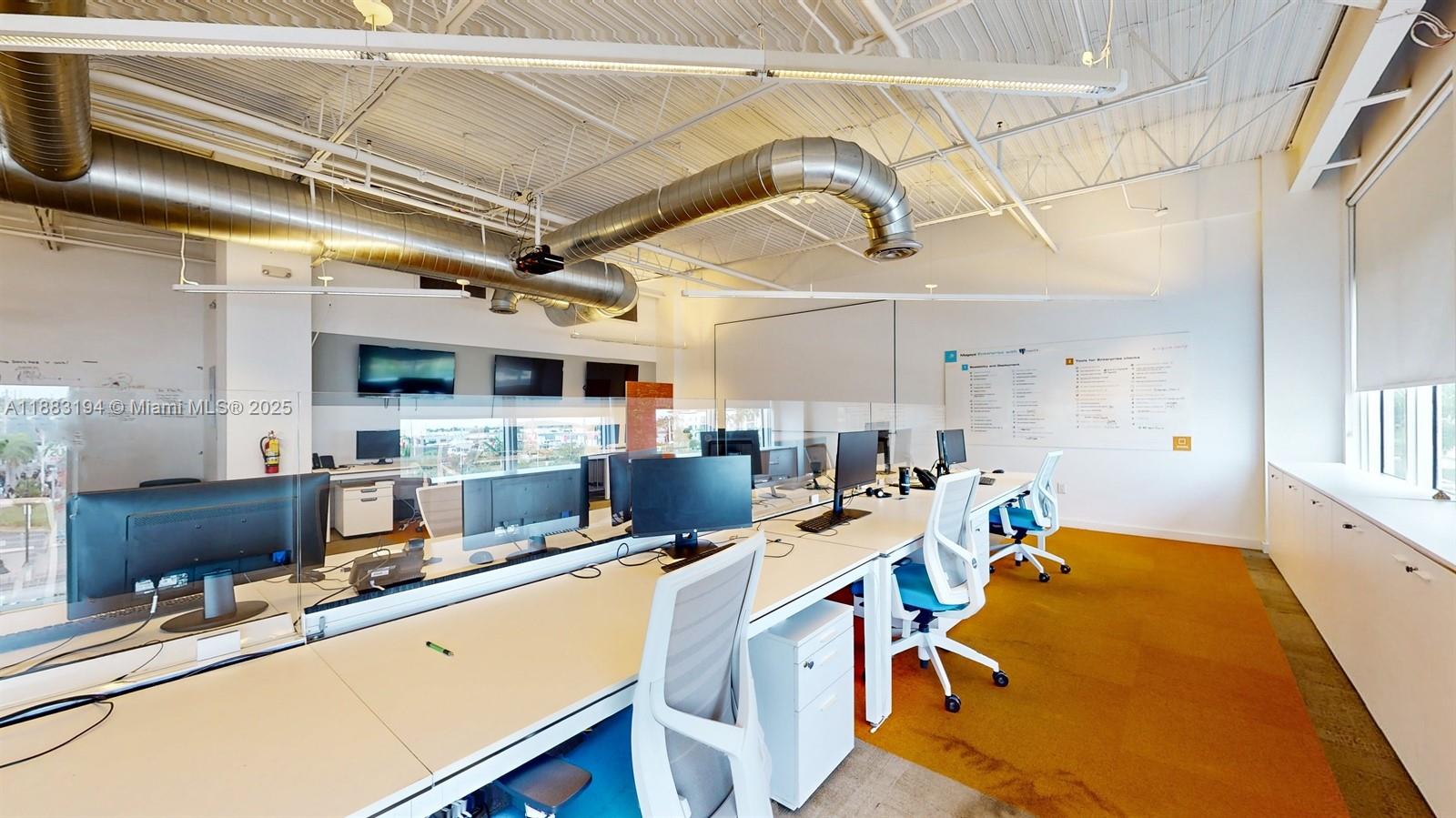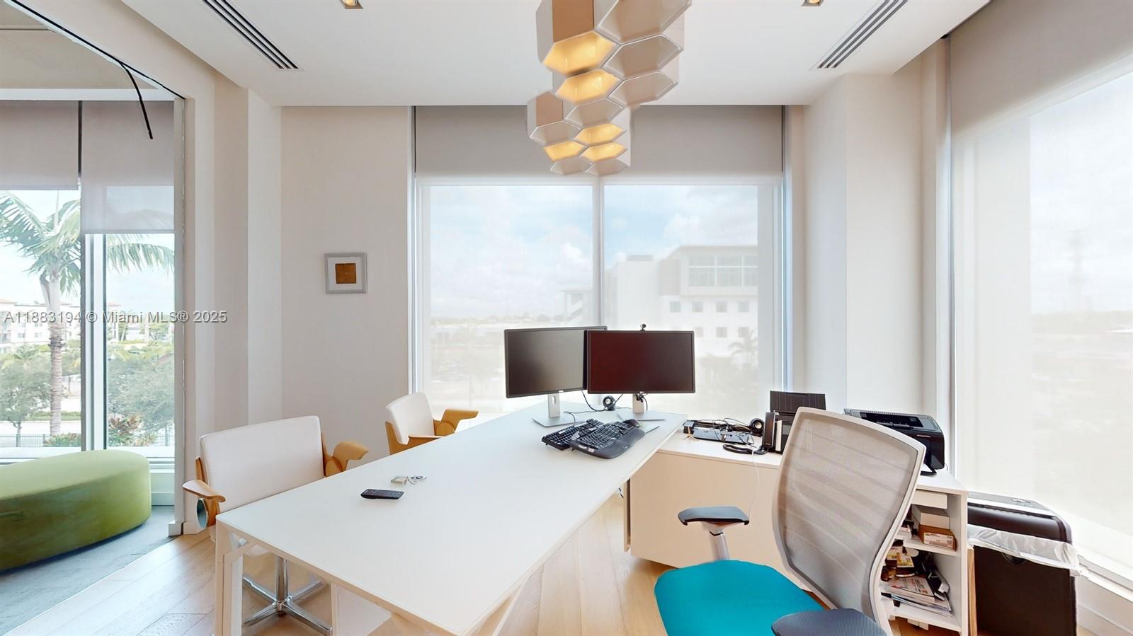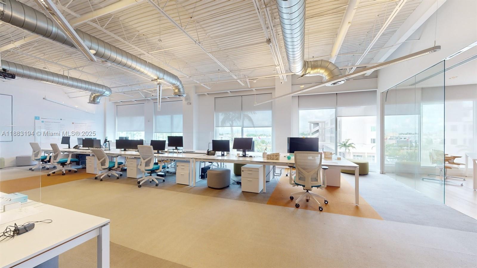 Elegant office with floor-to-ceiling glass windows modern look. 2,163 SQ FT under A/C with desk and chairs. High ceilings with a majestic look and a lot of natural lighting. Great location, located in the heart of Downtown Doral, is near multiple restaurants, shops, and the Palmetto Expressway. The building offers a large free parking lot for all visitors and employees.