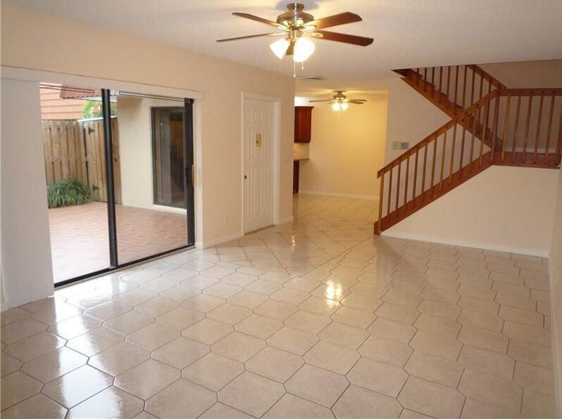 Beautifully updated courtyard-style townhouse with two bedrooms and two full baths. The bright first floor features sleek ceramic tile and a modernized kitchen with attractive cabinets, granite countertops, and stainless steel appliances. A convenient half bath is also located on this level. Upstairs, you'll find updated laminate flooring throughout, leading to two spacious bedrooms and two fully renovated bathrooms. The master bedroom is a peaceful retreat with a walk-in closet and a private full bath. Your own fenced-in front yard provides a private outdoor space, and an attached storage shed offers extra convenience. Enjoy the community's lush grounds, swimming pool, and dedicated assigned parking. The rent includes basic cable and two parking spots