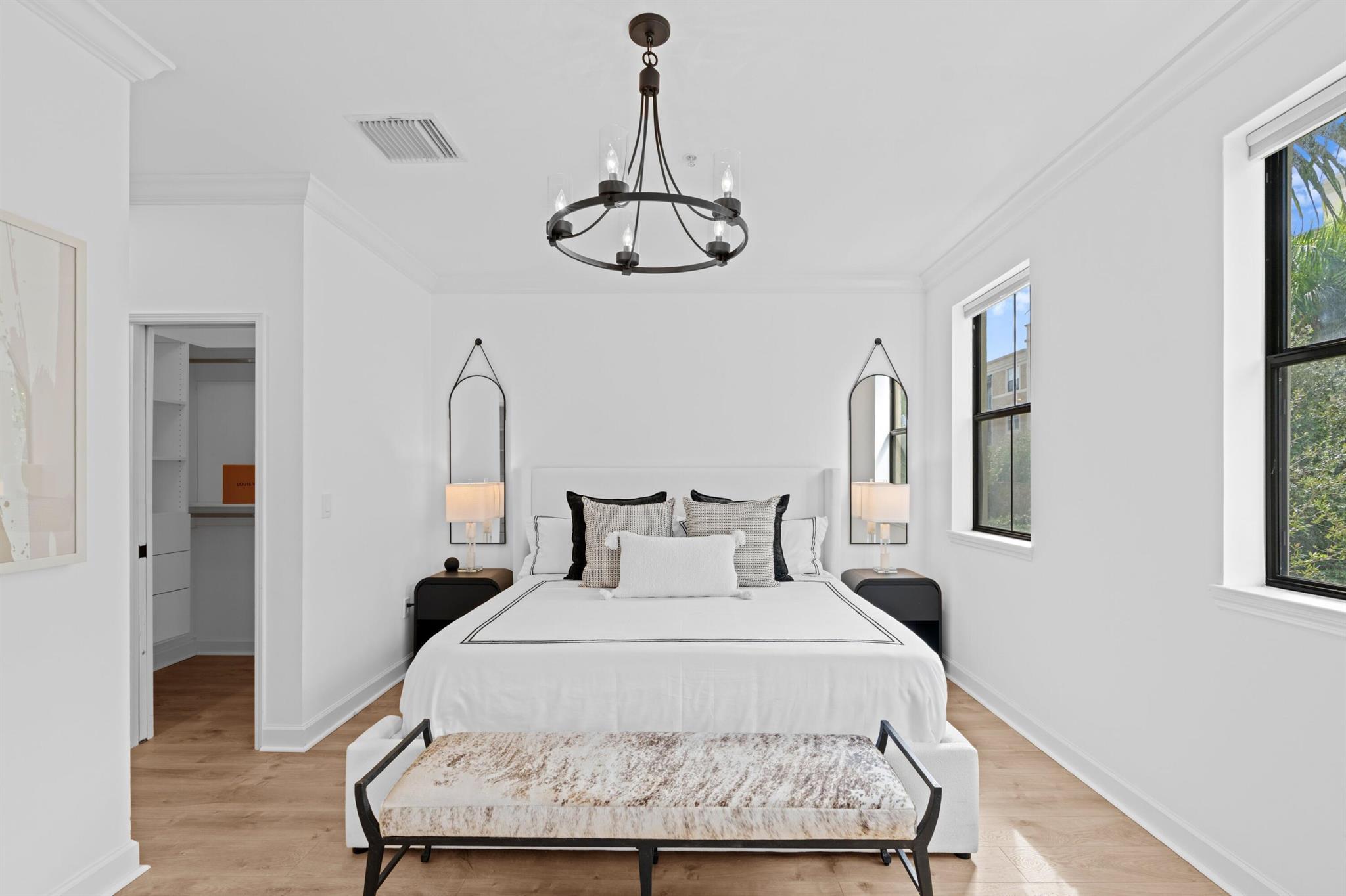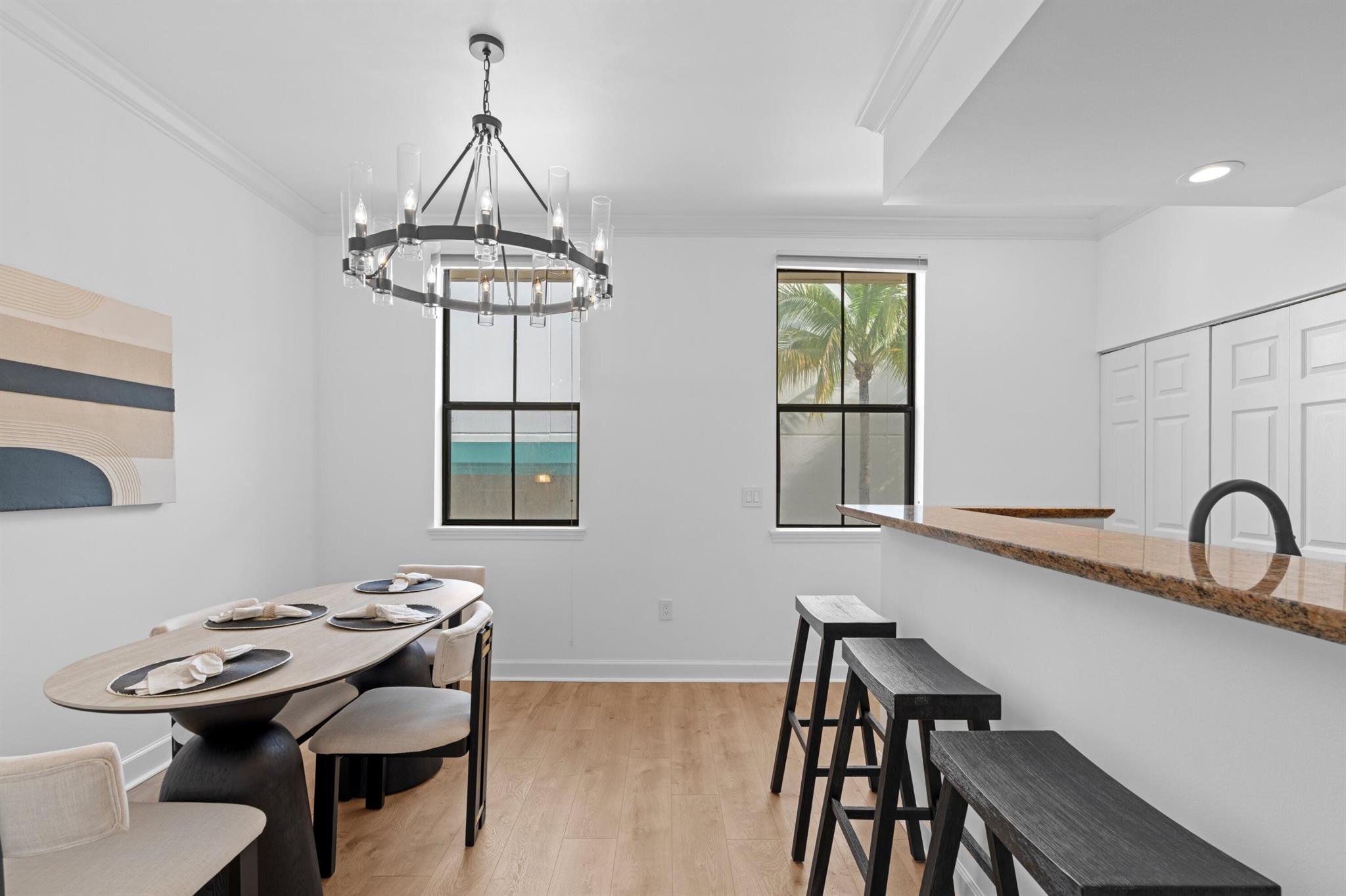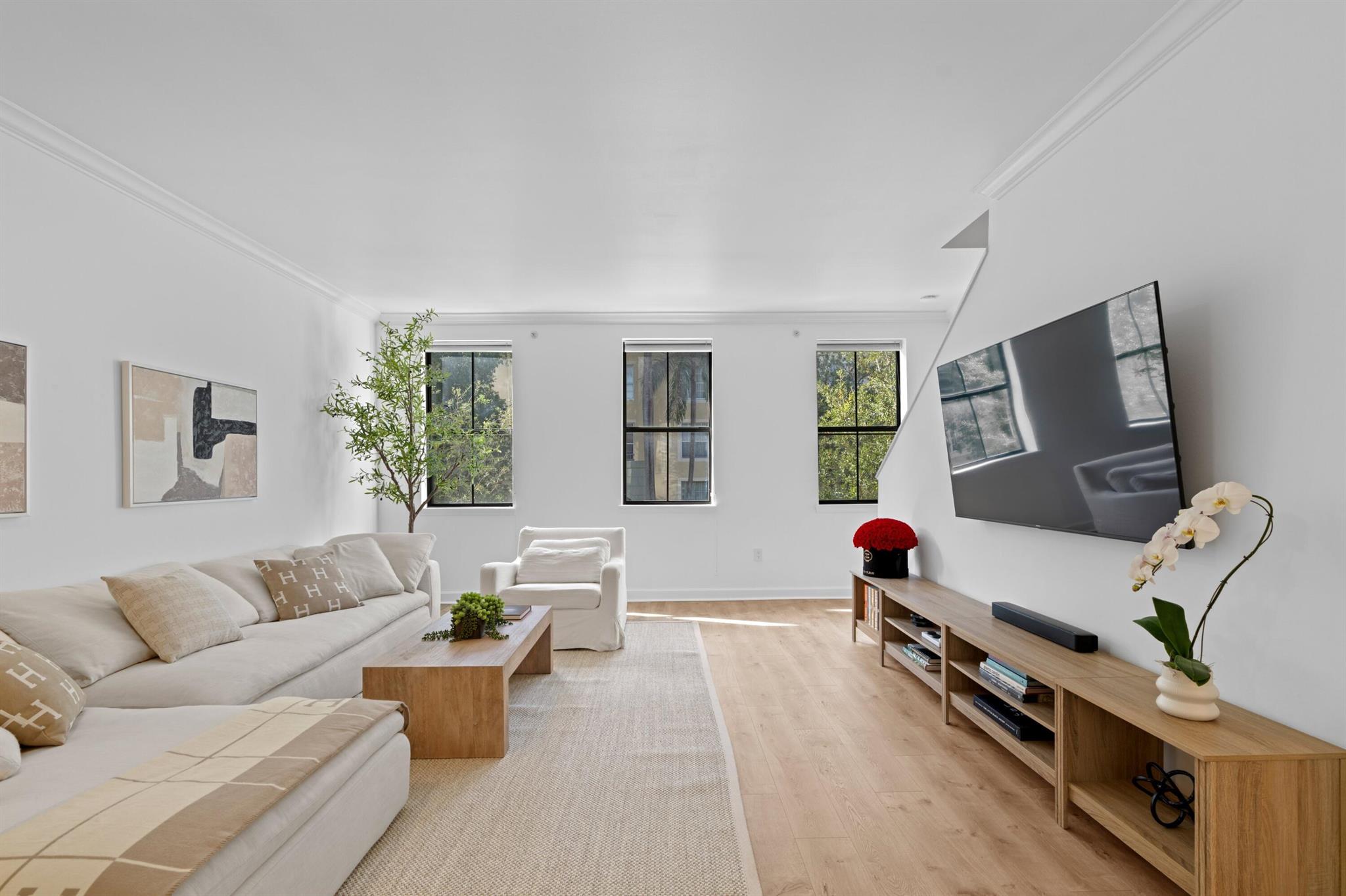 Experience elevated living in this sophisticated, fully furnished 3-bedroom, 2.5-bathroom townhome, impeccably designed with high-end Restoration Hardware furnishings and brand-new appliances. The freshly painted interior highlights white oak engineered hardwood flooring and updated designer light fixtures, creating a warm, modern aesthetic throughout. This bright and airy residence also includes an attached 2-car garage and access to a resort-style pool, all within a gated area for enhanced privacy. Offered as an annual lease, but will give consideration to a six month lease.Perfectly positioned in the heart of CityPlace, you'll be surrounded by world-class dining, upscale shopping, and vibrant entertainment. Enjoy a night out at the Kravis Center for the Performing Arts or hop on