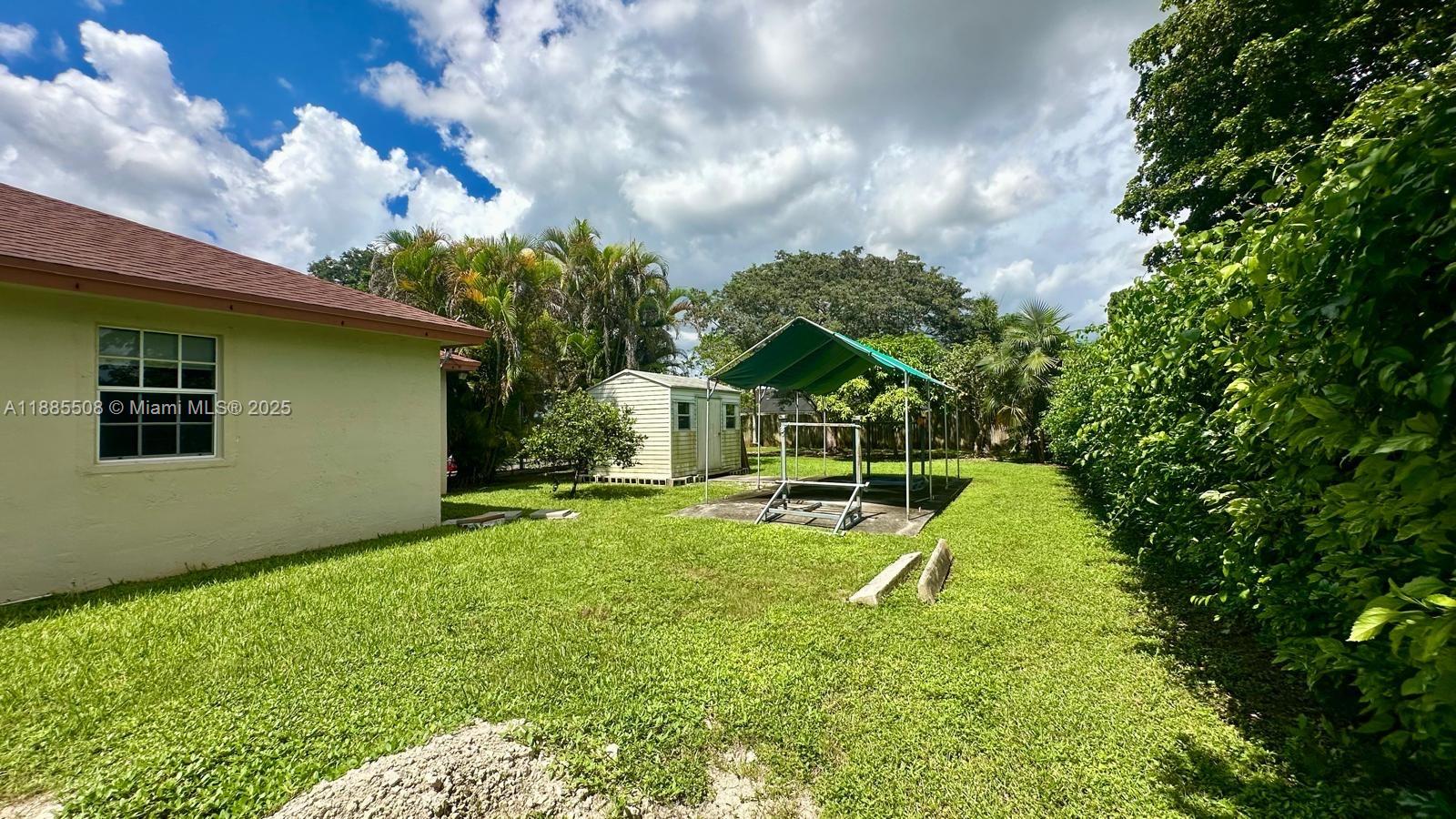 Beautiful home offers 4 bedrooms with custom walk-in closets, 2 bathrooms, 2-car garage, & generator hook up. Volume ceilings & Bahamas shutters adorn the living area. The beautiful screened-in pool remodeled in 2024, new salt system and new Jacuzzi and patio are perfect for entertaining. The brand new kitchen features granite counters, wood cabinets new high end stainless steel appliances including wine cooler. The expansive backyard has mature trees including mango, sugar apple, guava, carambola, Barbados cherries, lychee, orange. There is plenty of space on either side to park an RV or boat(s).