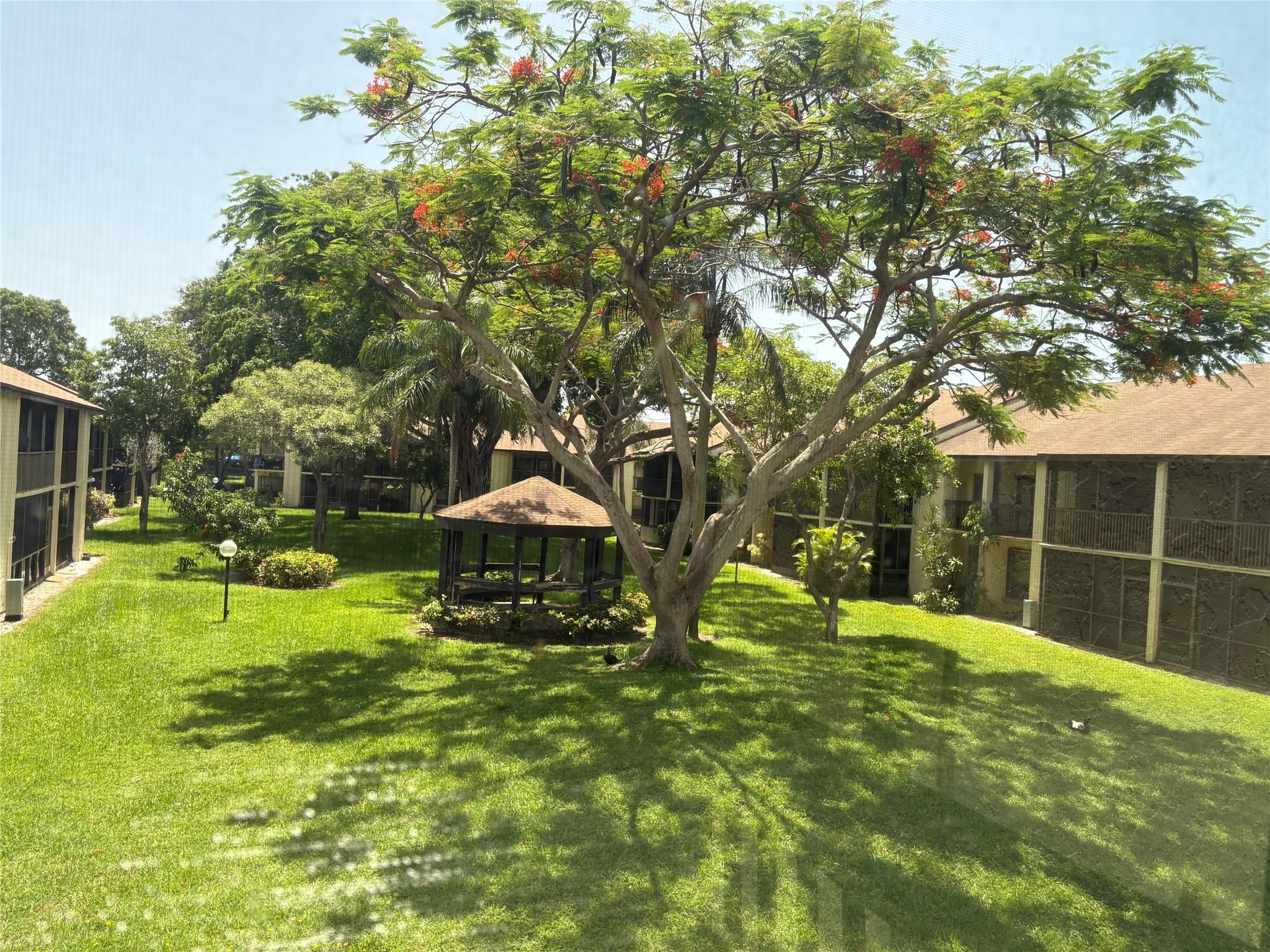 COME TO PARADISE! Unique and spacious 2 bedrooms 2 bathrooms on the second-floor condo with a peaceful garden view. This beautifully maintained unit features high ceilings, large walk-in closets, and new laminate flooring throughout, and washer and dryer. The kitchen boasts newer Frigidaire stainless steel appliances. Enjoy the enclosed patio with acrylic windows—perfect for relaxing year-round. The master bathroom has been tastefully remodeled. Located in a well-kept community with great amenities. Move-in ready and price to sell!