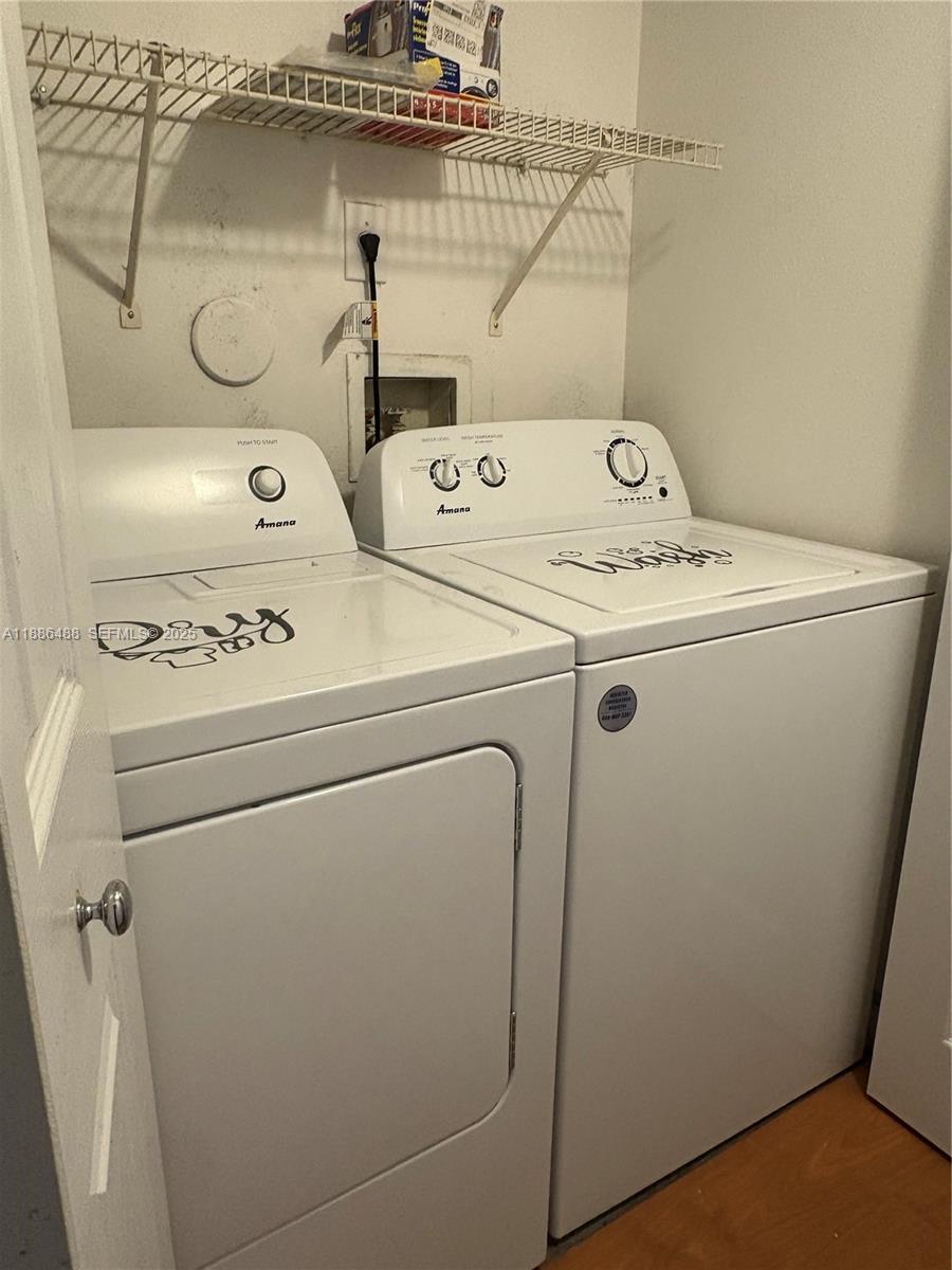 Available! Safe neighborhood. All ages are welcome. Open and spacious. Well maintained first-floor condo. Tile and wood floors throughout. Washer and dryer inside the unit. New refrigerator. Water service is included with the rent payments. Two covered porches. Extra storage private room. Community pool. Association approval is required. It may take 30 days. Move in with first month's rent and one month's security deposit (total 2 months).