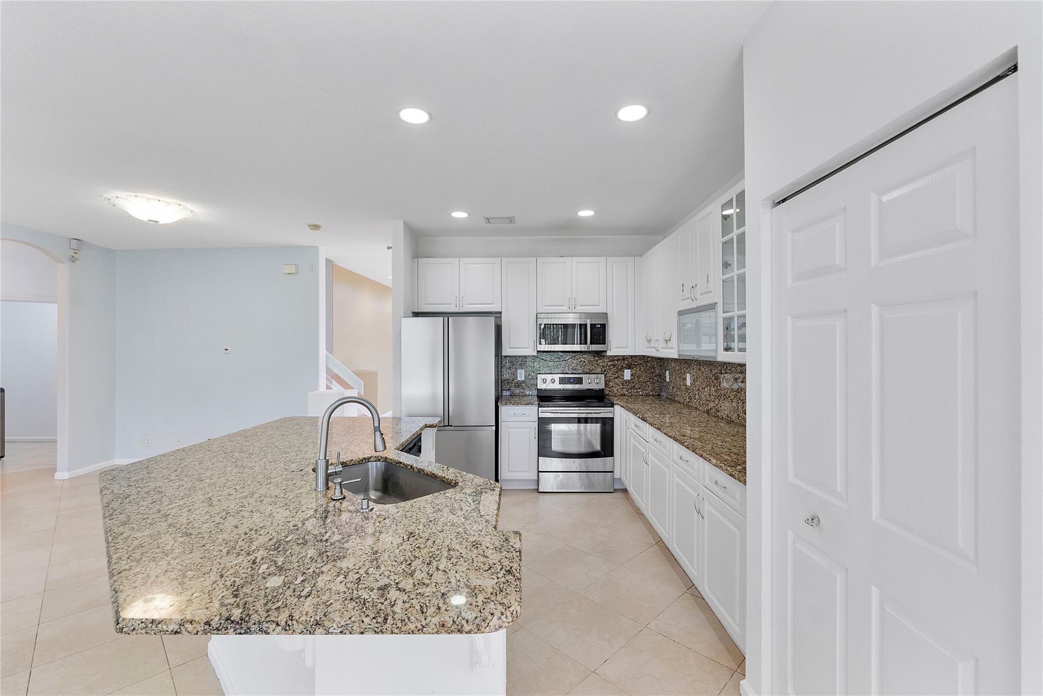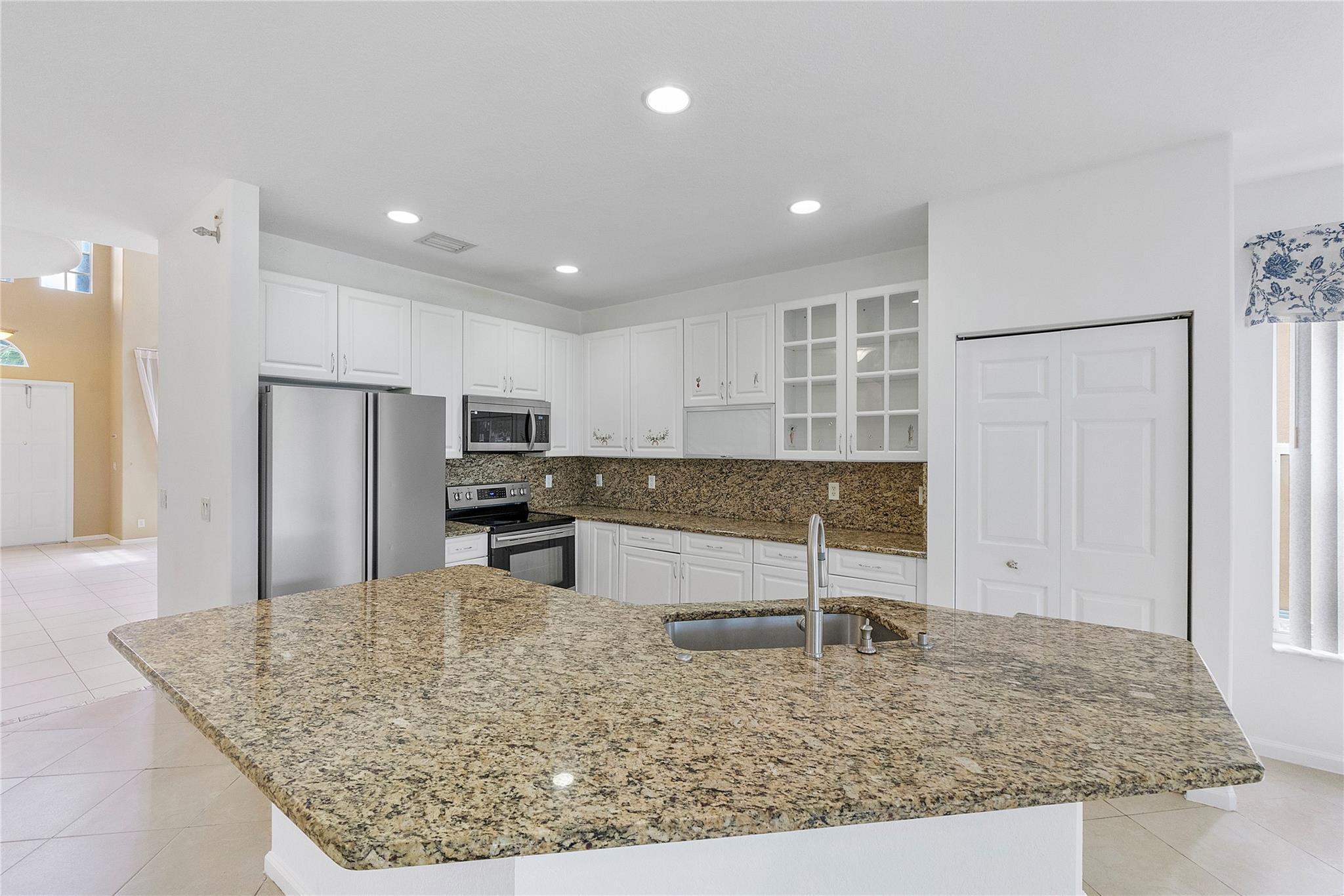 A rare find, a beautiful home in a sought-after area and move-in ready. A beautiful lake view home in the Vineyards Community. Massive insulated, weatherproof screened-in lanai to watch the magnificent Florida sunsets over the lake. The interior has been updated with stainless steel appliances, a Samsung extra-large washer, and a dryer. Extremely well-kept four bedrooms, with the option to turn the loft into a 5th bedroom and three full bathrooms. One bedroom is on the first floor with its own bath. Upgraded Kitchen with granite countertops and stainless steel appliances. The downstairs features a large bedroom and a full bathroom. All other bedrooms upstairs have walk-in closets. The master bathroom has a jacuzzi tub and also a shower with jets. A perfect Family home.