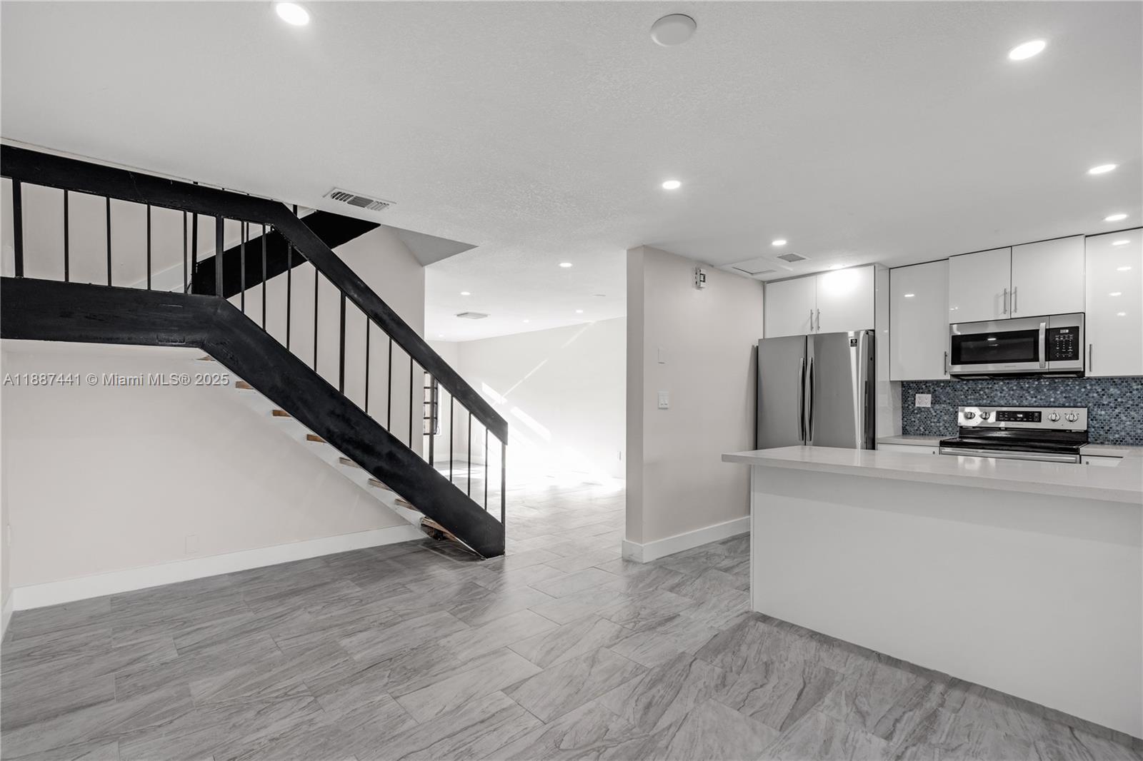 Stunning remodeled 3 bedroom 2.5 bathroom townhouse. This beautiful townhome features porcelain tiles downstairs and gorgeous laminate flooring upstairs. Modern kitchen with quartz countertops and stainless steel appliances. Washer and dryer inside unit.