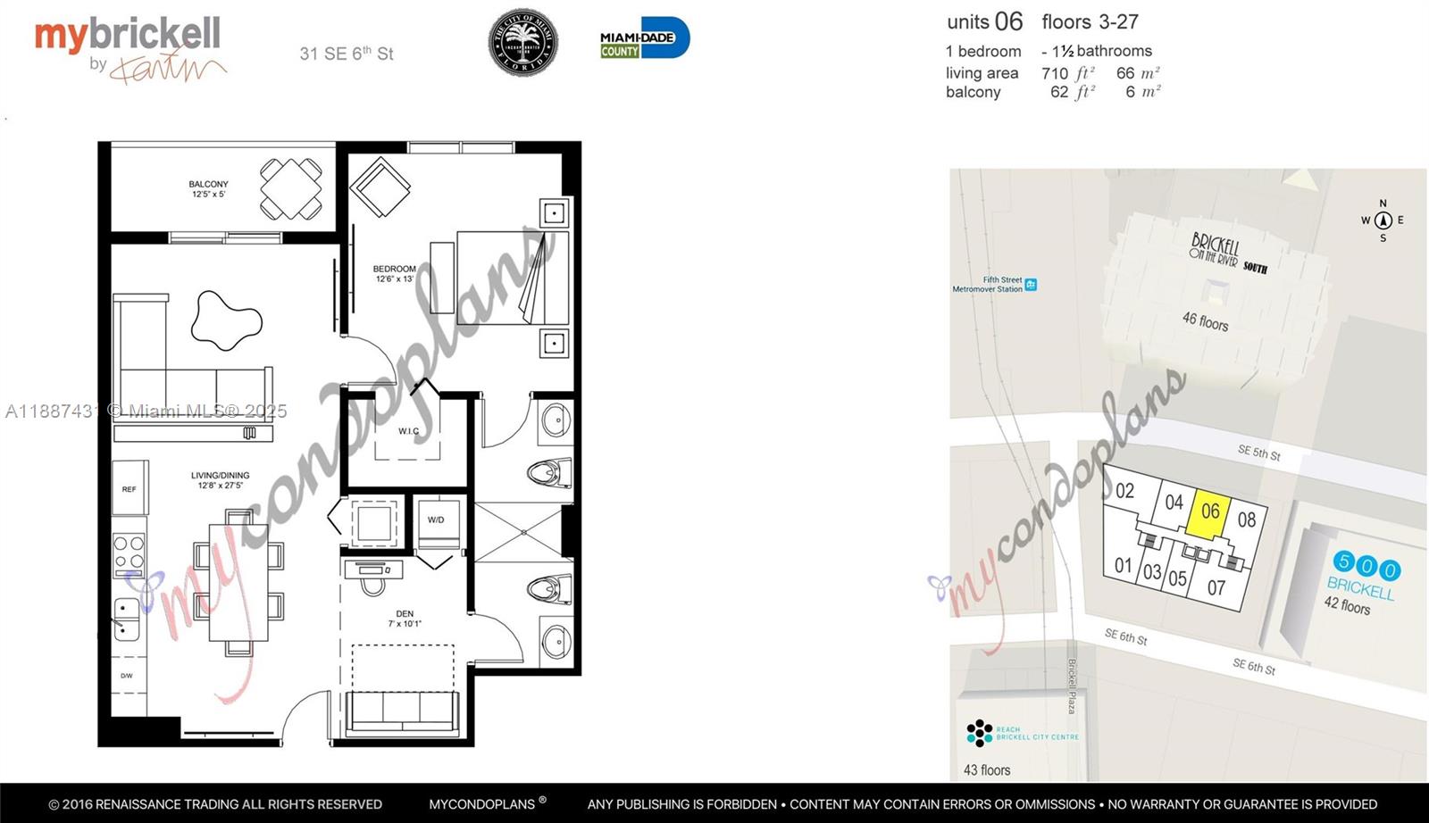 Beautiful 1 bedroom / 1.5 bathroom plus DEN area in the centrally located My Brickell building. Spacious unit with modern bathrooms and kitchen, stainless steel appliances, spacious closet, and beautiful floors. Unit comes with one valet parking spot at no extra cost. This boutique building located in the heart of Brickell, is just steps away from Miami Metro Mover, Brickell City Center, and Downtown Miami. My Brickell offers rooftop amenities: pool, fitness center, game room, as well as onsite management, and receptionist.