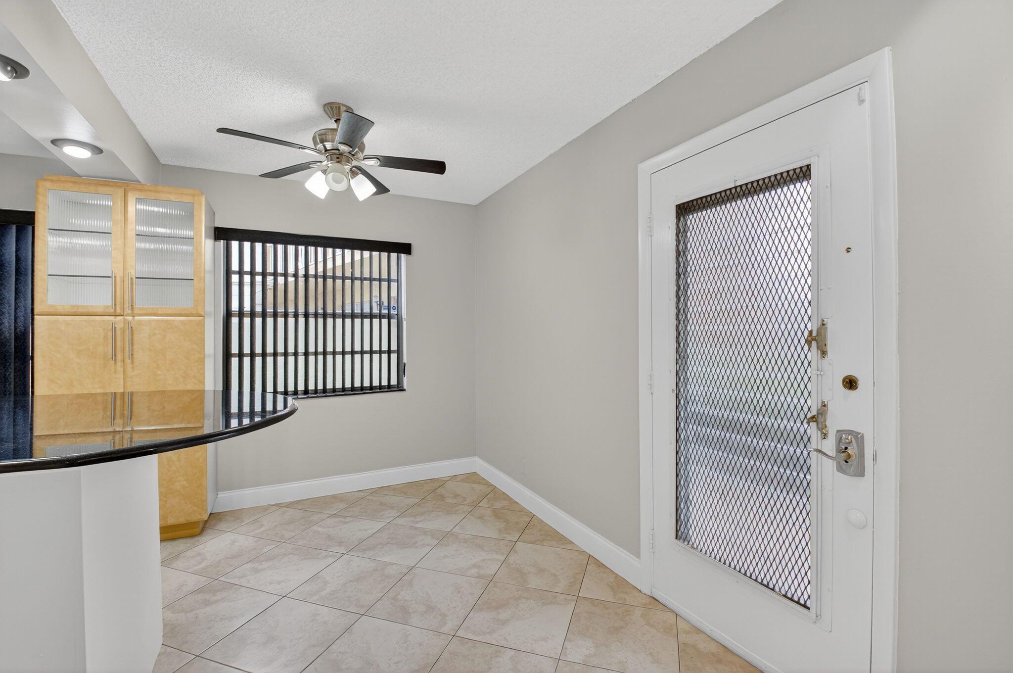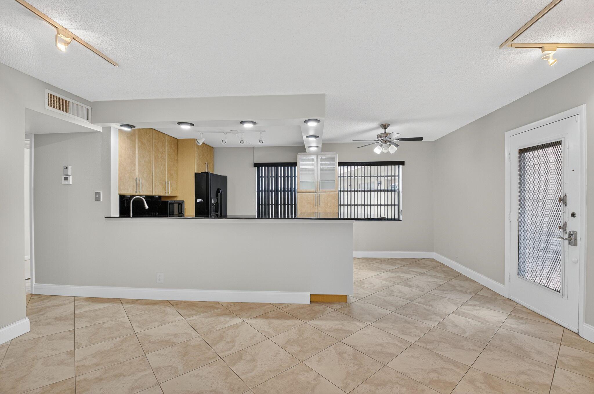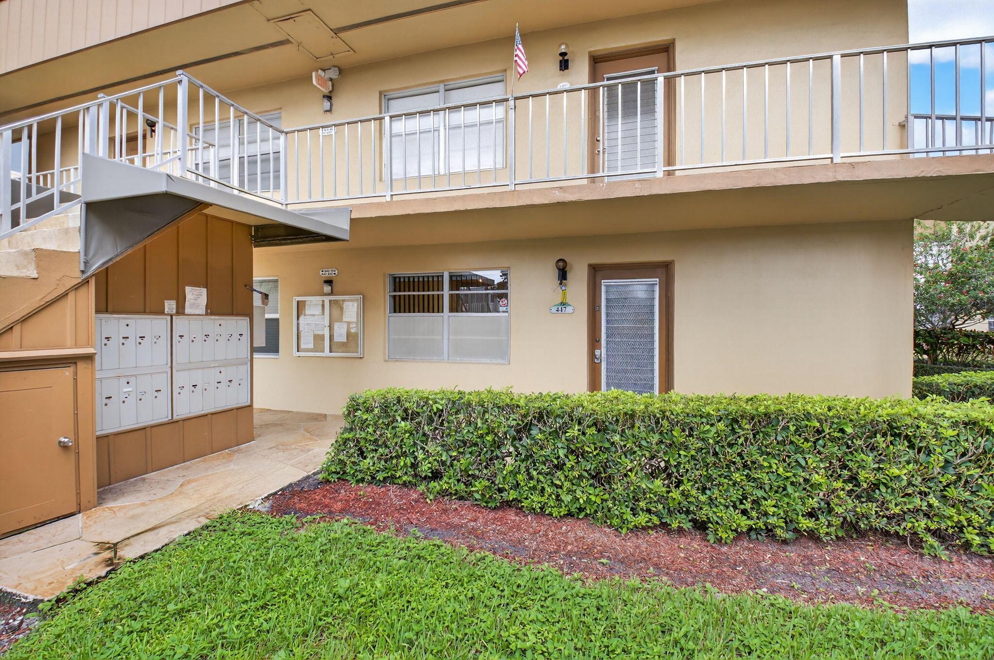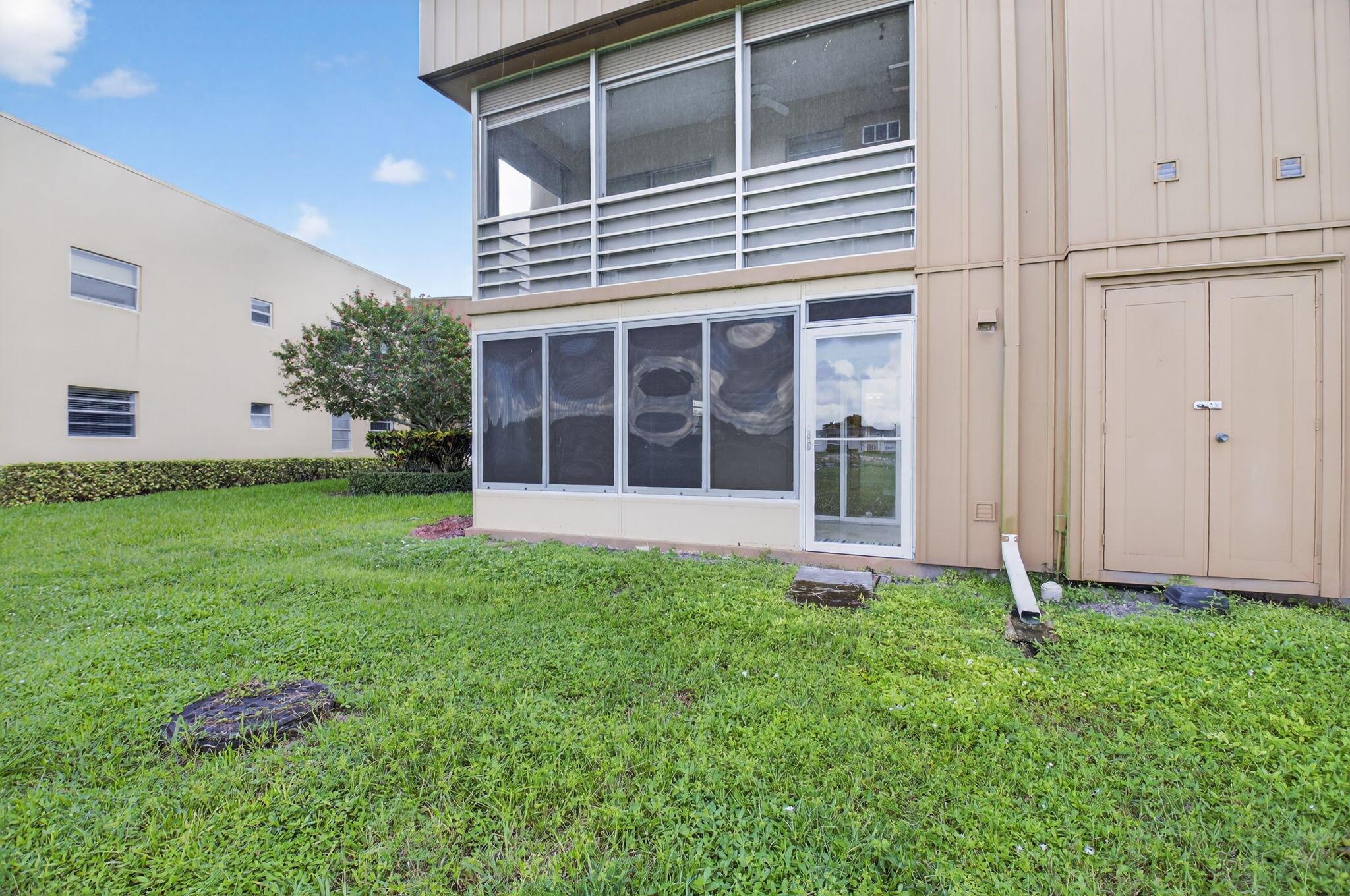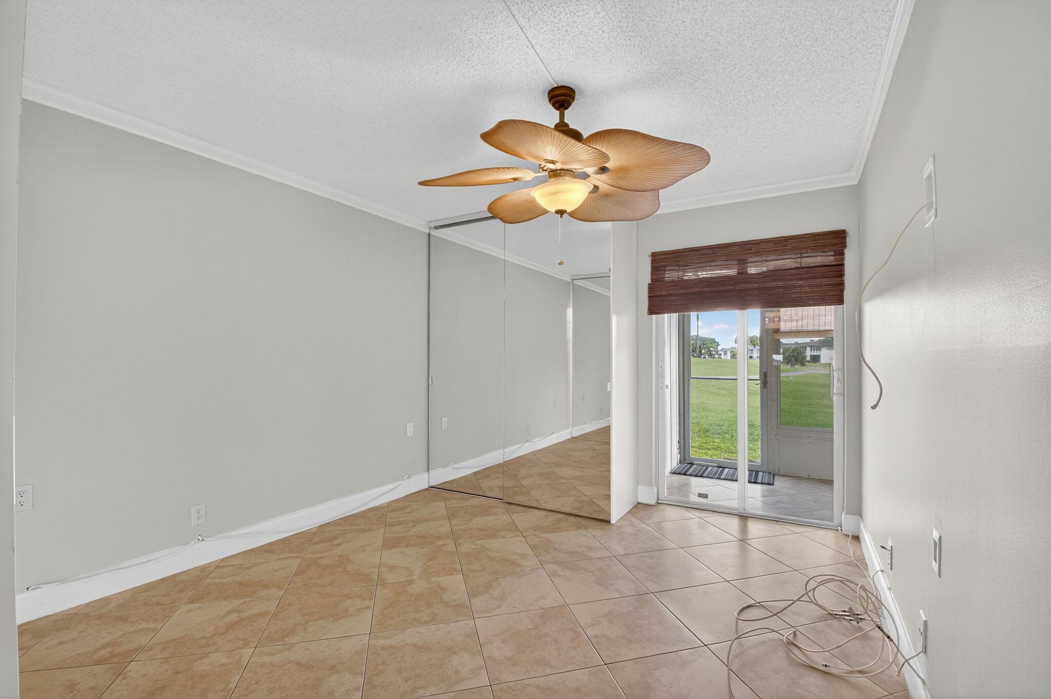 FABULOUS GOLF AND WATER VIEW FROM ENCLOSED, AIR CONDITIONED PATIO! First floor lovely condo with upgrades throughout including beautiful open concept kitchen. Extra closet storage with custom shelving in all closets. Full size washer and dryer. Parking space #19 - right by the walkway! Walking distance to the Flanders clubhouse and pool! Close to Linton Avenue gate providing easy driving access. Come enjoy clubs, activities, live shows, movies 2 restaurants and more at very active Kings Point 55+ community.