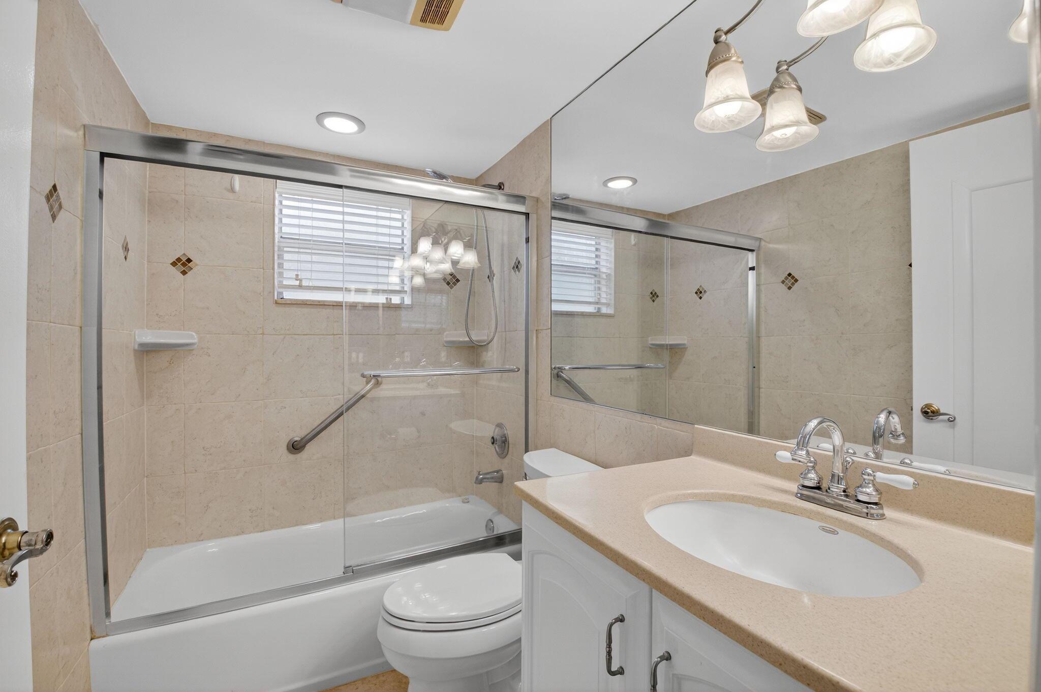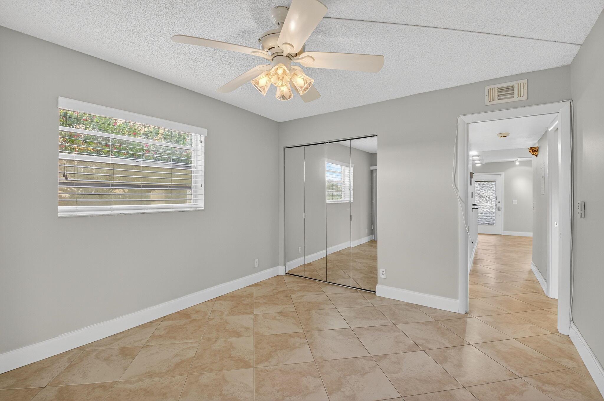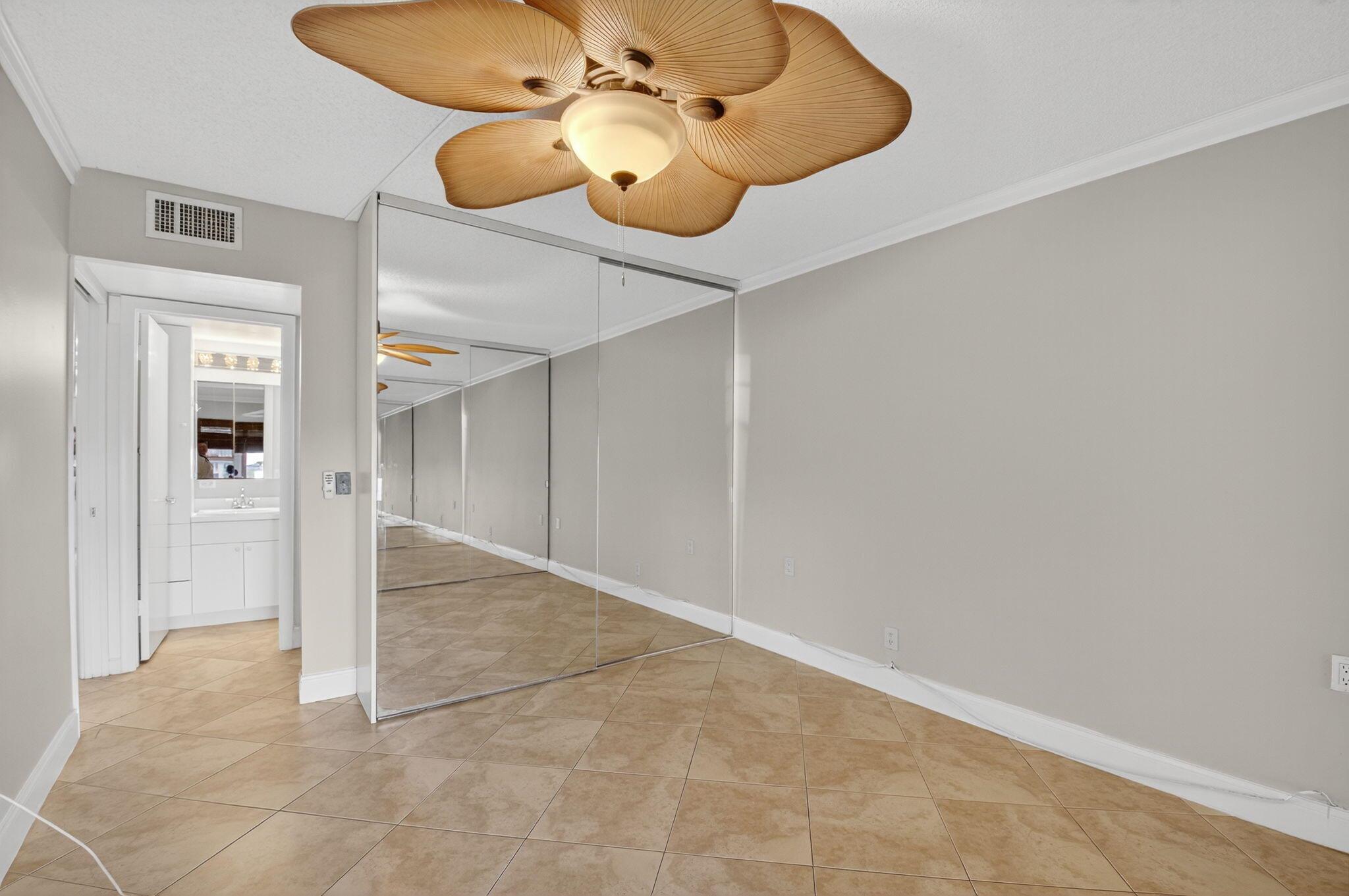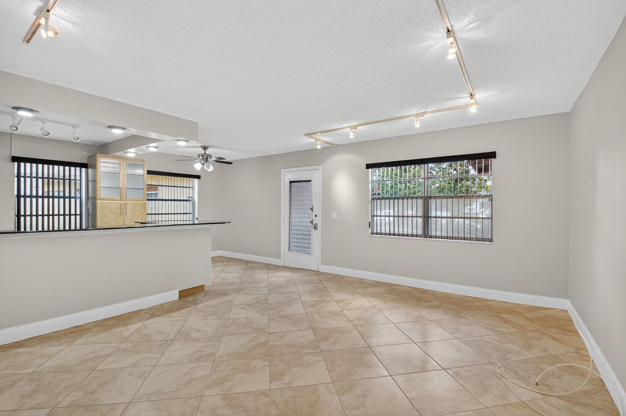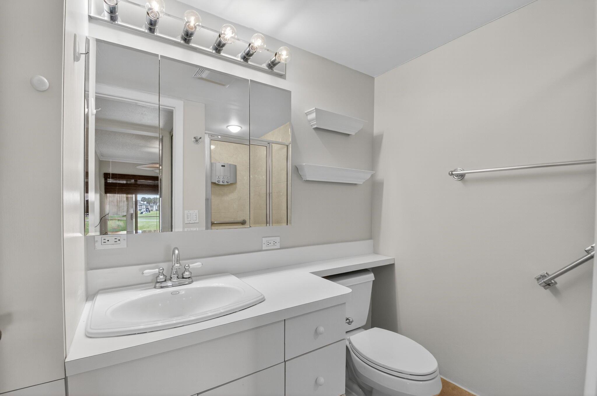 FABULOUS GOLF AND WATER VIEW FROM ENCLOSED, AIR CONDITIONED PATIO! First floor lovely condo with upgrades throughout including beautiful open concept kitchen. Extra closet storage with custom shelving in all closets. Full size washer and dryer. Parking space #19 - right by the walkway! Walking distance to the Flanders clubhouse and pool! Close to Linton Avenue gate providing easy driving access. Come enjoy clubs, activities, live shows, movies 2 restaurants and more at very active Kings Point 55+ community.